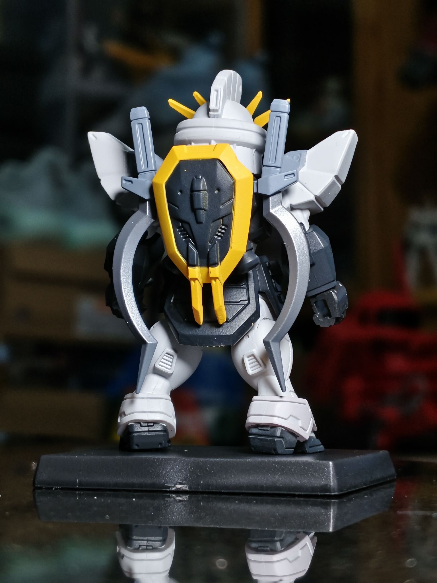 五小强之一沙漠高达,继上一次买fw五小强已经是n年前了,一套只有一盒的存在,也算是蛮受欢迎的人气机体了.武器配备双镰刀和盾牌,造型还不错