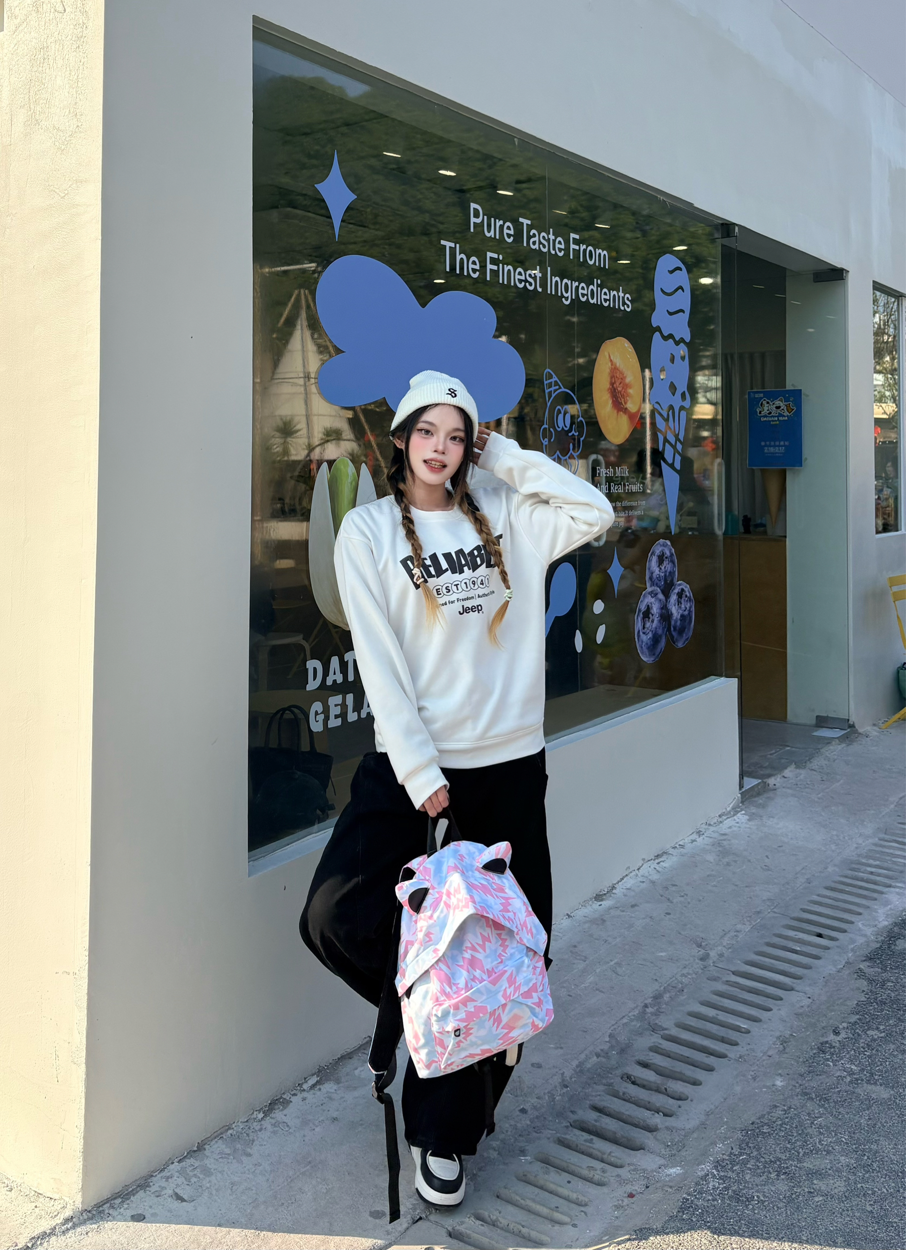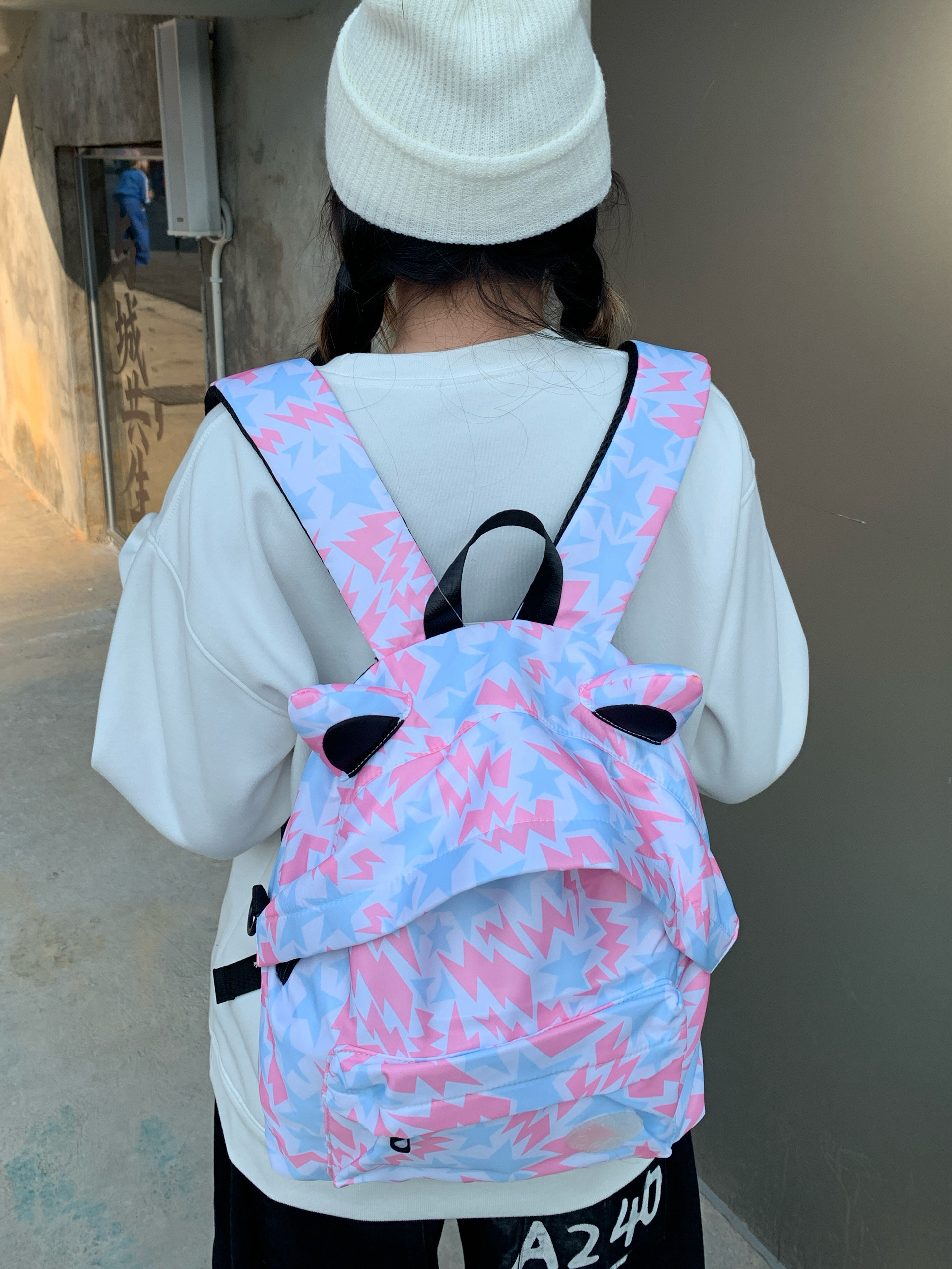 我今天的穿搭思路是用高饱和视觉单品打破沉闷感。💕 点睛之笔就是这个粉蓝闪电猫耳双肩包🐈 粉蓝撞色的闪电图案,像把马卡龙色的能量风暴背在身上,软乎乎的猫耳设计又中和了酷感,甜妹和酷姐的气质都拿捏了。🎀 平常出门上课装书也够用 🎒