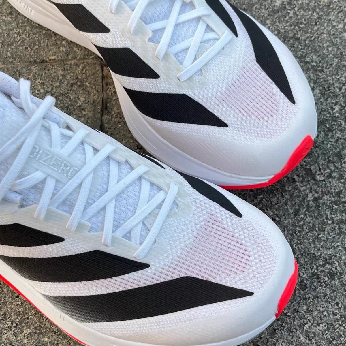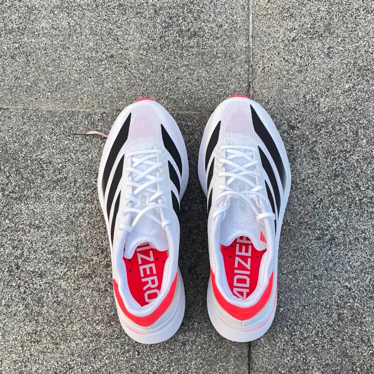 兄弟们,等了大半年的Adizero Boston 12终于到手了!作为阿迪的旗舰训练鞋,这次直接把全掌碳板下放到这个价位,必须给大家做个详细拆解。 📦 开箱第一眼 经典的白黑红配色,流线型鞋身比上一代更具攻击性。鞋面是工程网眼材质,肉眼可见的透气孔,夏天穿应该不会闷脚。鞋舌和鞋垫的“ADIZERO”红字点缀,质感拉满。 🏃♂️ 上脚核心体验 1. 中底配置:全掌Lightstrike...