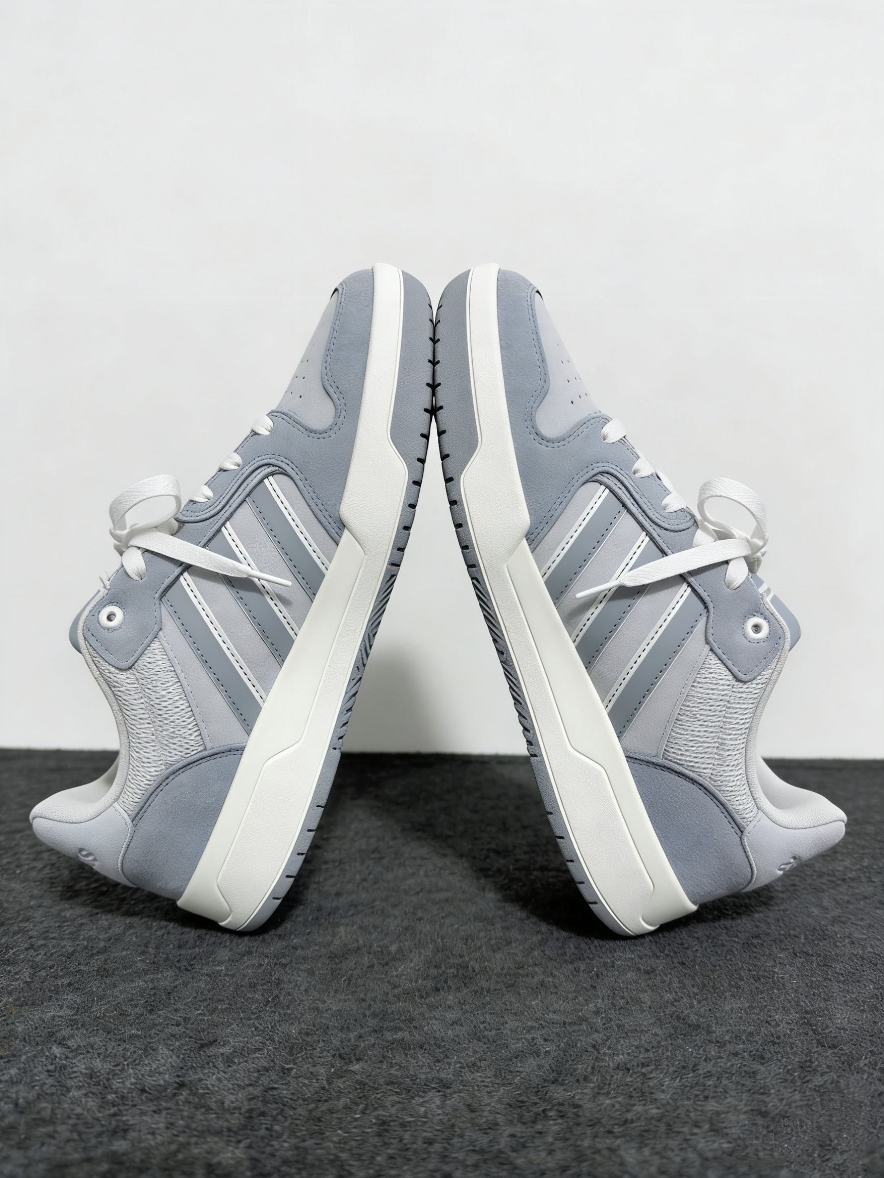 这双阿迪浅灰板鞋我最近穿得蛮多的~ 皮质和网面拼得整整齐齐,上脚软软的,走路也有缓冲,穿着还挺舒服。 整体是浅灰色搭配深灰蓝三条杠🩵,后跟还有浅灰麂皮,有点复古小气质。低帮版型配生胶底,我搭牛仔裤、休闲裤都很合适。 上脚包裹感还不错,鞋面软软的不会磨脚,就是我穿起来感觉码数有点偏大,想入手的话可以先去店里试试哦👟 鞋底回弹一般,日常走路没问题,站久了或者走多了,脚底会有点酸酸的😣。生胶...