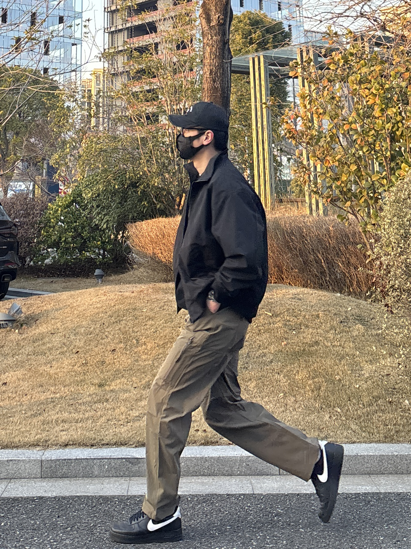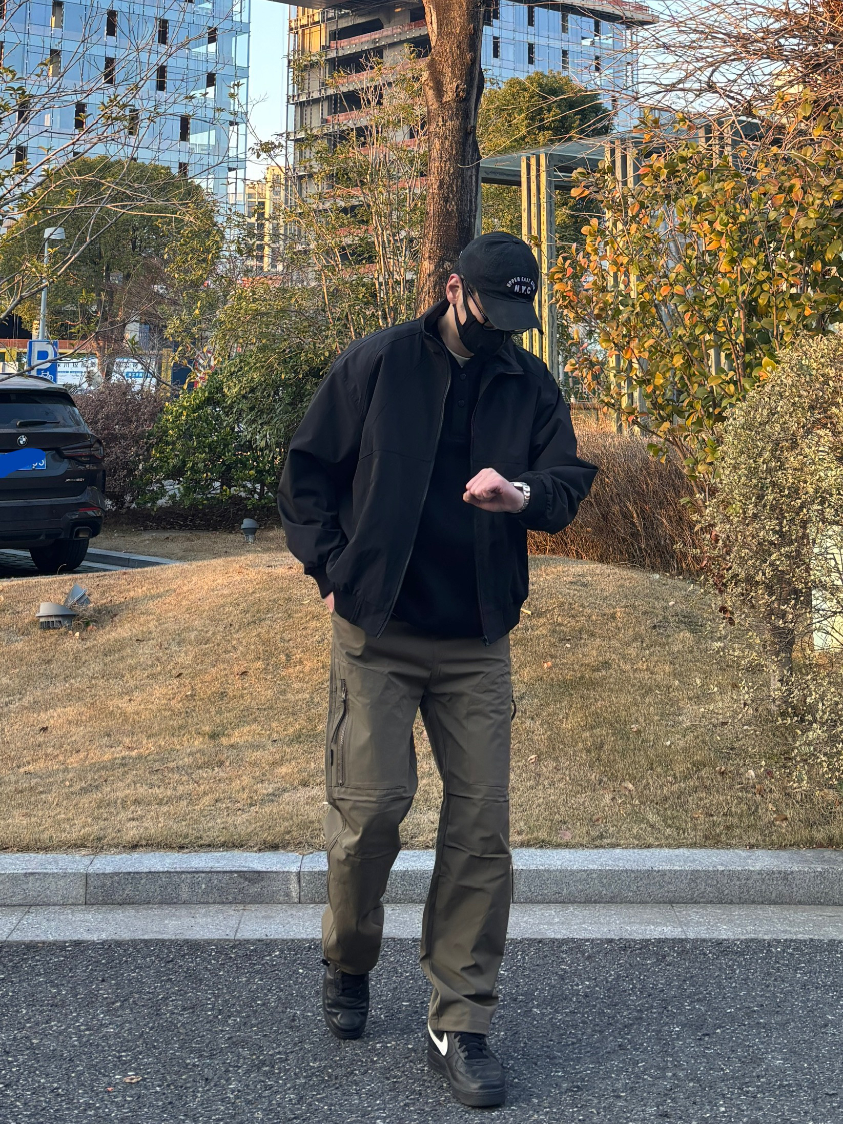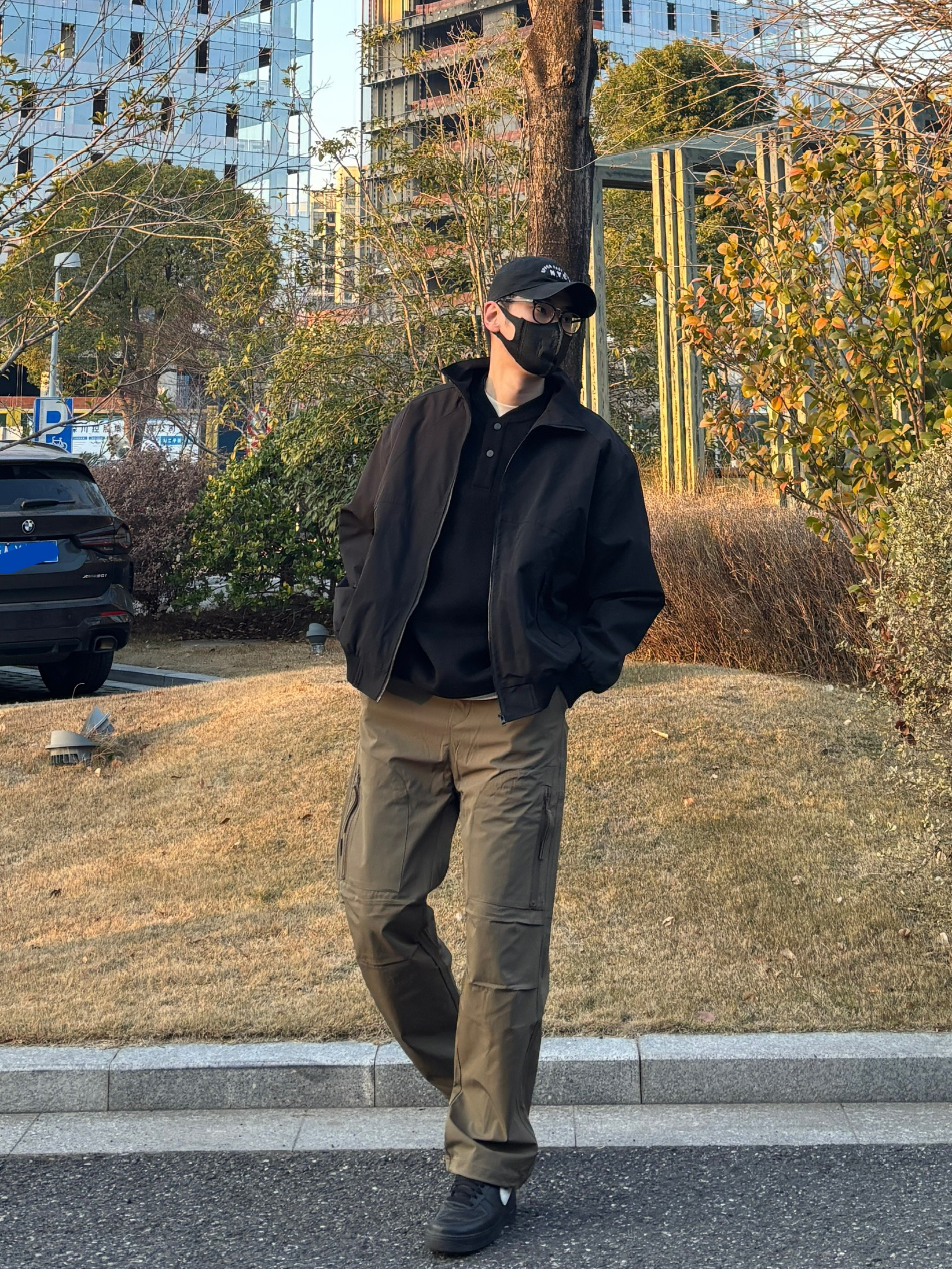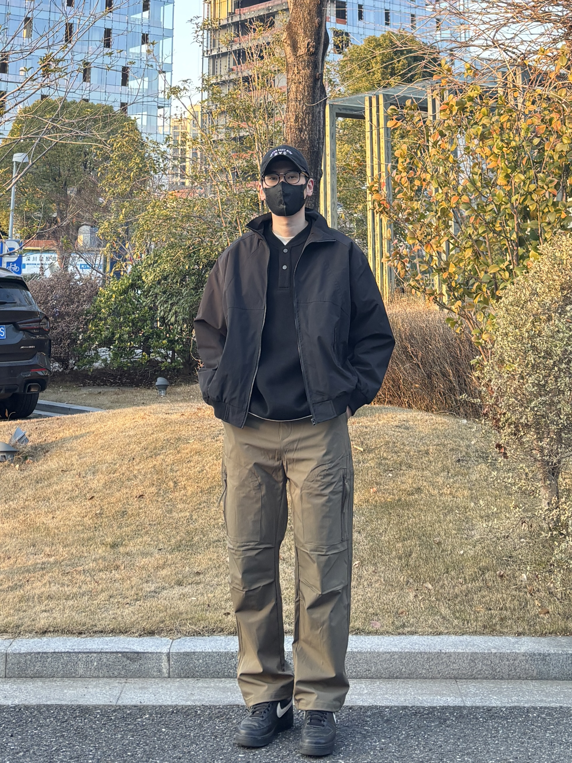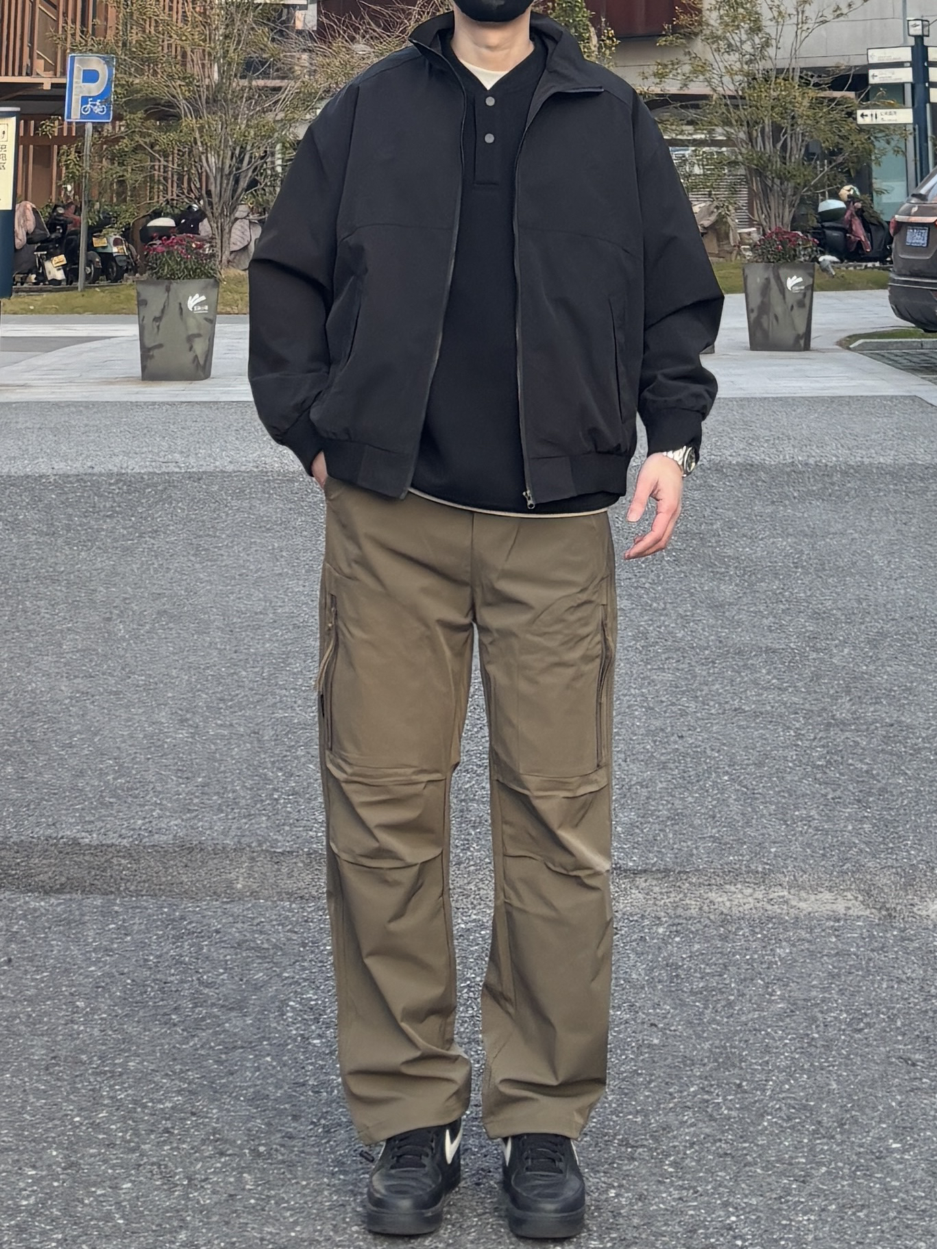 喜欢这种简约又带点机能感的搭配👍 外套选择黑色立领休闲夹克 百搭不出错,廓形对身材很包容🙋♂️ 内里叠穿黑色亨利领卫衣 柔软舒适,细节感十足 裤子穿一条卡其色直筒机能伞兵裤 宽松有型,口袋设计增加街头感😎 鞋子上脚简约低调的黑色低帮皮质板鞋 整套搭配简单易学,日常出门直接抄作业✌ - 今日搭配 衣服裤子:NICE LILI 鞋子:AF1