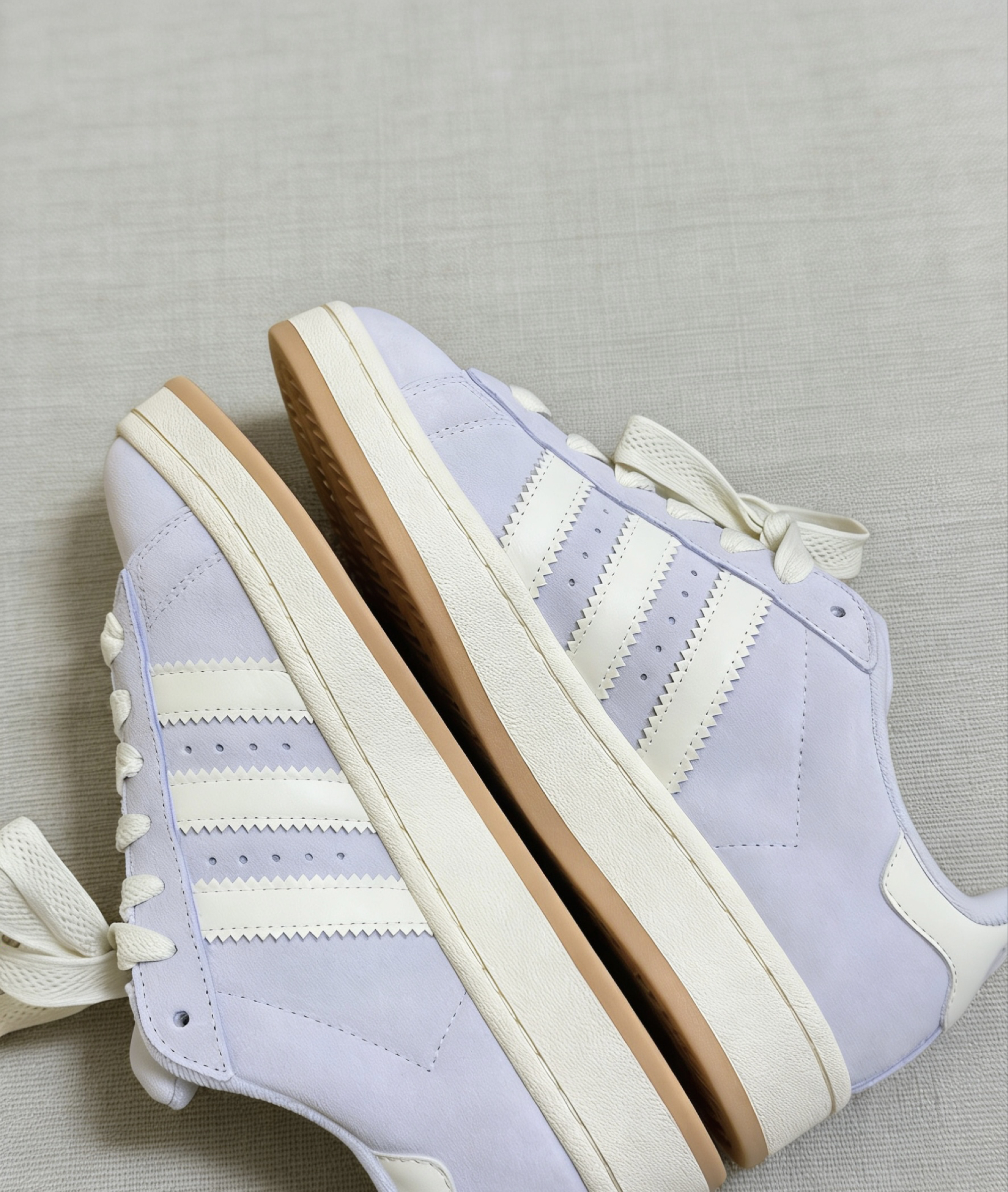 浅紫翻毛皮面软乎乎的,奶白三条杠和米白鞋带搭得很温柔,生胶底又添了点复古感。日常穿牛仔裤、百褶裙都适配,校园里、咖啡店、周末citywalk都能hold住,脚感软弹,走久也不累,是那种越看越耐看的百搭款~😌✨