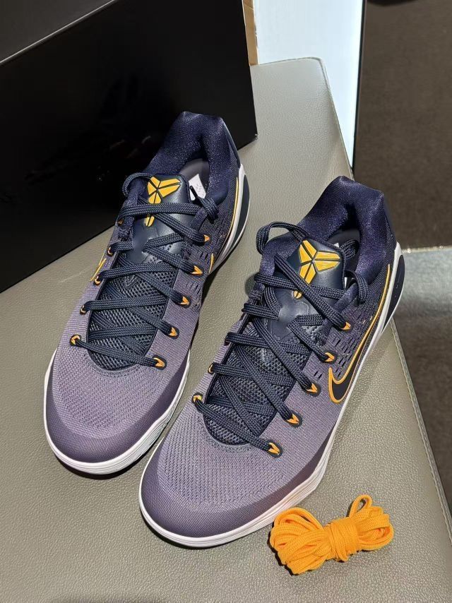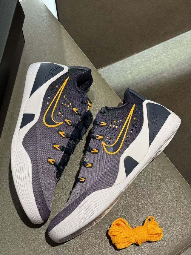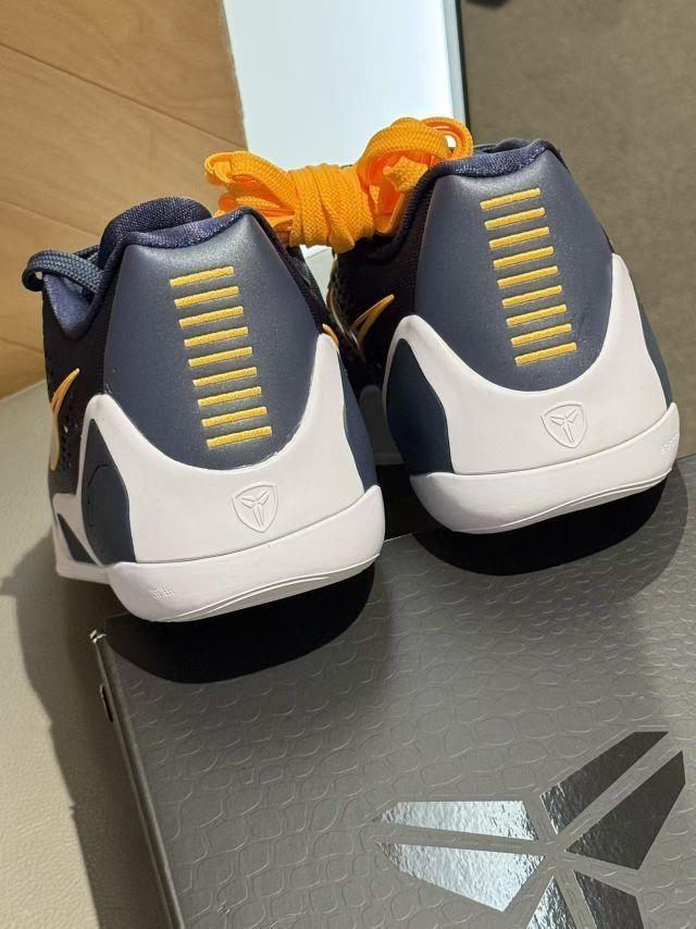 这双Kobe 9 EM湖人配色真的戳中了我的DNA!💜 拿到手的瞬间就被这抹紫金色狠狠拿捏,鞋面的渐变设计在光下质感拉满,鞋舌上的曼巴Logo和后跟的签名细节,每一处都在诉说着传奇。