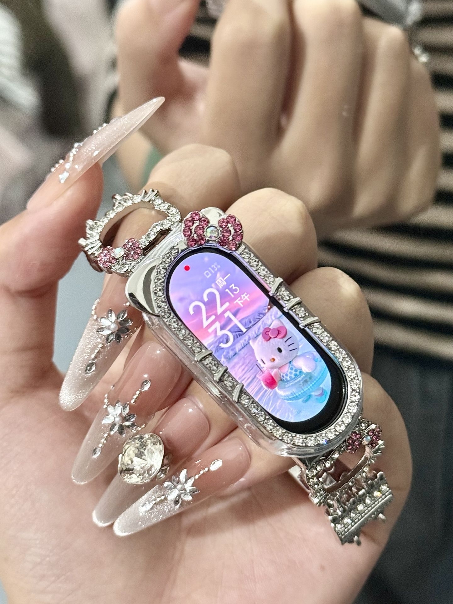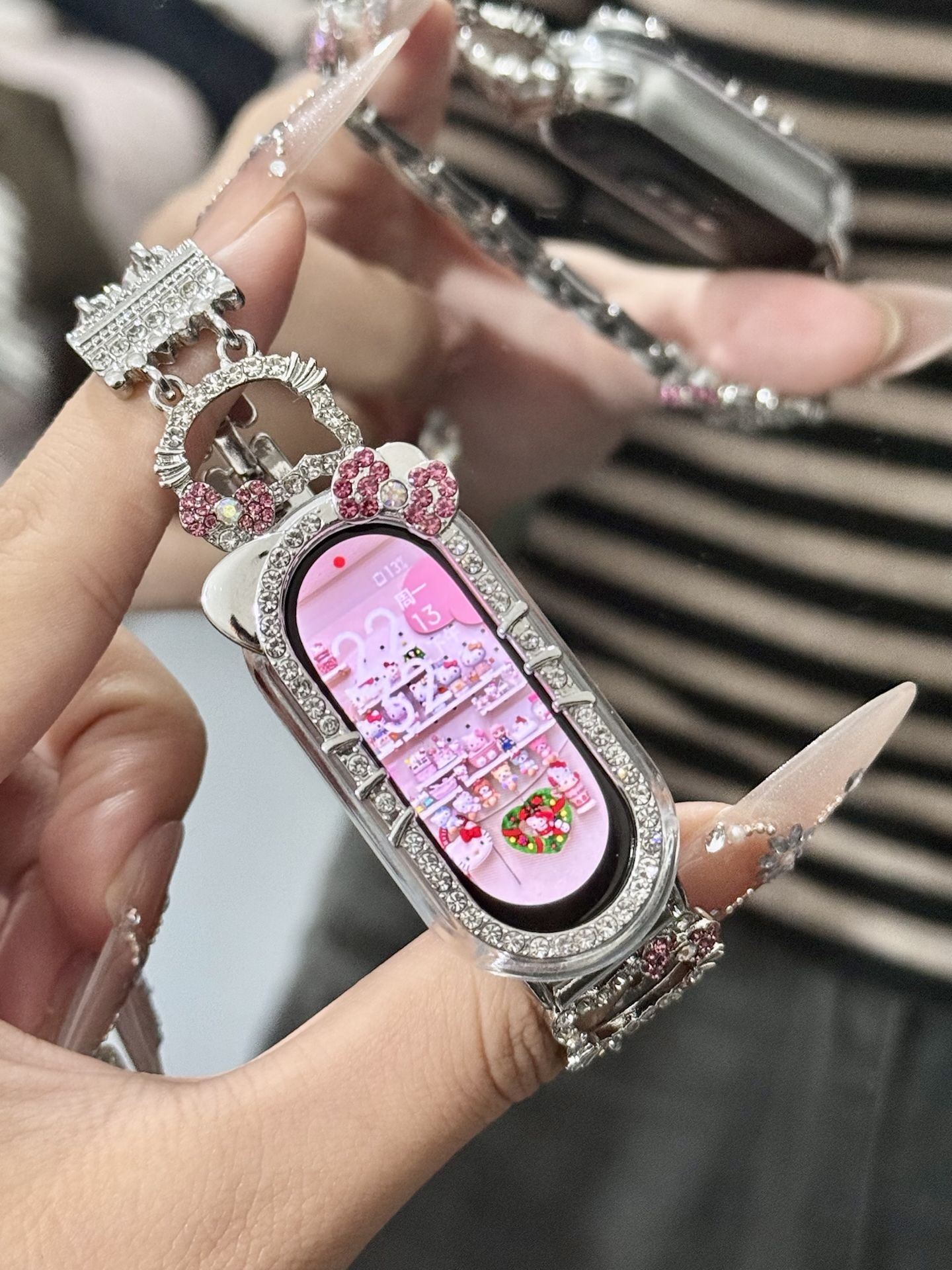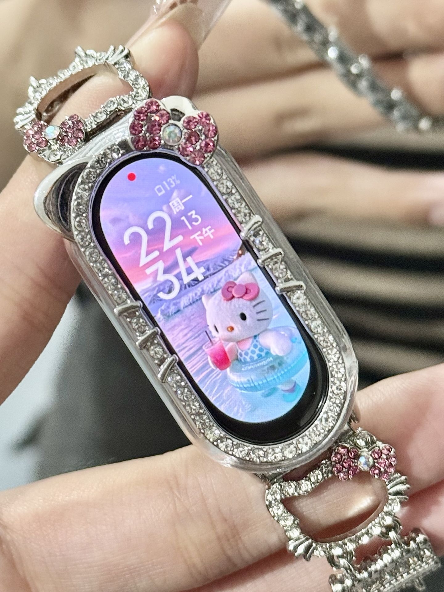 小米手环10到手 就给自己安排了Kitty表链 镂空的设计~四周都是小钻特别闪 上手一闪一闪的整个少女心满满 表带是卡扣式的轻松调节大小 真的是百搭又好看稳稳戳中心坎#疯狂心动的开学季 #我的小米手环10 #终于轮