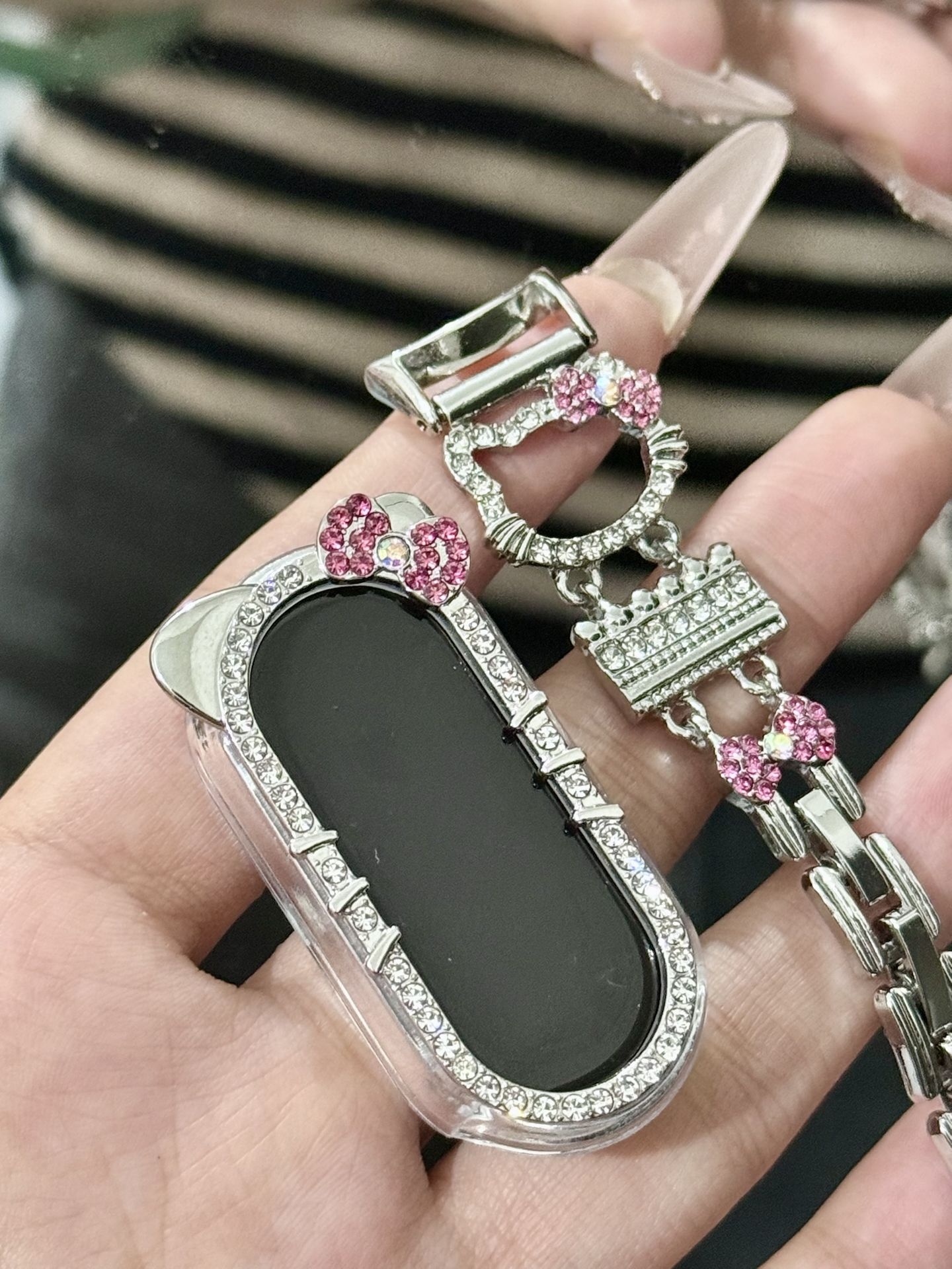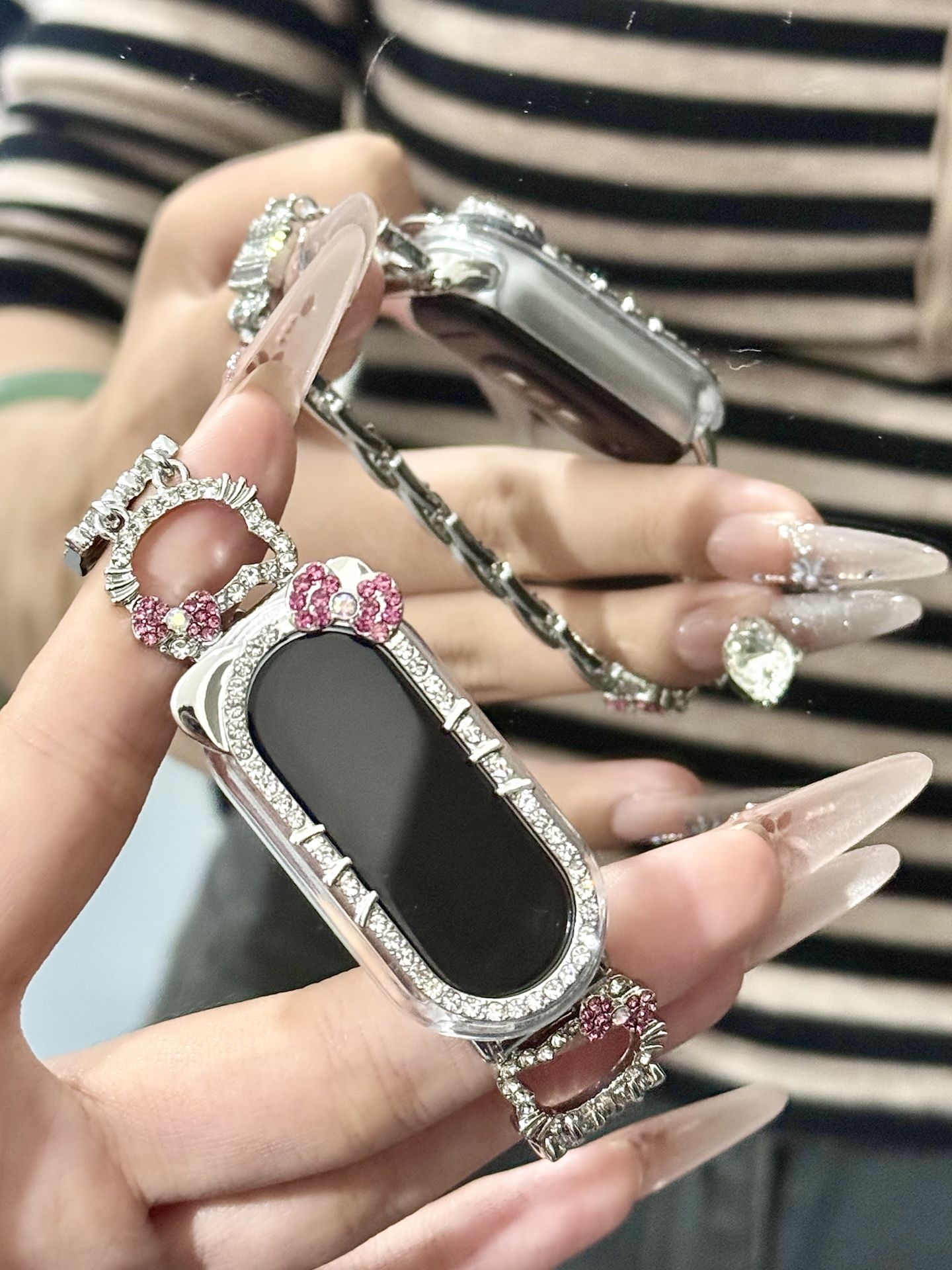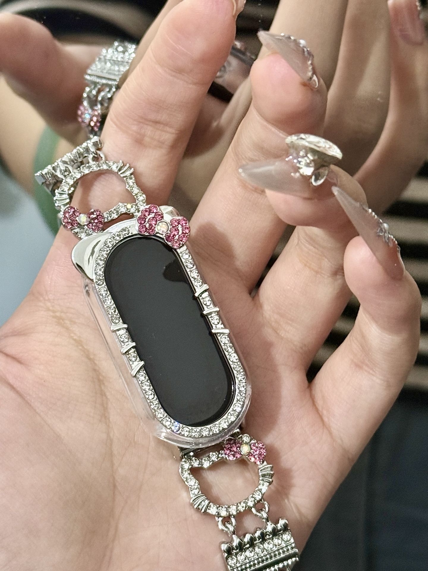 小米手环10到手 就给自己安排了Kitty表链 镂空的设计~四周都是小钻特别闪 上手一闪一闪的整个少女心满满 表带是卡扣式的轻松调节大小 真的是百搭又好看稳稳戳中心坎#疯狂心动的开学季 #我的小米手环10 #终于轮