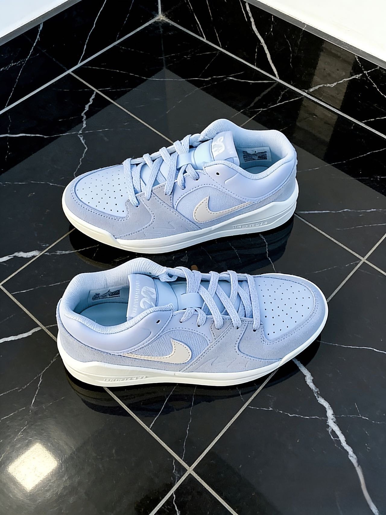 江楠的好鞋安利】天空浅蓝Jordan Stadium 90美到失语! 这双浅色系板鞋一上眼直接沦陷✨ 鞋头麂皮质感绝了!脚感软fufu踩屎感拉满 唯一小bug:麂皮确实不太好打理,但颜值党表示完全能接受! 日常搭休闲裤/牛仔裤都巨出片,尺码正不偏码,通勤出街闭眼冲~ 你们觉得这双浅蓝Jordan搭工装裤还是运动裤更出片?来评论区晒你的配色公式~