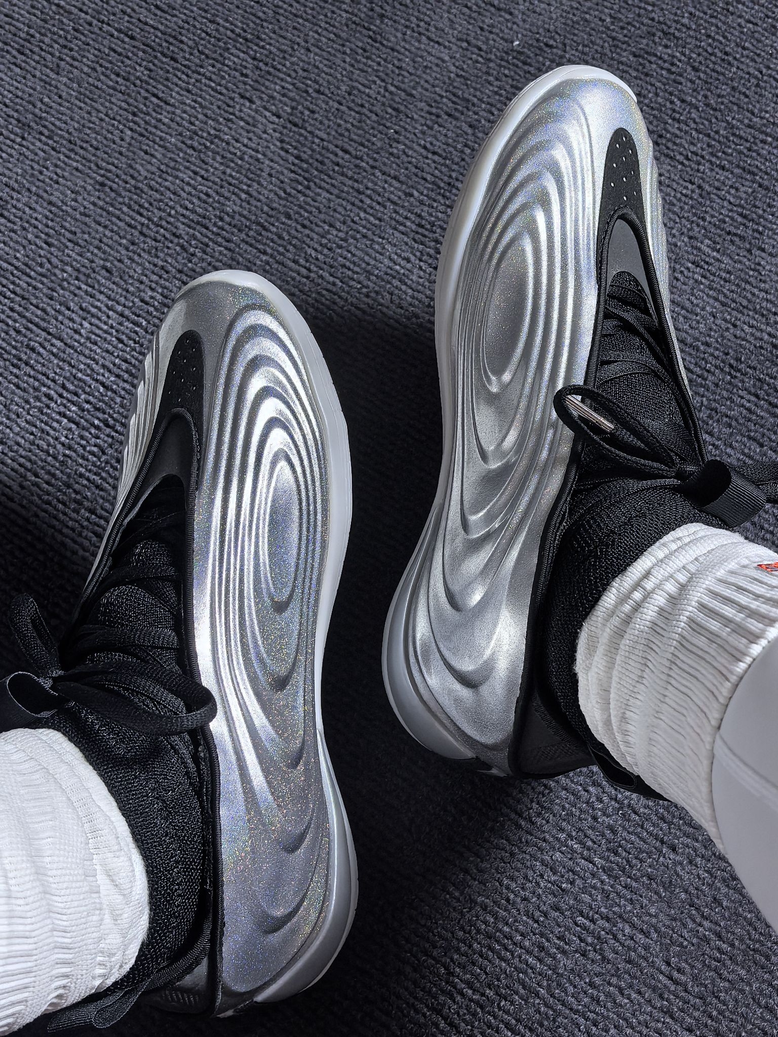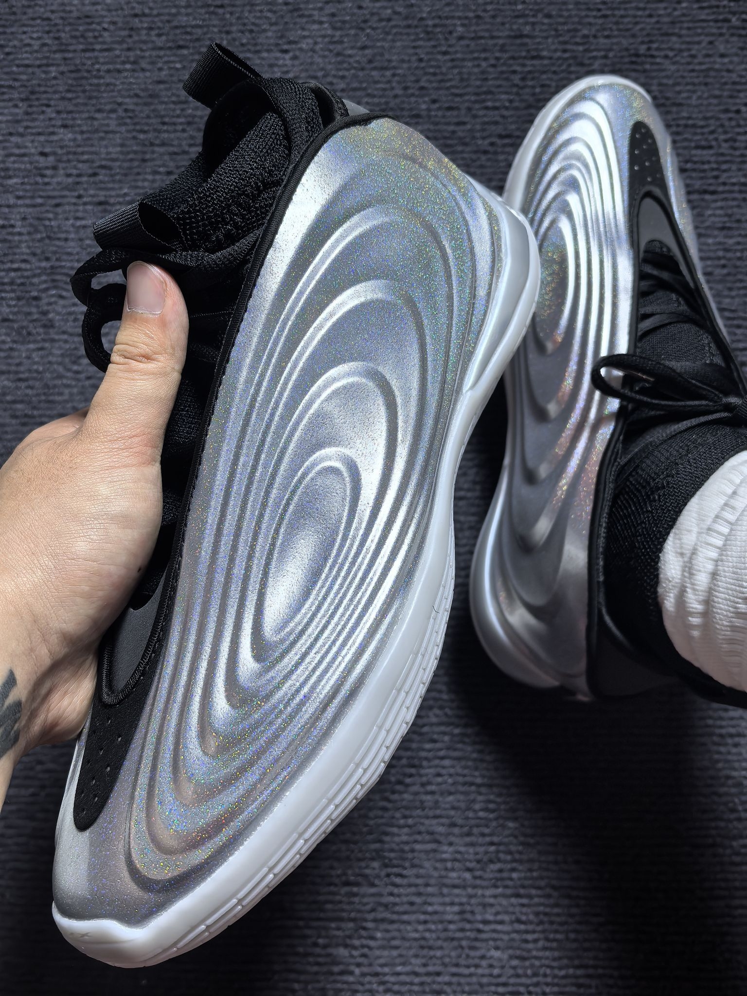 这双哈登10全明星配色的鞋面真的非常有创意,星河般璀璨。鞋子包裹感在线,缓震够用,鞋面相比9代也有一定的进步,帅就完了!