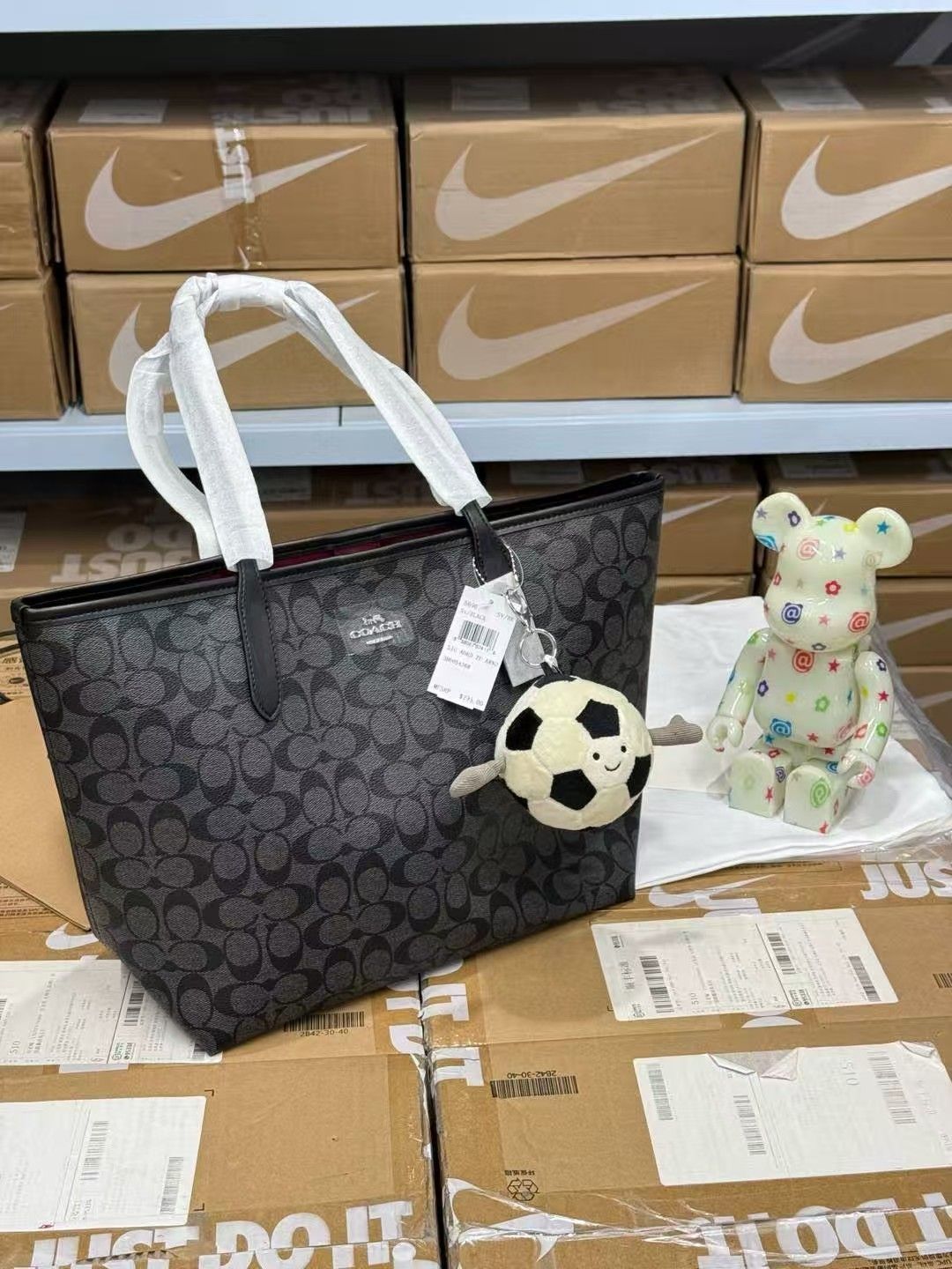 Coach蔻驰 City33 Tote托特包 客订到店 黑灰色/白色字母 尺寸很够用 装电脑文件很轻松