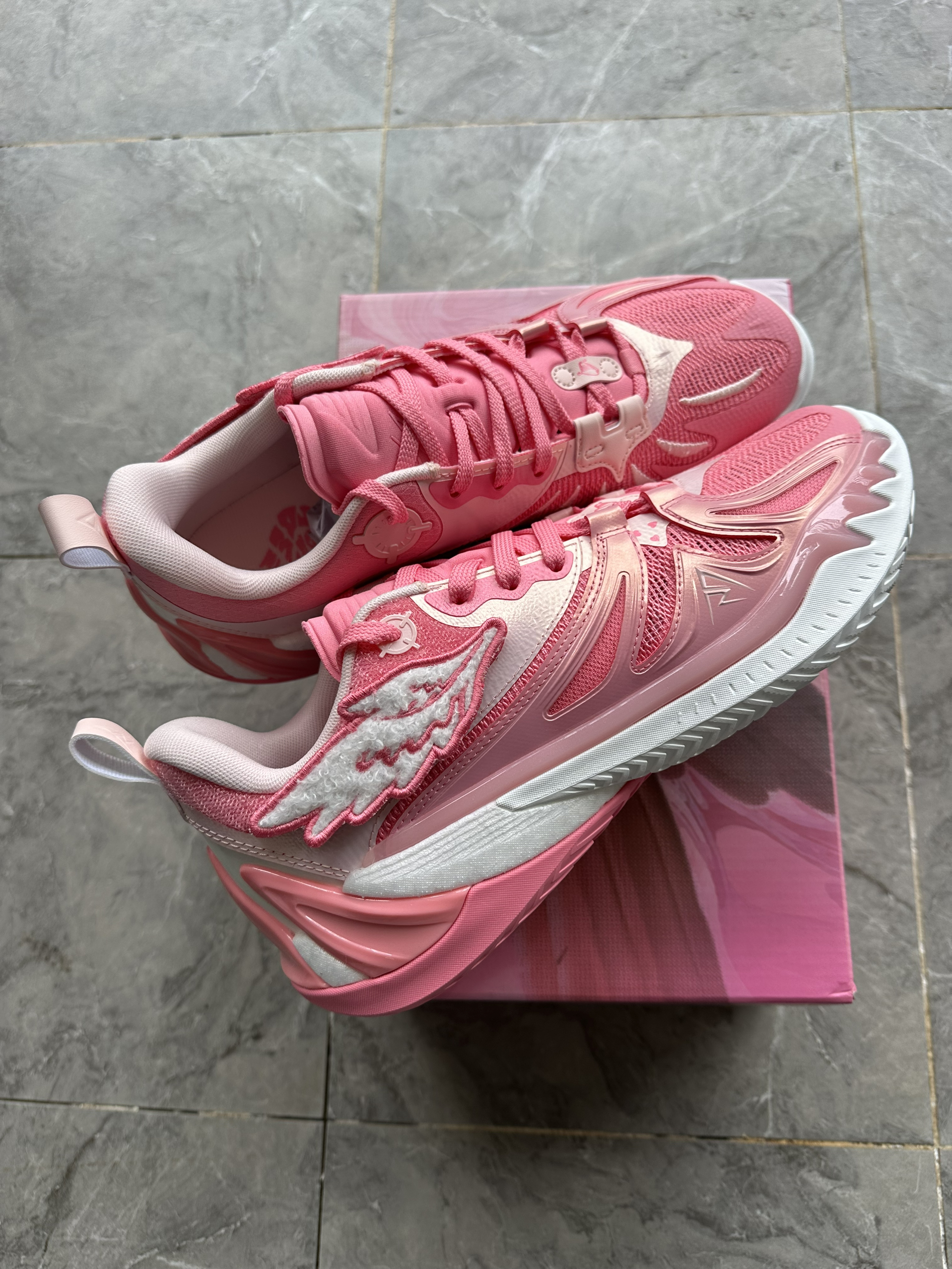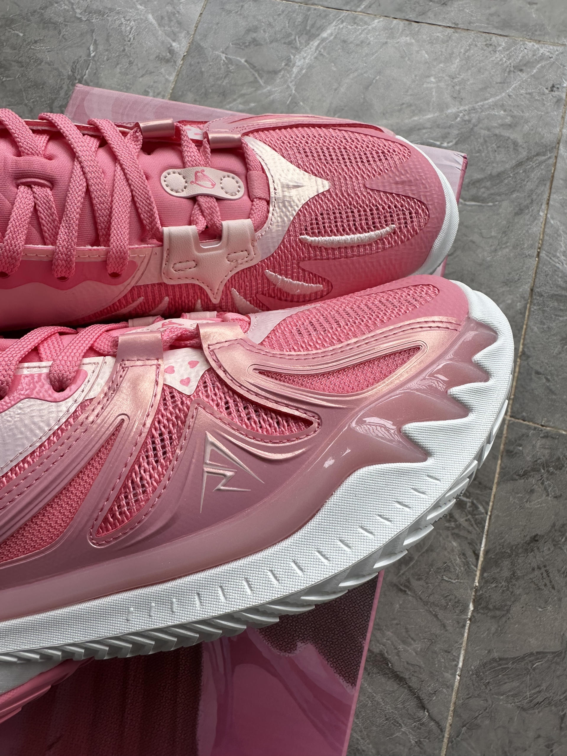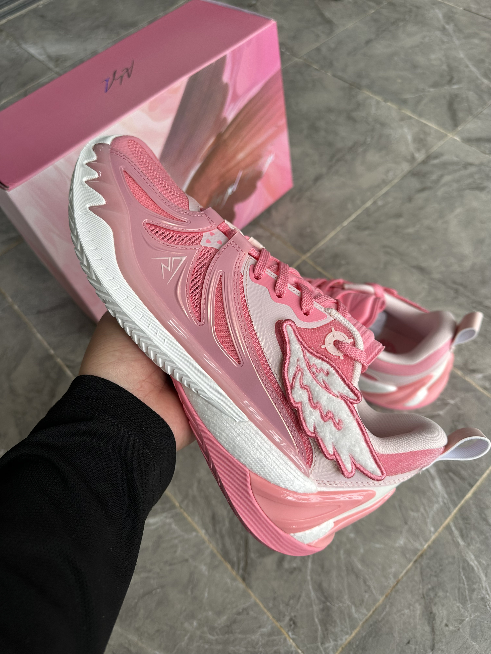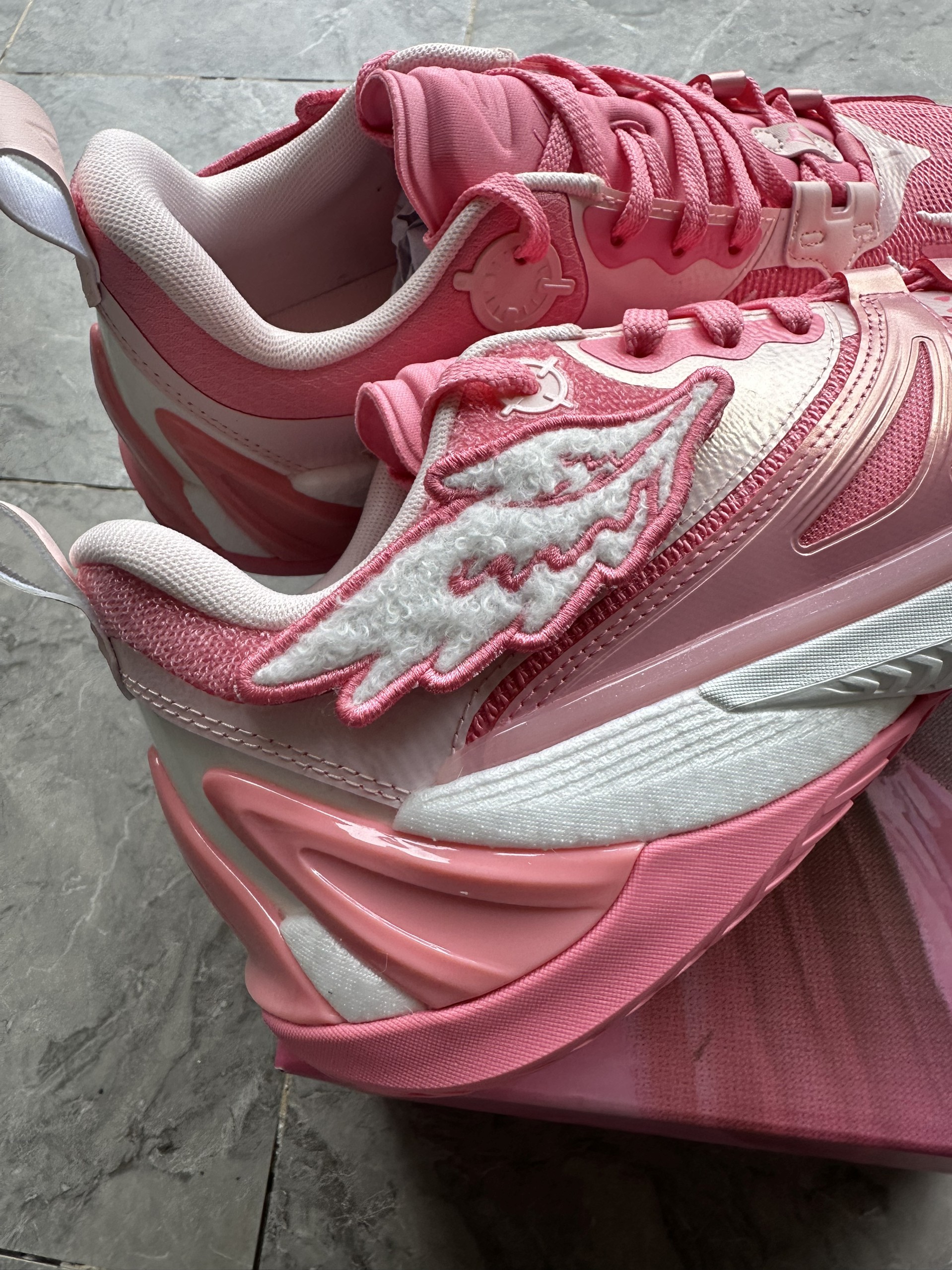 这双准者里弗斯3代粉色款,拿到手我是真的爱了💖 鞋身的飞刀TPU和渐变粉白配色太有特点,往校园里一穿,甜酷质感搭运动裤贼出挑 试了下脚感,中底咻弹超临界反馈挺利落,起跳不拖沓,而且后跟三段式TPU填充很扎实,包裹感直接拉满;大底人字纹也深,抓地力看着就稳,变向急停都不打滑。 尺码说下,正常脚直接选正码就行,脚宽的兄弟建议大半码,免得挤脚。 学生党想找双上课能耍帅、打球能实战的篮球鞋,这双粉到心巴的...