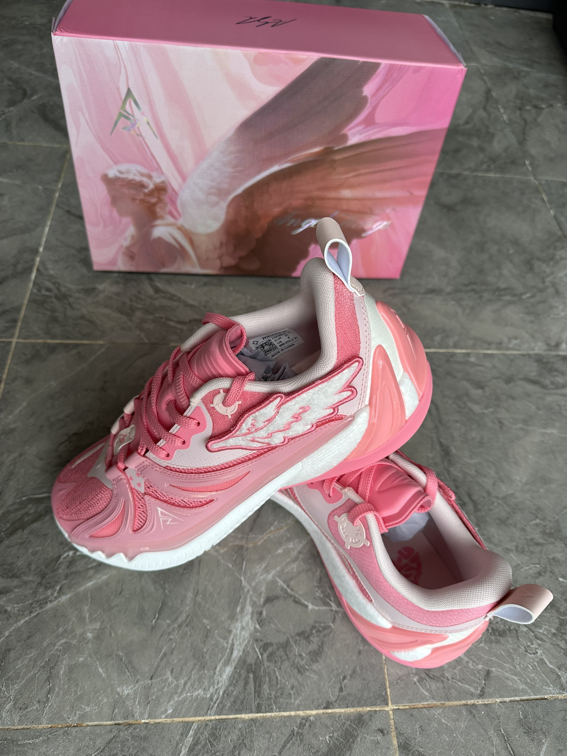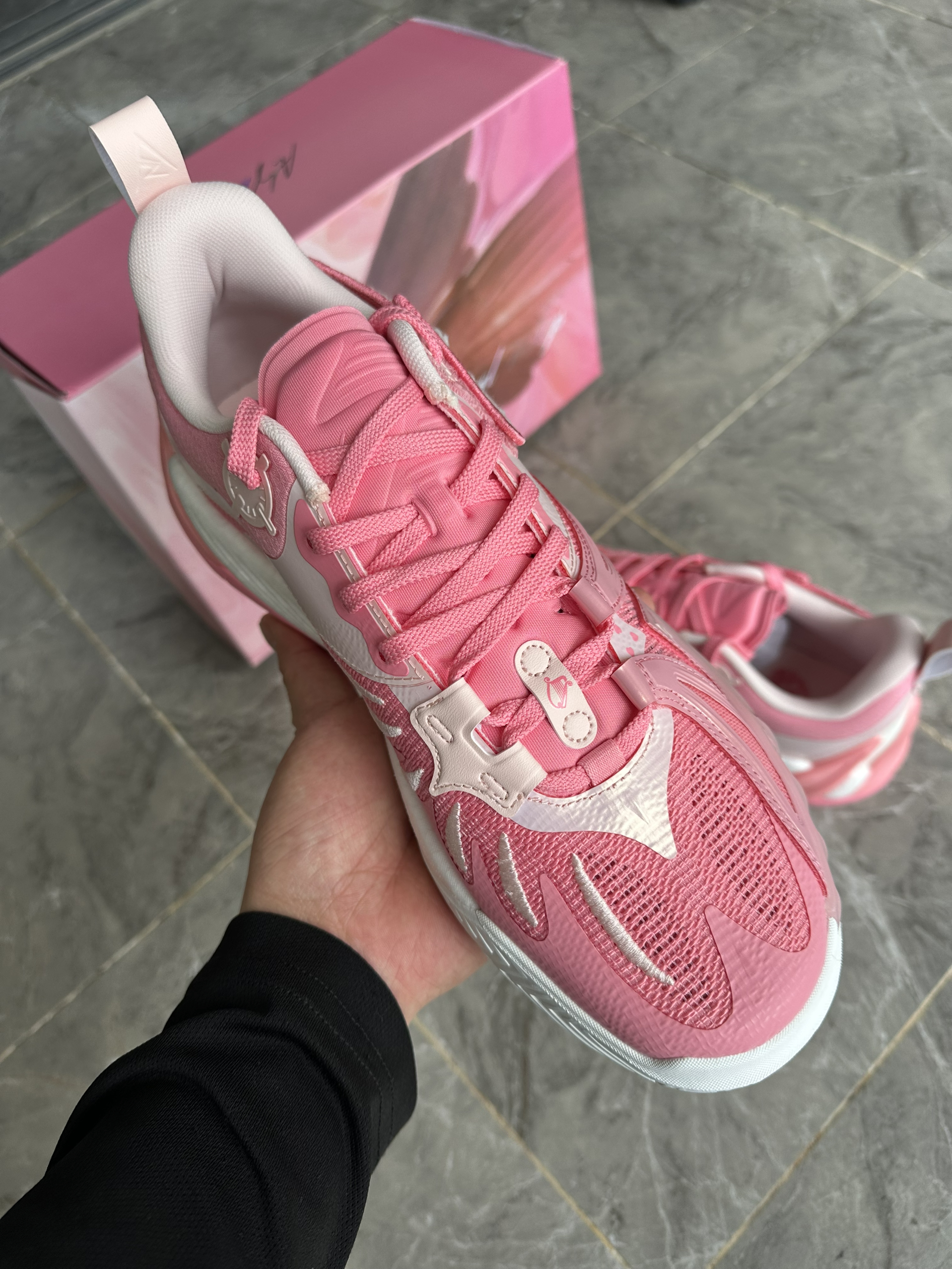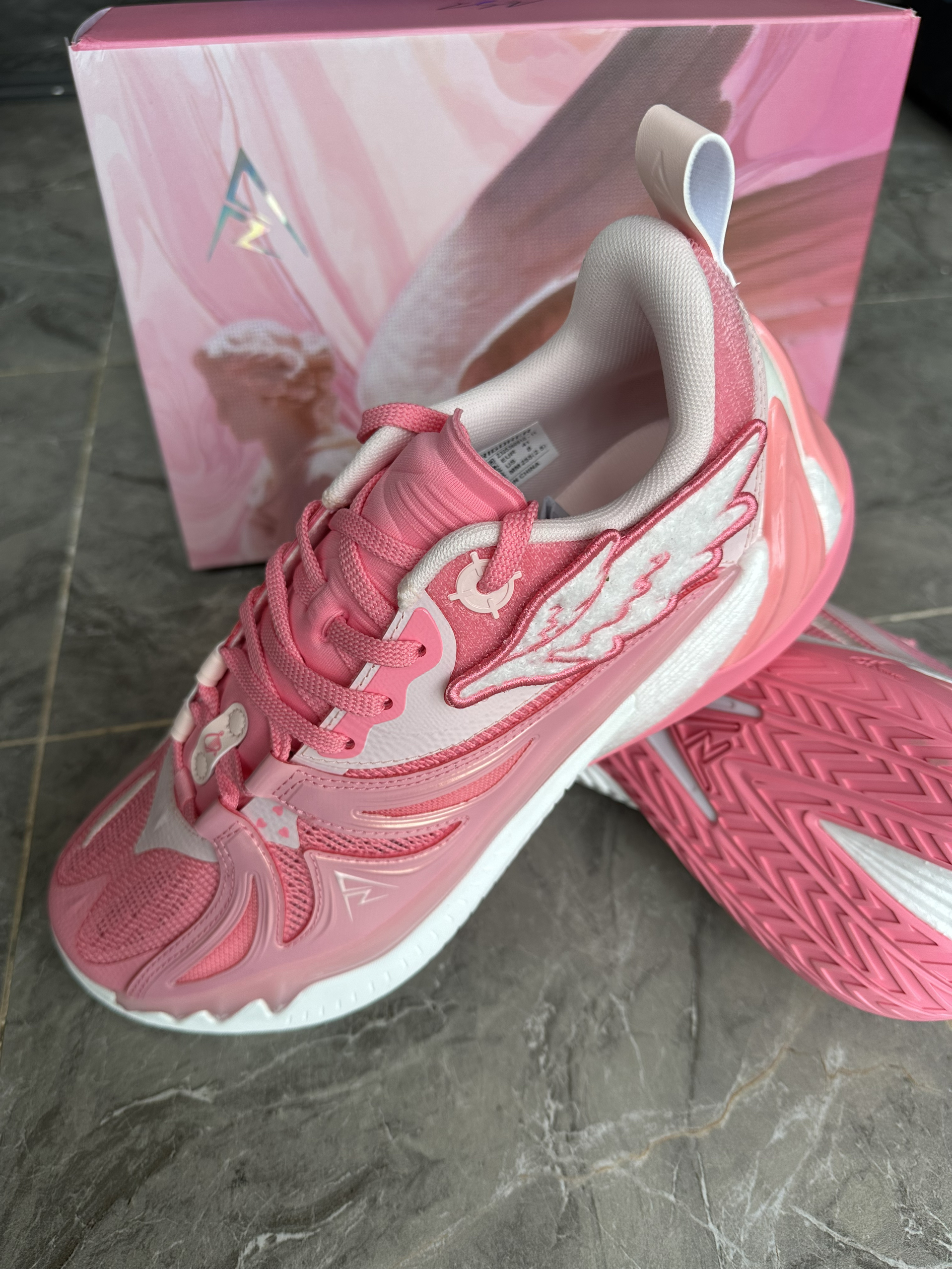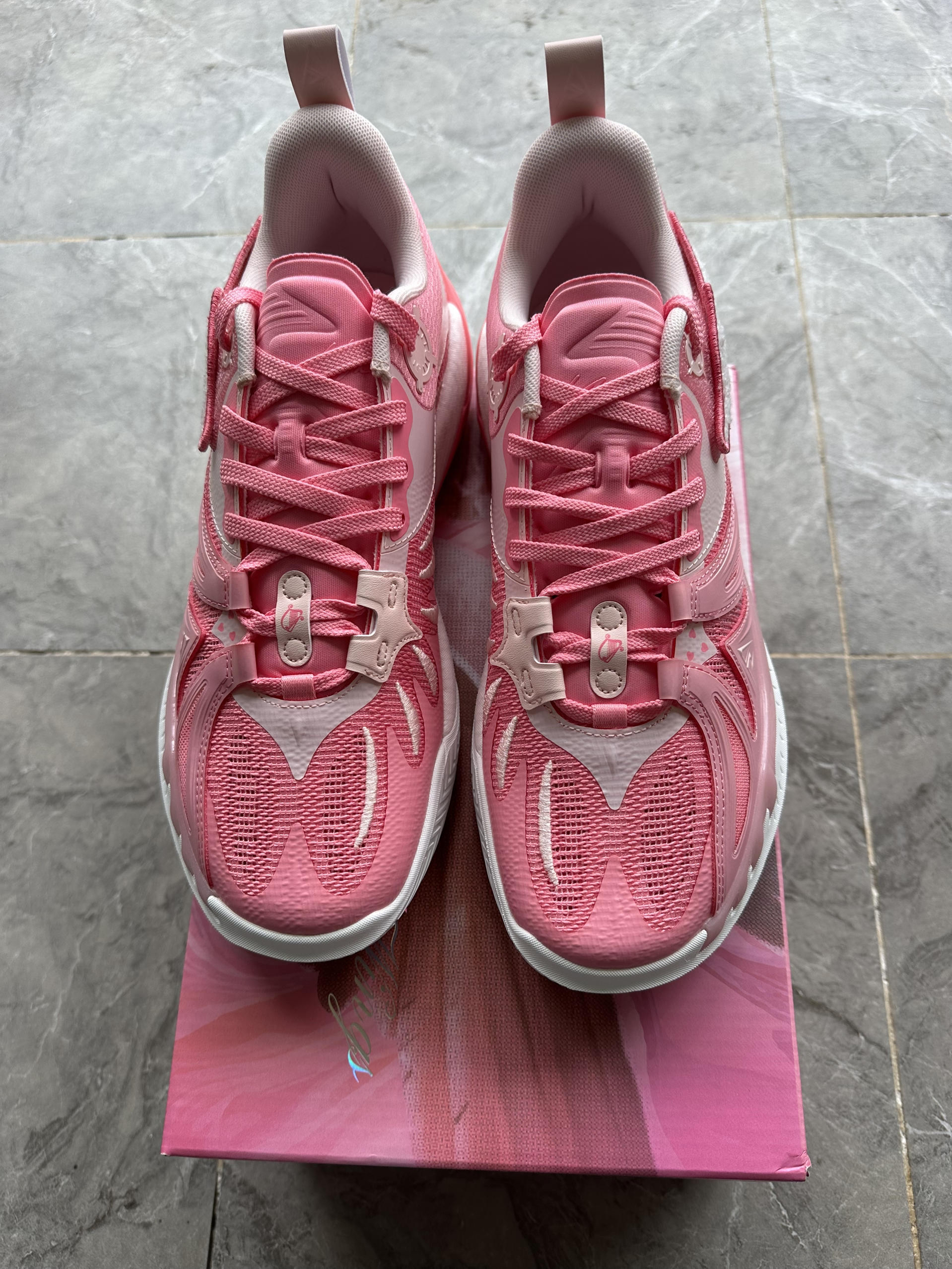 这双准者里弗斯3代粉色款,拿到手我是真的爱了💖 鞋身的飞刀TPU和渐变粉白配色太有特点,往校园里一穿,甜酷质感搭运动裤贼出挑 试了下脚感,中底咻弹超临界反馈挺利落,起跳不拖沓,而且后跟三段式TPU填充很扎实,包裹感直接拉满;大底人字纹也深,抓地力看着就稳,变向急停都不打滑。 尺码说下,正常脚直接选正码就行,脚宽的兄弟建议大半码,免得挤脚。 学生党想找双上课能耍帅、打球能实战的篮球鞋,这双粉到心巴的...
