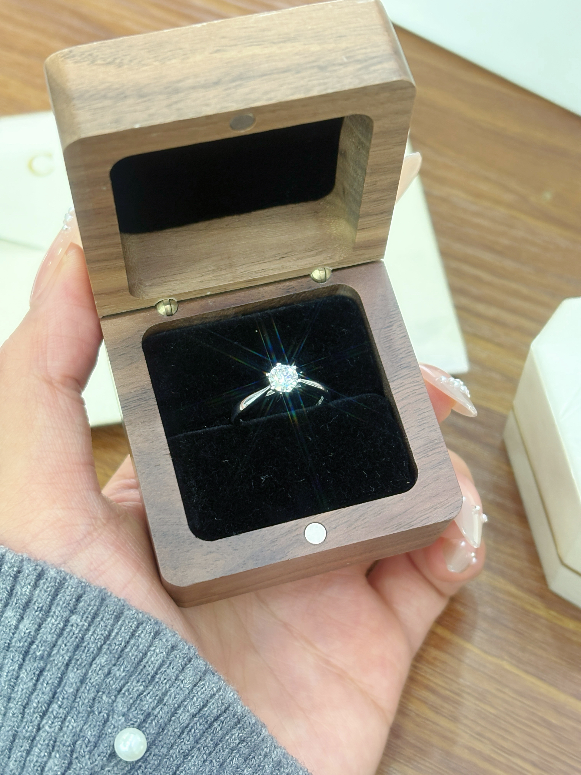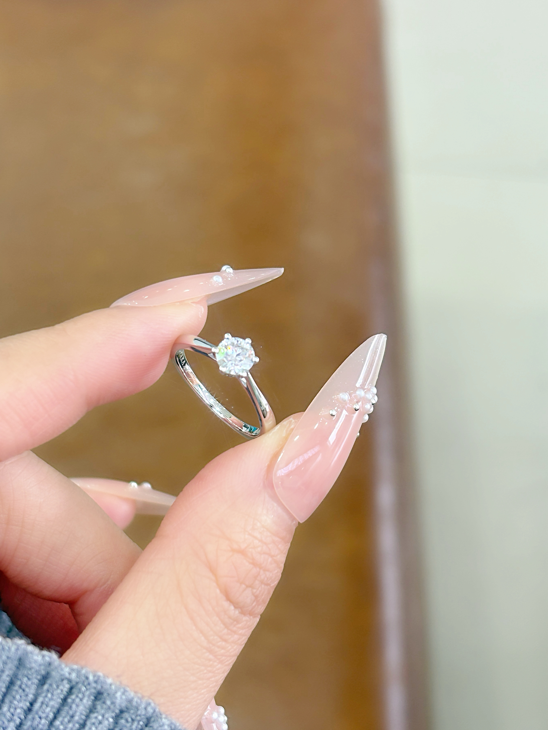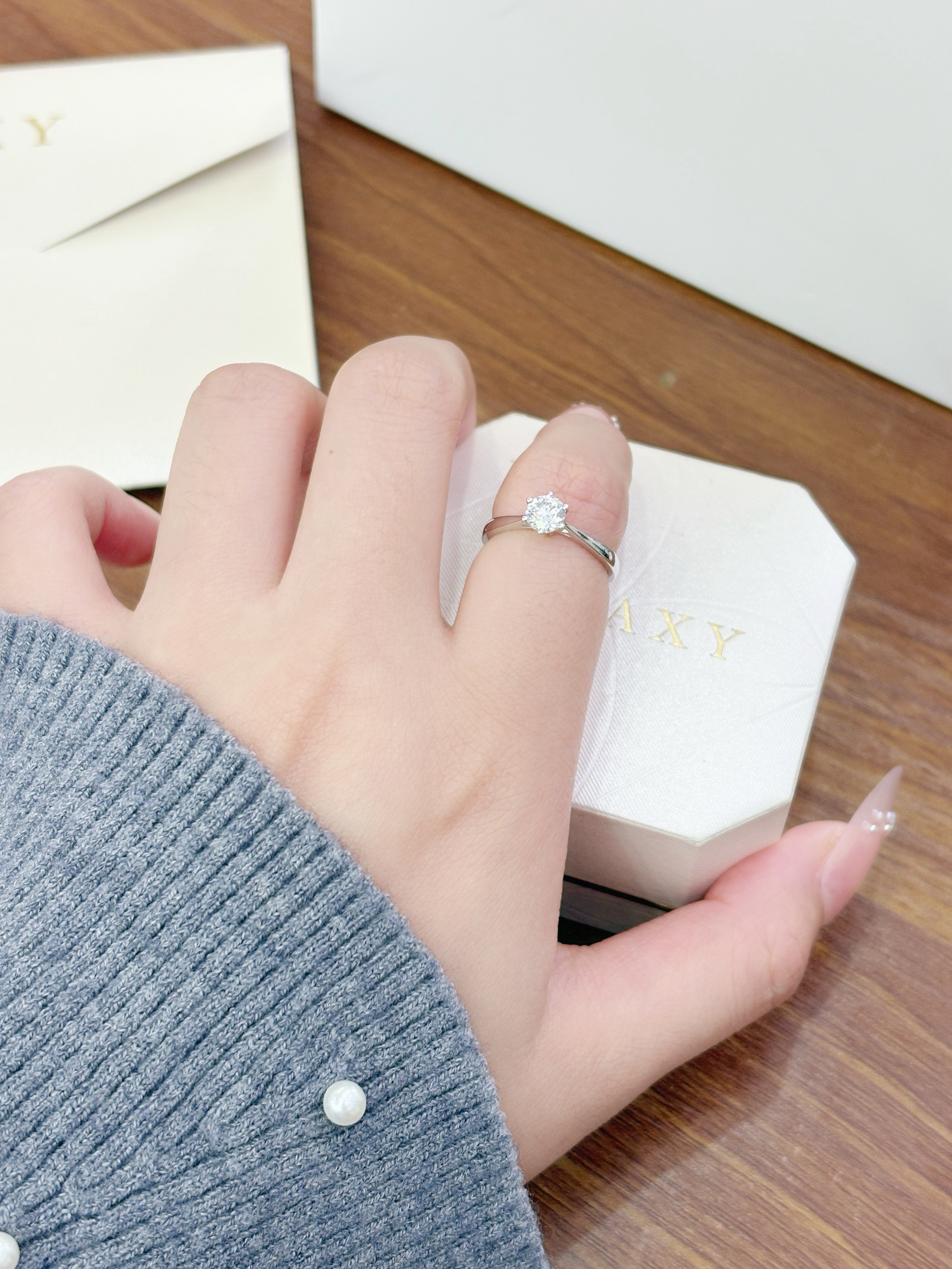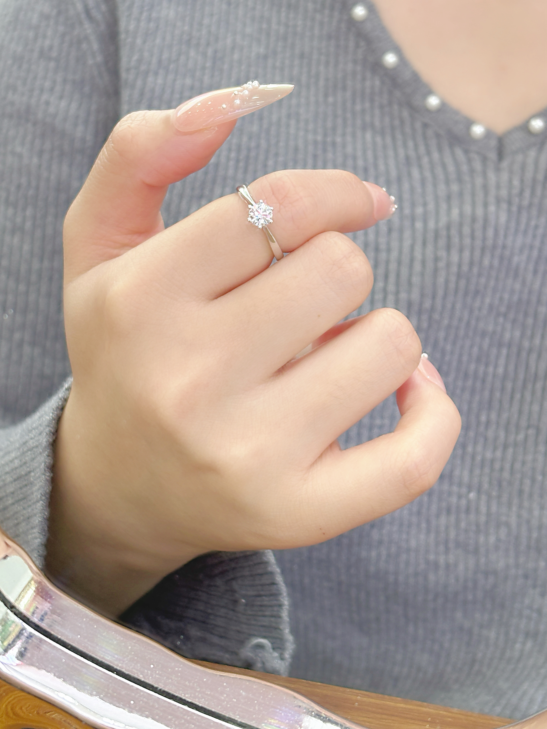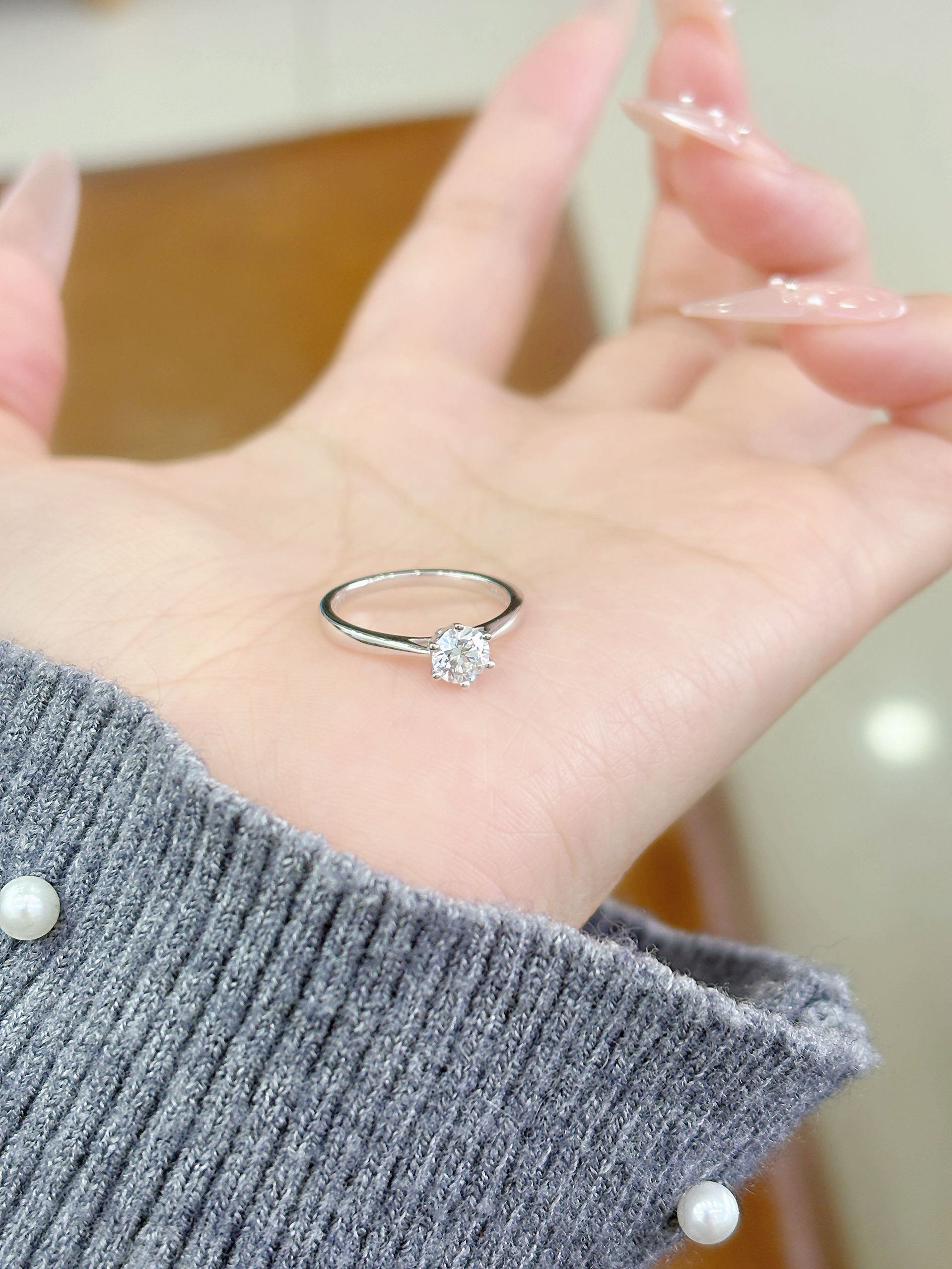 戴上喜欢的戒指啦 这枚一克拉戒指太闪耀了耶 戴好好看