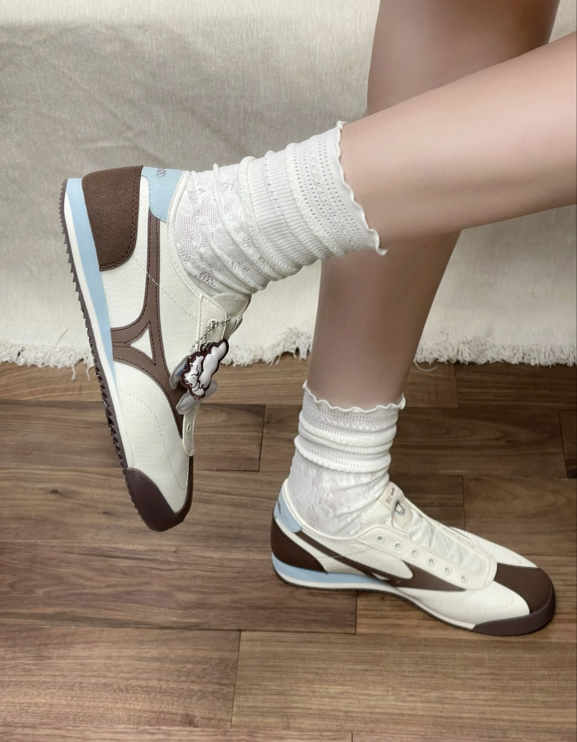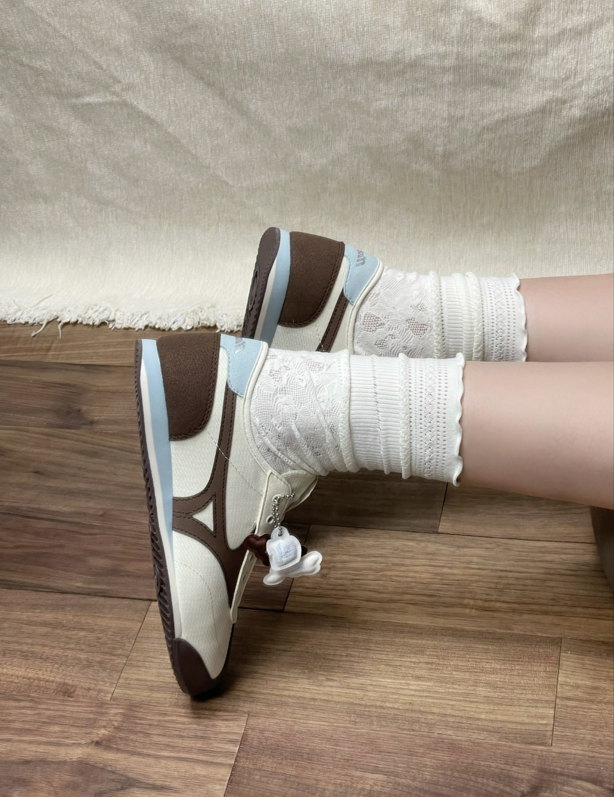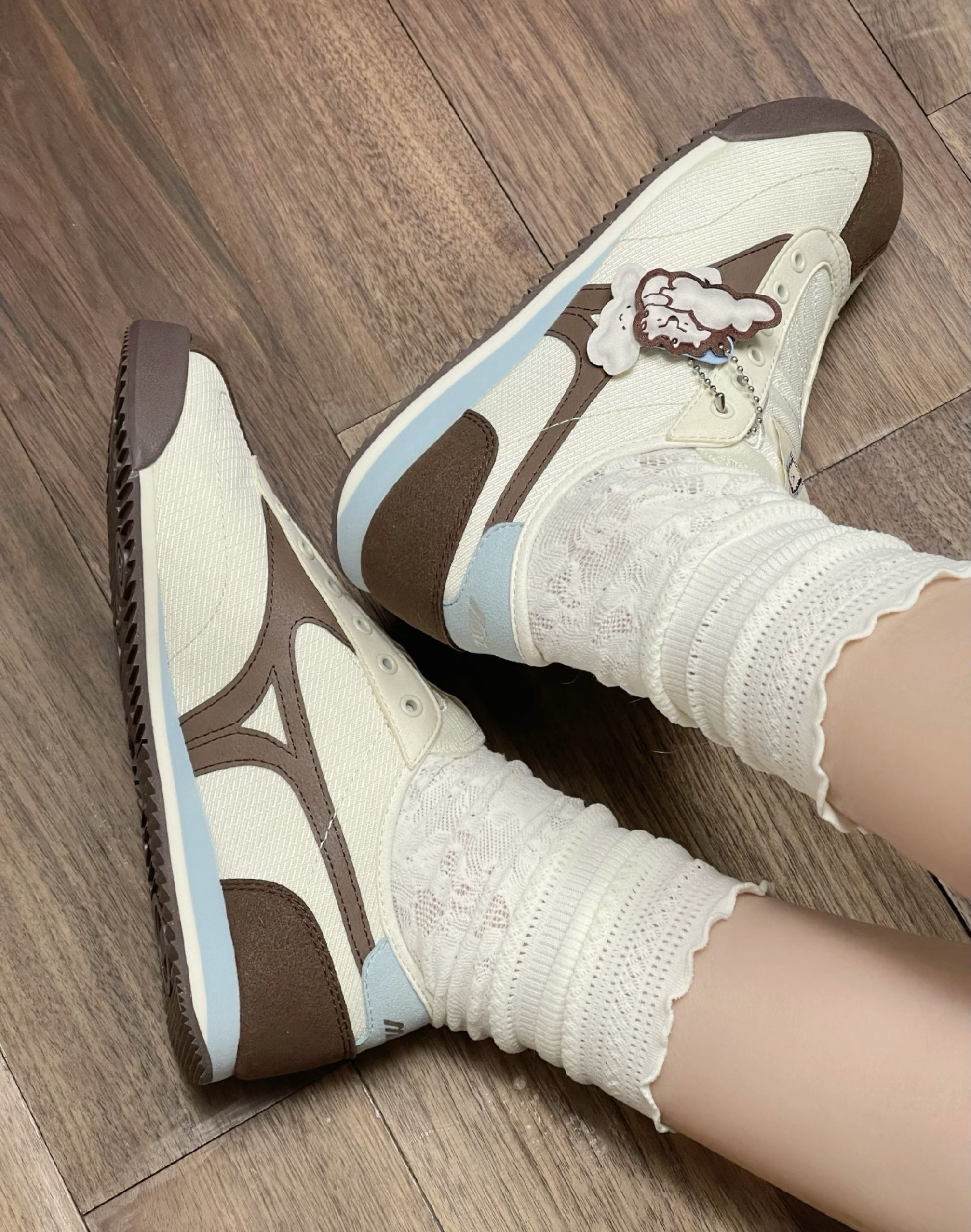 第一眼就被它的奶白棕蓝配色戳中,米白鞋身搭配棕蓝撞色细节,像一块融化的香草奶咖,温柔又治愈,完全长在我的审美点上。复古跑鞋的鞋型自带年代感,麂皮拼接材质细腻又高级,鞋舌上的小挂饰更是点睛之笔,可爱又精致,细节满满。 我特意搭配了白色蕾丝中筒袜,甜妹氛围感一下就出来了,温柔中又带着一点复古感,温柔又灵动,拍照巨出片。而且它的舒适度也超出预期,鞋底软弹,包裹性好,暴走一天都不累,通勤、约会、逛街都能...