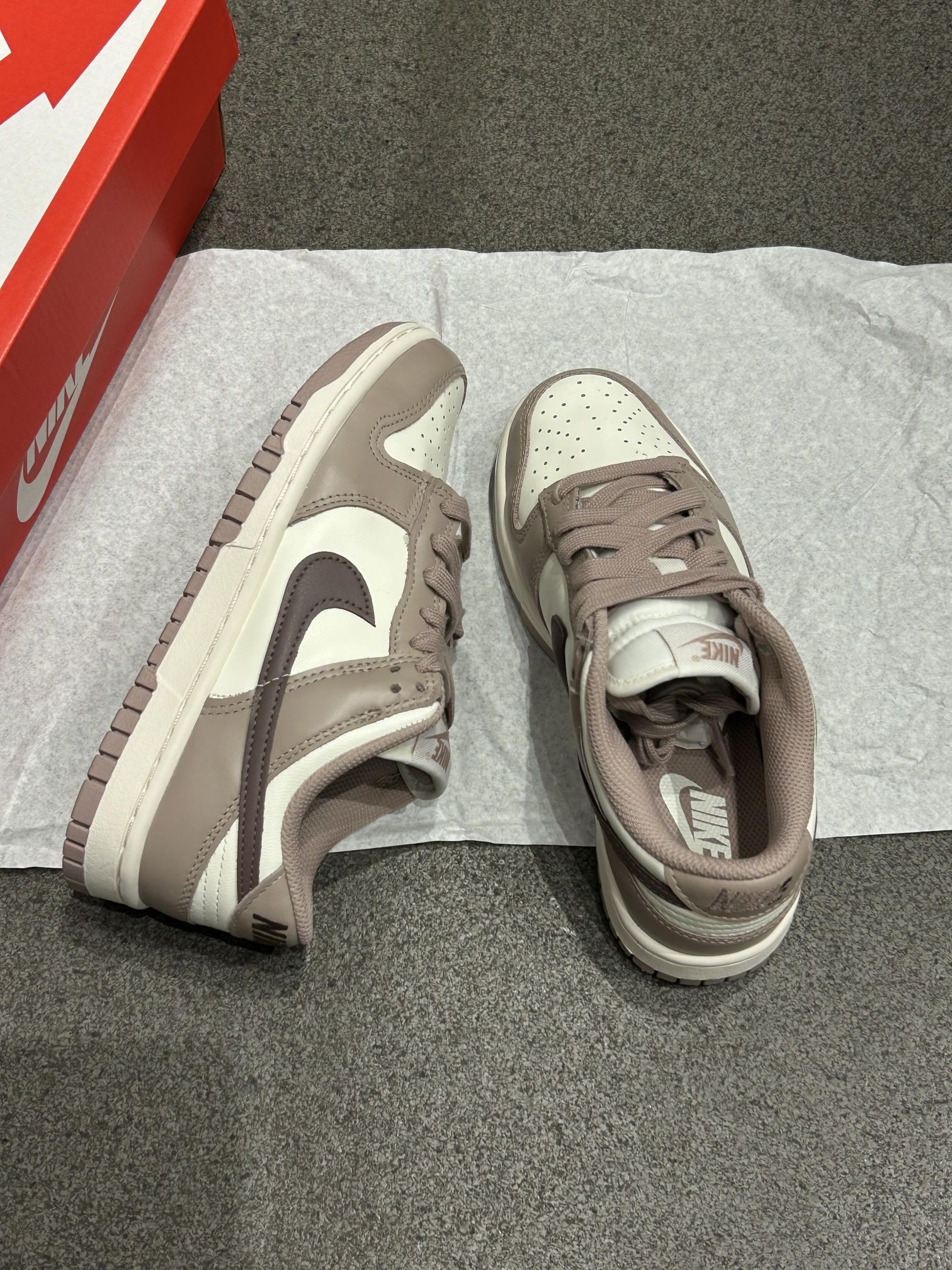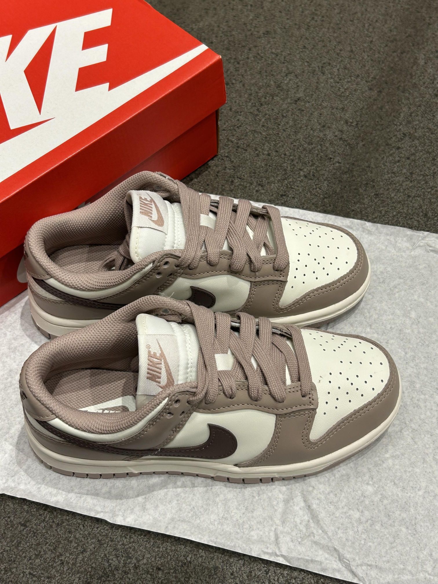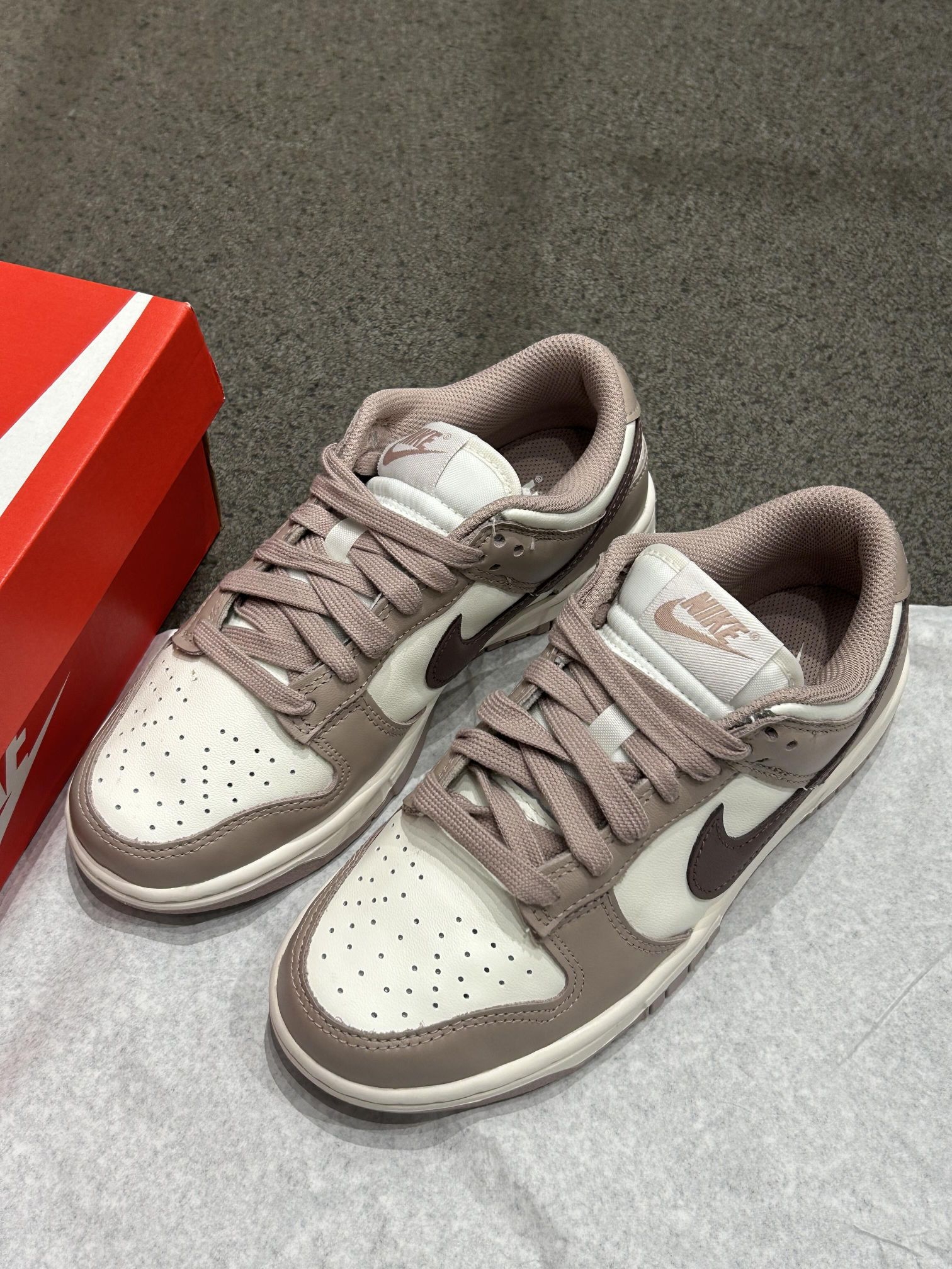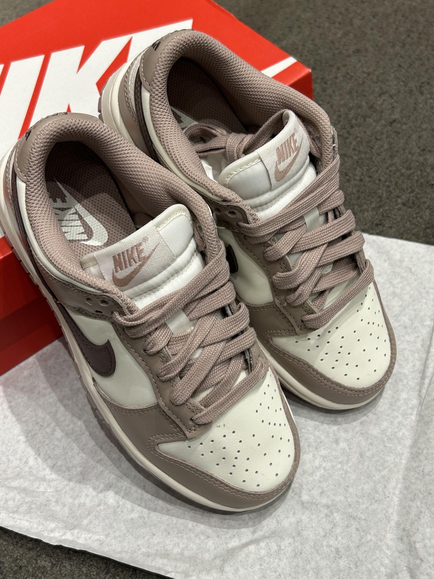 DUNK千枯玫瑰也太好看了 被Nike Dunk 这双奶茶色拿捏啦 温柔又奶fufua的配色 搭白袜or堆堆袜都好绝 出街随手拍 松弛感拉满