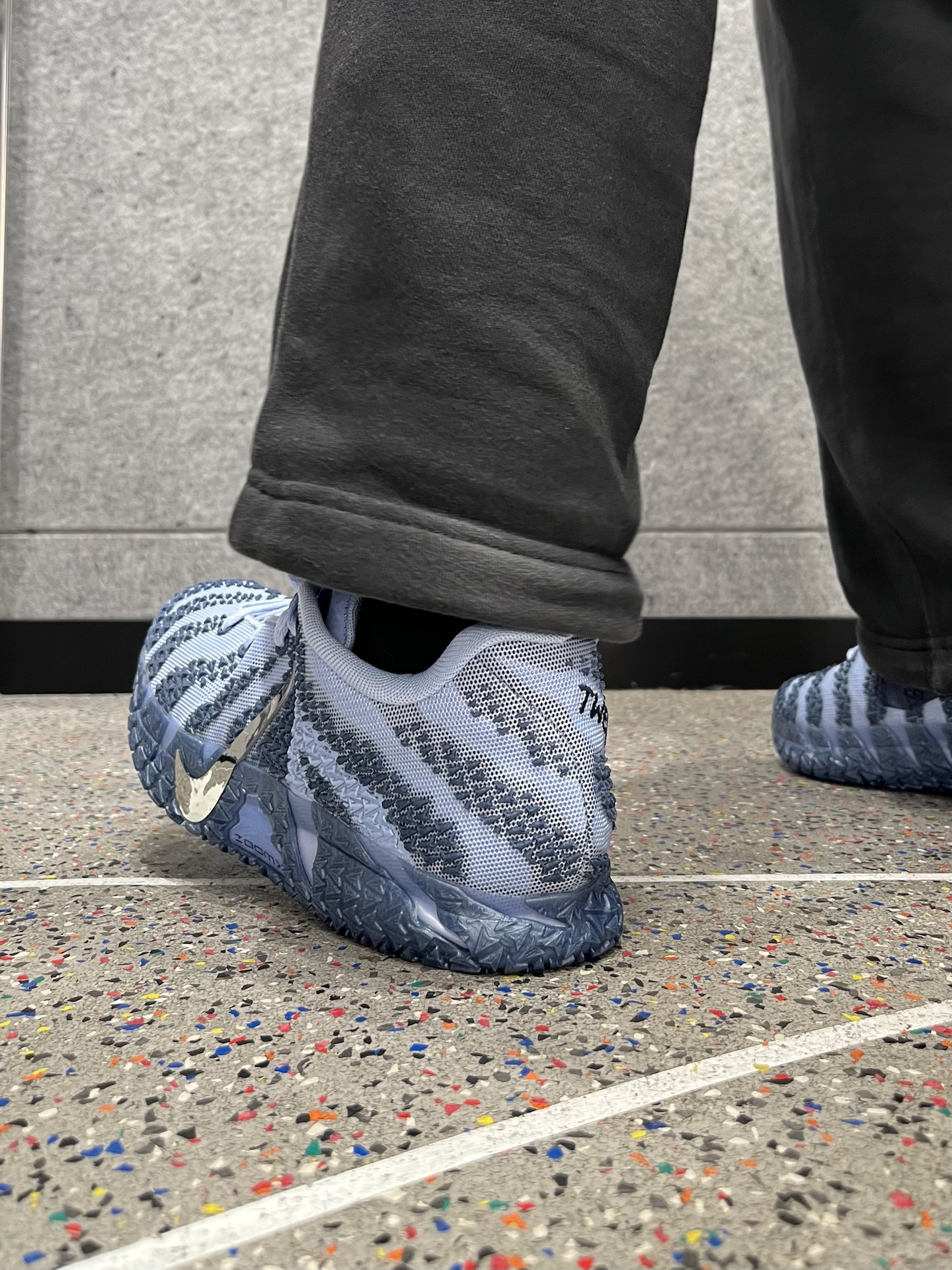 过年红包还没捂热,就盯上这双Ja3液态银,虽然在一众配色里不算抢眼,但属于越看越顺眼那种 浅蓝和雾霾蓝拼在一起,加上银色的倒钩,配色蛮帅的,配了条黑色宽松长裤,发现不止打球能穿,日常在学校穿也不违和 上脚试了试,高脚背和大宽脚可能不太友好,贴合度会有点紧 鞋底看着像橡胶,其实是水晶底,抓地中规中矩,室内外都OK #红包到手球鞋就有 #篮球党的校裤神鞋 #澎湃脚感选哪双 #学生党有自己的鞋修...
