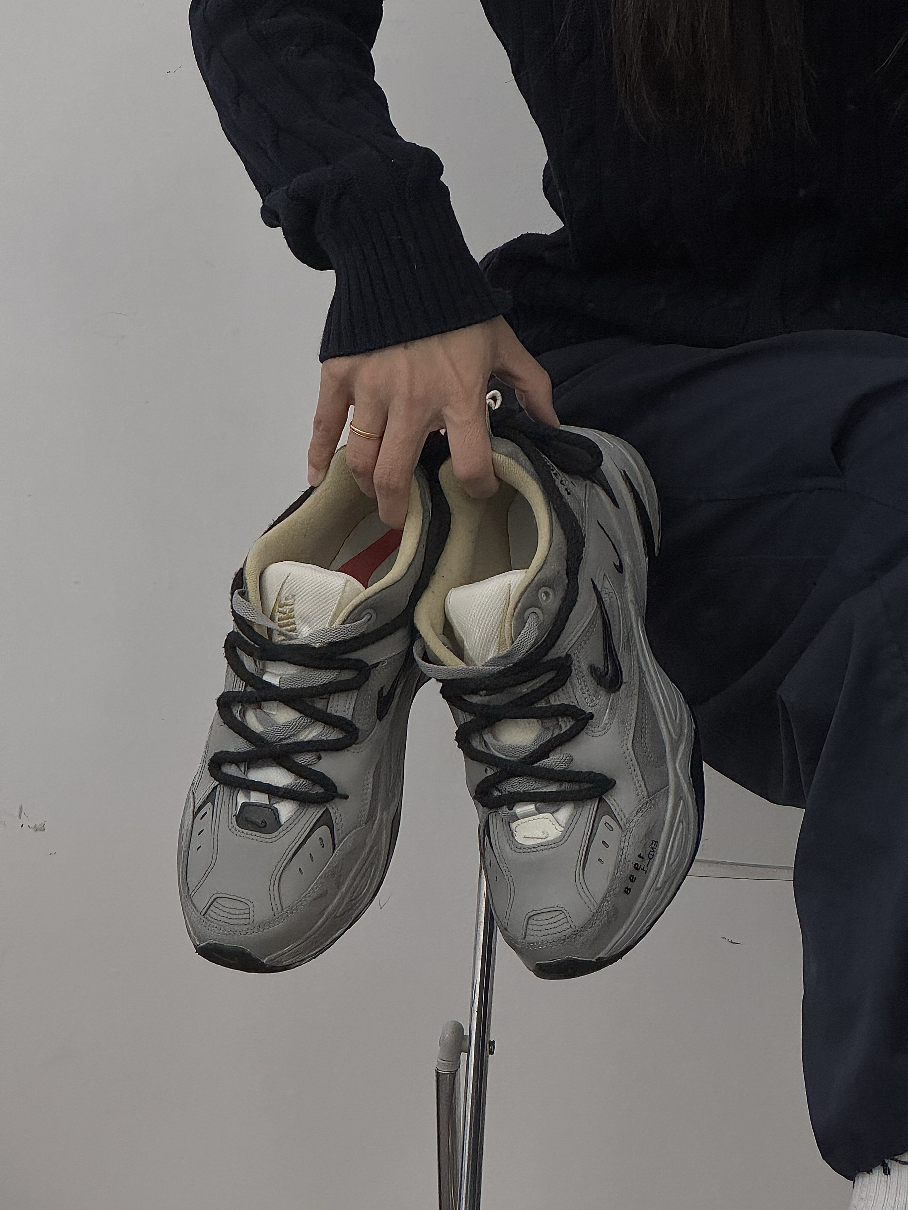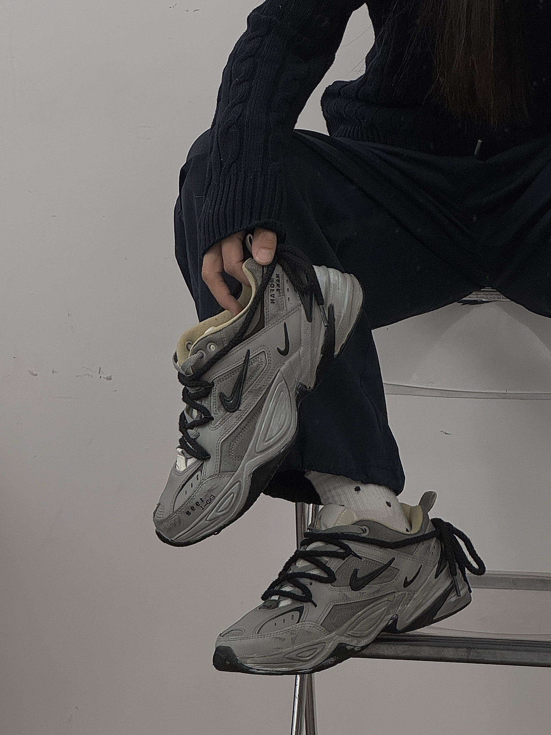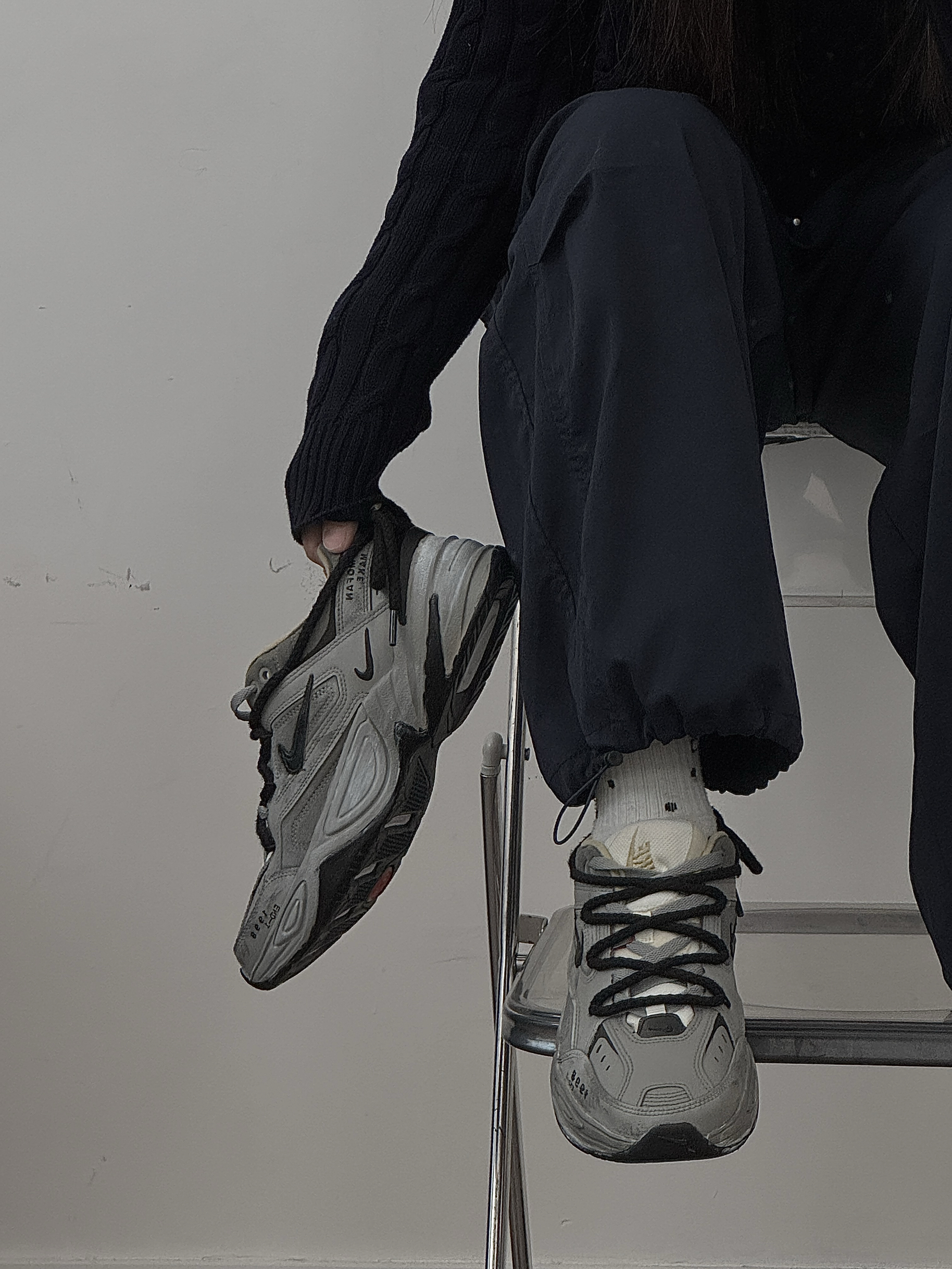 这双鞋真的太戳我了!做旧灰调自带复古滤镜,粗鞋带和厚底设计把街头感拿捏得恰到好处。麂皮和网布拼接的鞋面质感细腻,上脚轻便又显脚小,不管是搭牛仔裤还是运动裤都超和谐,日常出街回头率超高,是越看越爱的宝藏单品。