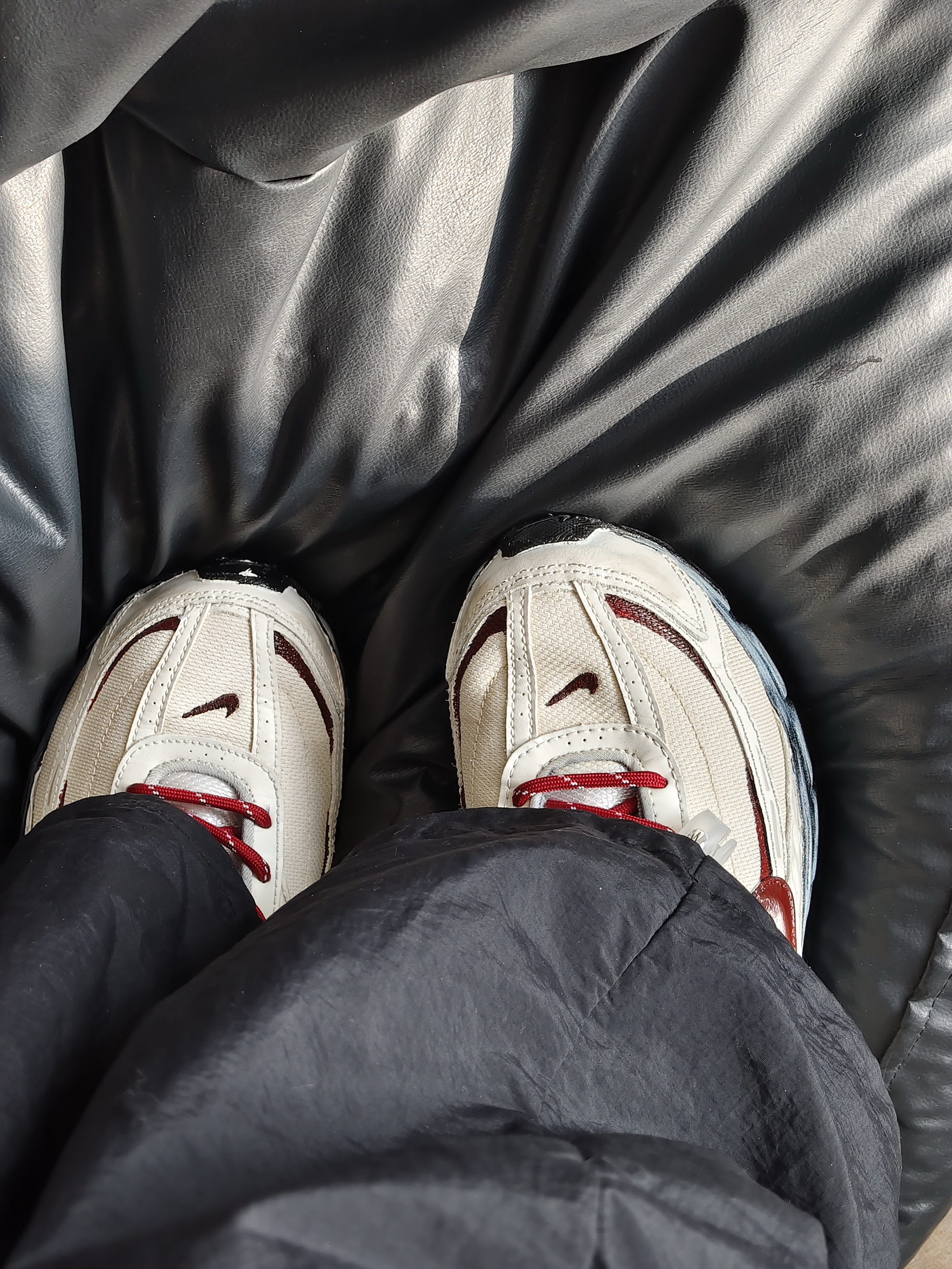米白底色搭配酒红线条,红色鞋带点缀得恰到好处,复古又显活力。厚实鞋底自带增高效果,走路软弹不累脚,日常搭配黑裤或牛仔裤都很和谐,慵懒又时髦,平价还百搭,通勤、出街都能穿,质感和颜值双双在线