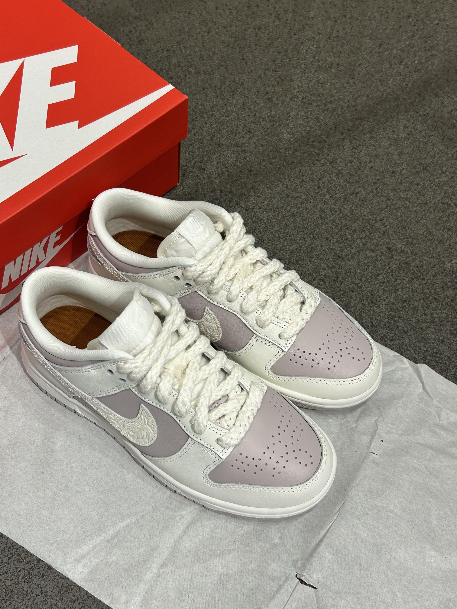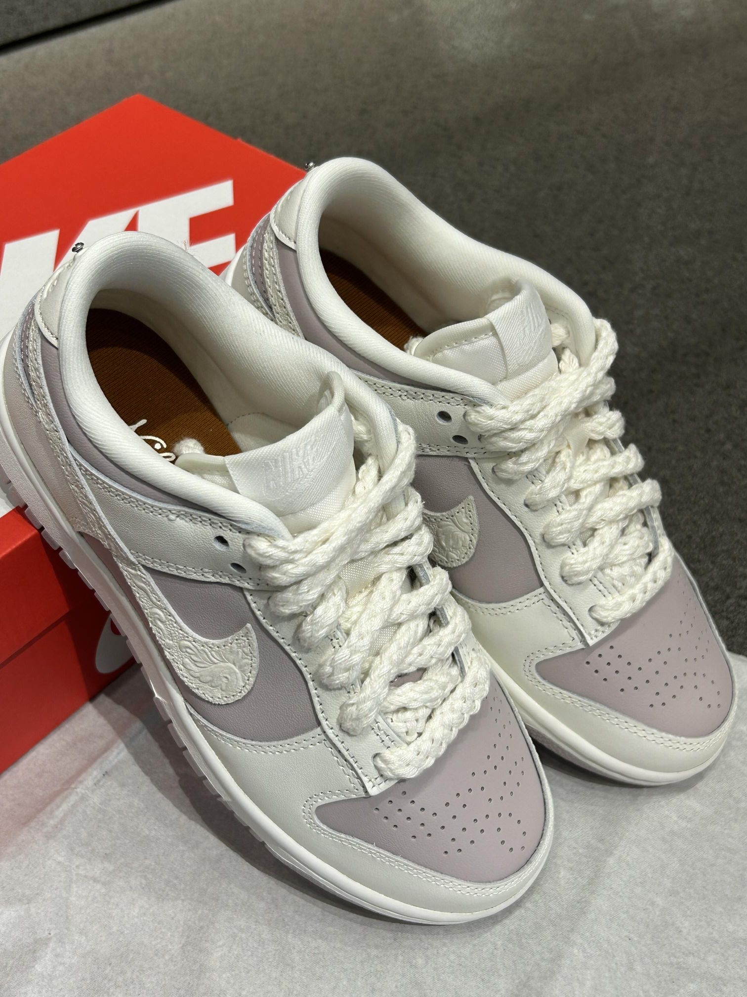 DUNK 奶呼呼的配色太温柔了 🫧嘀嘀嘀..Dunk全新配色:蔷薇花语 🍭奶敷敷的粉色搭配着奶白色 更显女性的温柔 👟鞋身logo做了印花设计 标志显得活灵活现 🎠游乐场街拍穿上更有氛围感 🎀适合搭配显得系的衣服哦
