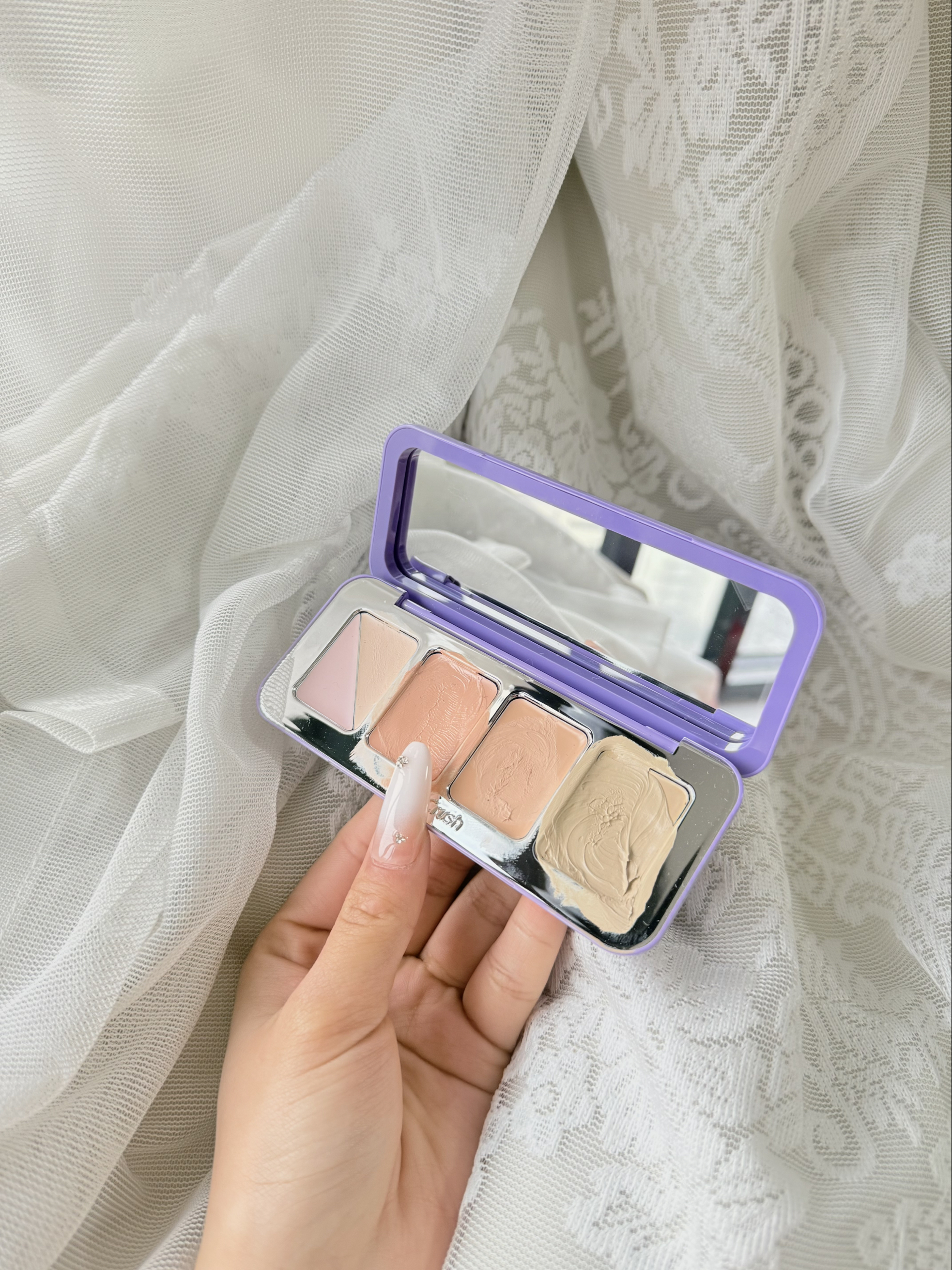 挖到宝了!GirlsCrush这款倍润无瑕五色遮瑕盘,香芋紫的外壳真的太戳我了💜 • 五色全能:一盘搞定黑眼圈、泛红、痘印、提亮,新手也能轻松上手 • 质地润到哭:奶油质地,推开顺滑,干皮冬天用也不卡纹、不积线 • 精准遮瑕:肤橘色中和黑眼圈,肤绿色改善泛红,肤白色提亮泪沟,一盘多用 日常底妆有它就够了,性价比超高,瑕疵皮姐妹快冲!
