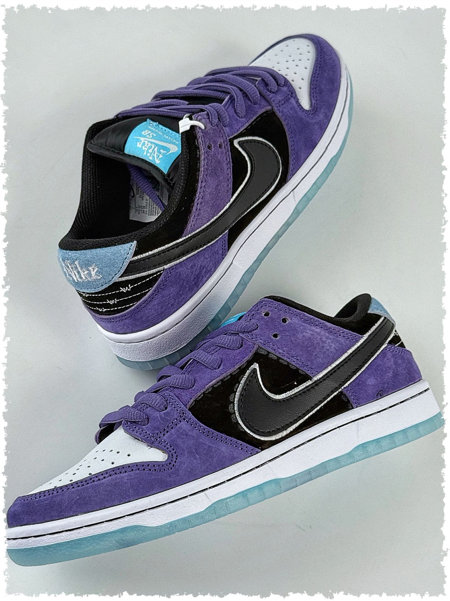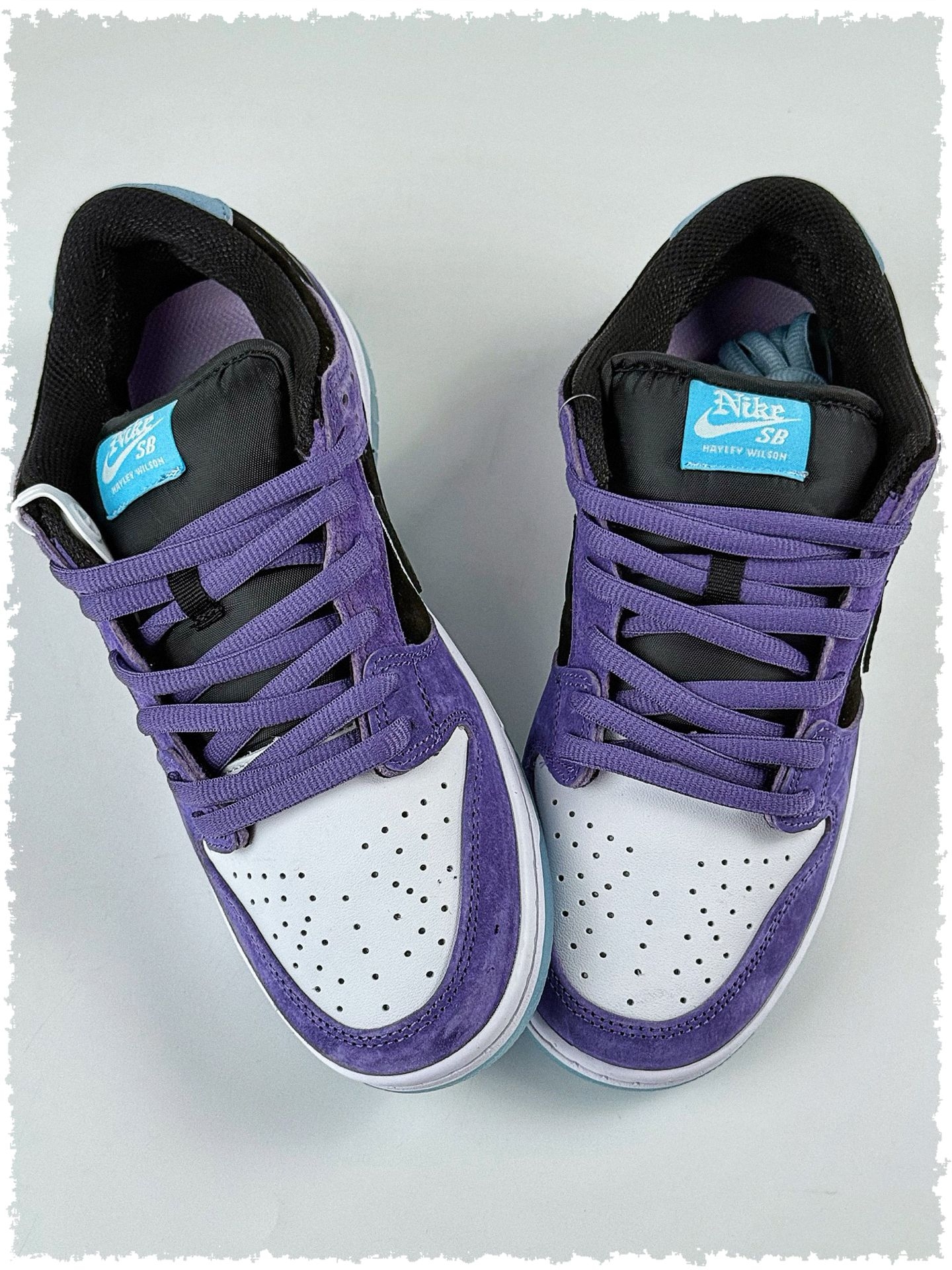 Hayley Wilson x Nike Dunk SB DUNK LOW PRO脚感与颜值双重在线💯,鞋面以神秘紫🔮、酷黑⚫️与纯净白⚪️撞色,主角麂皮触感柔软☁️。但它颇为“娇气”,遇雨易褪色变硬🌧️,雨天需妥善收纳🏠;日常需用专用麂皮刷梳理🐱,切忌直接水洗🚫。 冰蓝色水晶底清新透亮似踩冰块🧊,堪称“颜值作弊器”💎,但耐磨性欠佳且易泛黄😅。每次穿后需用软布轻擦🧖♀️,远离污渍灰尘以保持纯净🌙。...