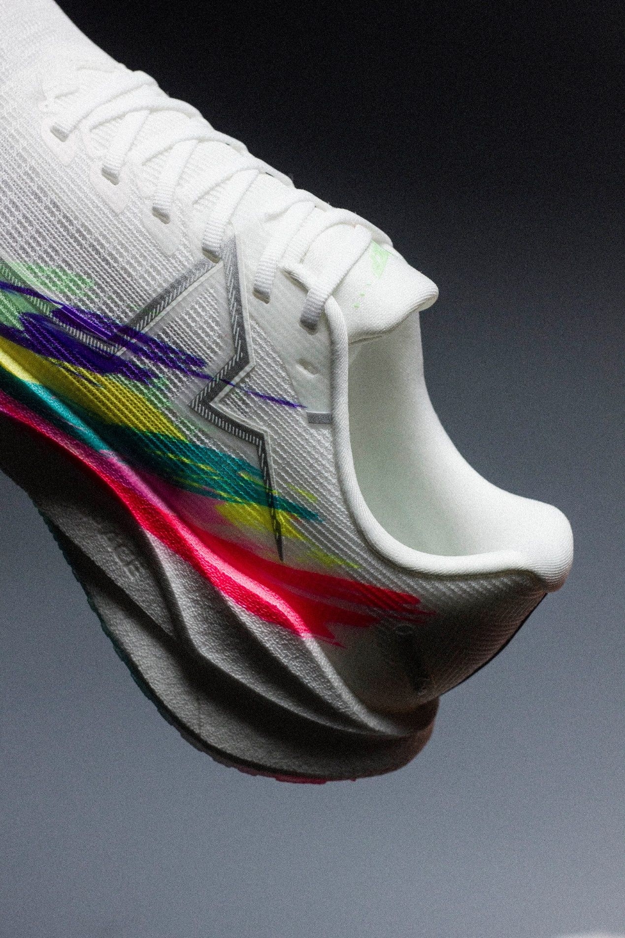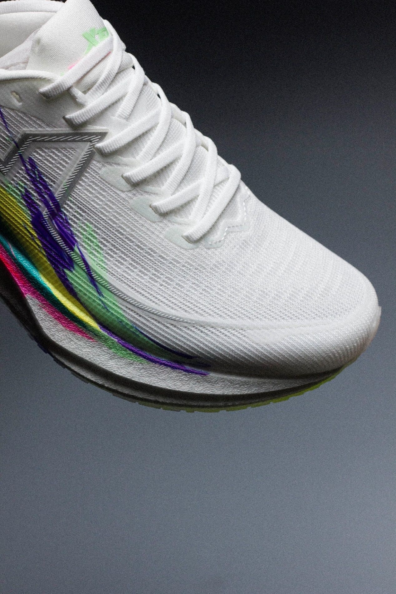 当纯白鞋身如梦想之初的纯净画布,多彩笔触已悄然在其上绽放——这一抹抹绚烂,整体色彩搭配活力十足,为奔跑注入青春能量。 但真正让我下定决心把它放进体测备选清单的,是这块全新黑科技-BT400柔态碳板。 以往提到碳板跑鞋,很多人第一反应是:快是快,但硬、板脚、难驾驭。尤其体测这种既要速度又要稳定、还得兼顾耐久的使用场景,传统碳板确实有点“挑脚”。 而360X 3.0这块碳板,可弯折角度做到了大于100...