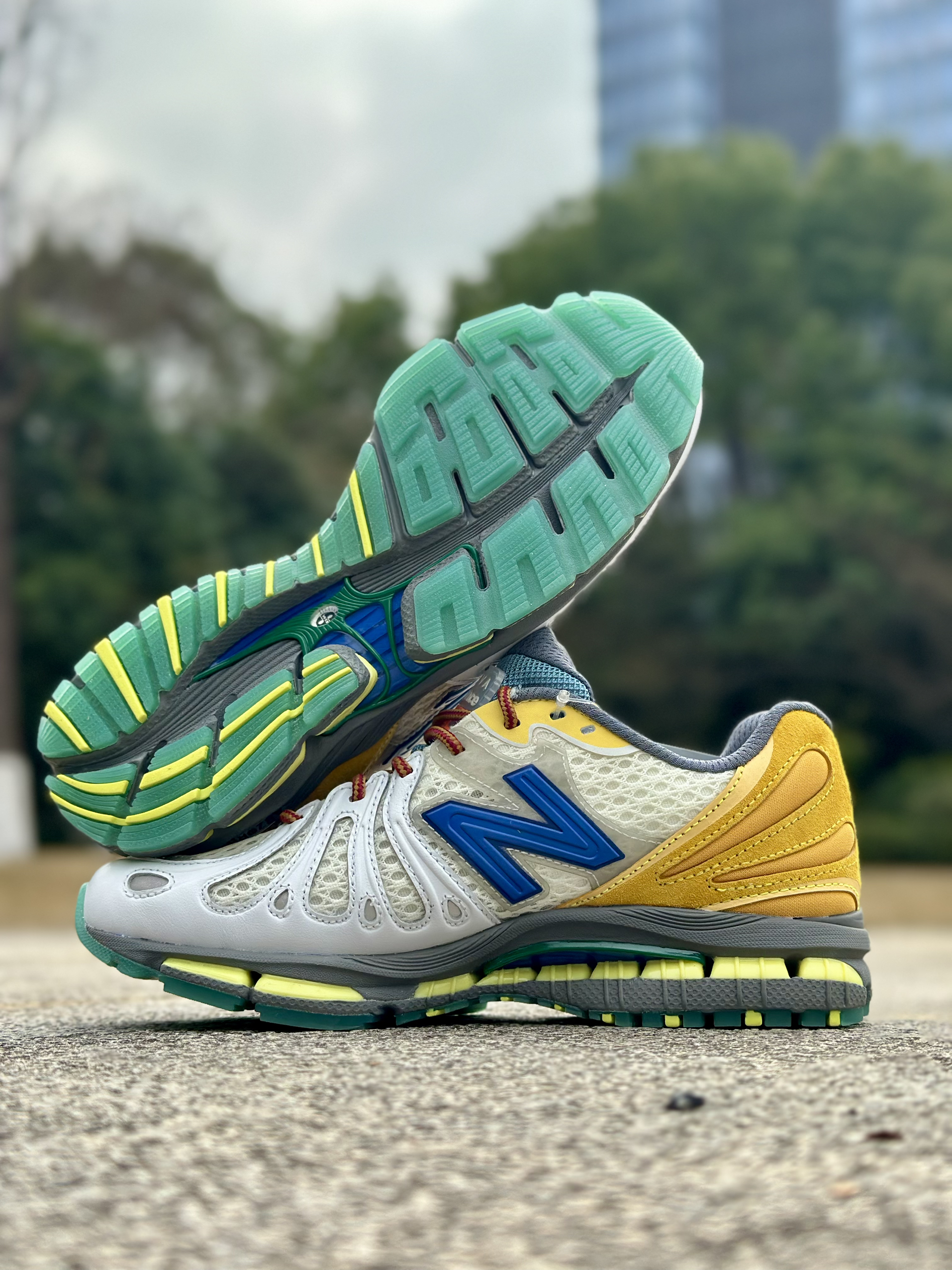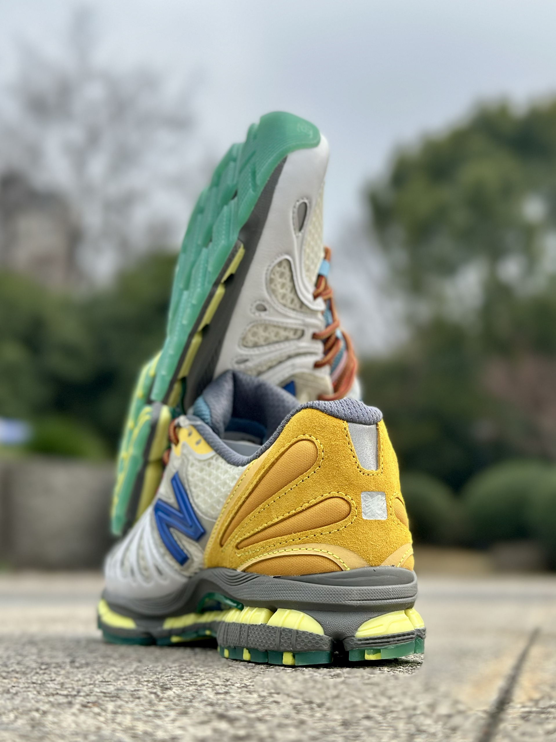 这双NB联名真的长在我审美上!米白拼浅黄的配色巨温柔,鞋身的皮革拼接看着就很有质感,鞋舌的小标还藏着联名彩蛋,细节拉满。 上脚第一感觉就是软,踩下去像踩在棉花上,平时逛街走一天,脚后跟也不磨、脚底不酸,透气性也在线,春天穿完全不闷脚。 搭配超简单,配条直筒牛仔裤就很复古,搭灰色卫裤又很休闲,随便穿都好看,已经成我最近的出门首选了!