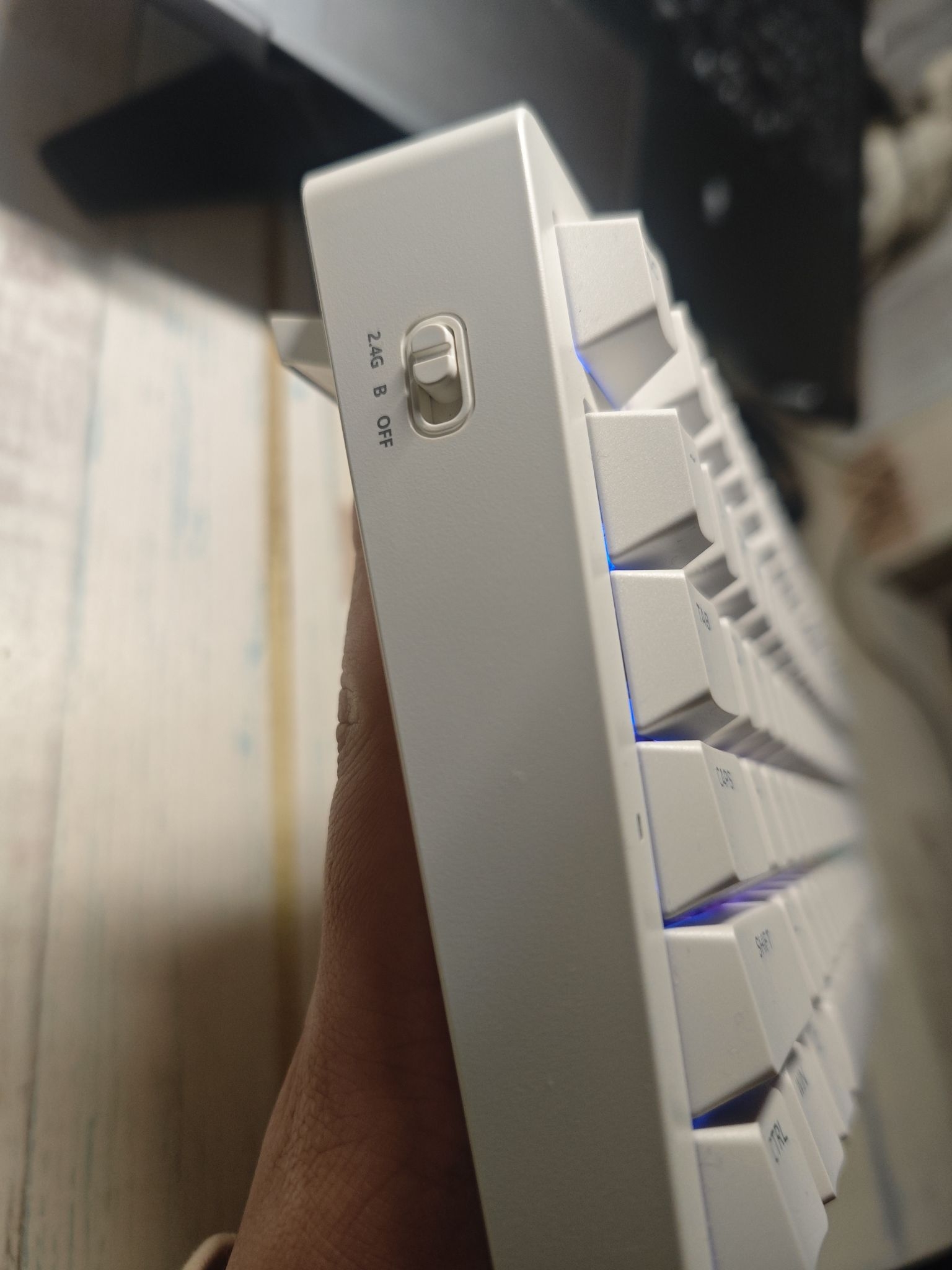 手感非常好的键盘,而且有不同模式2.4 蓝牙 有线,声音也很舒服,很安静,但是不是纯静音。