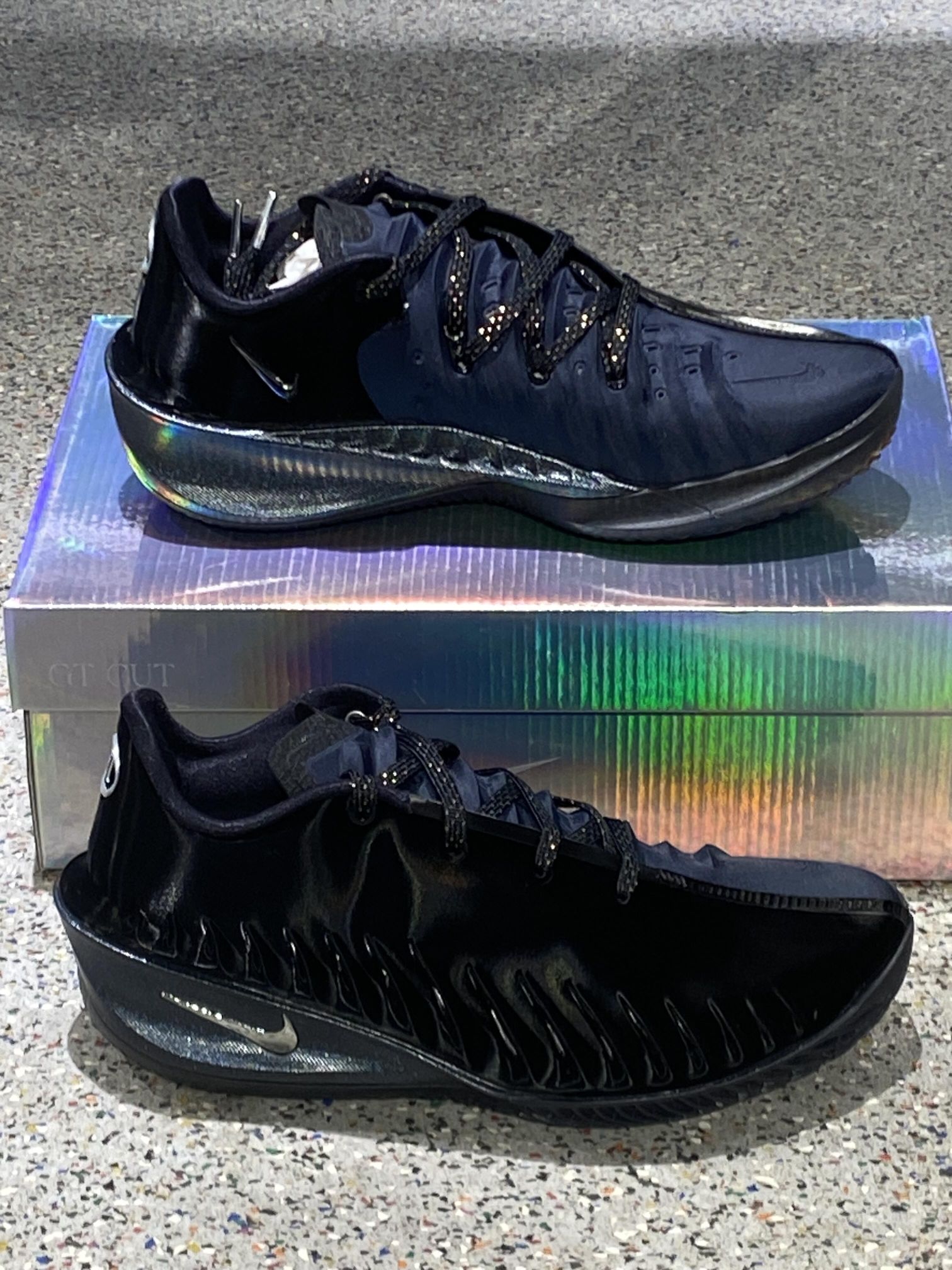 后跟酷黑,前掌亮黑,这鞋真帅啊! 双Nike G.T. Cut 4 黑武士配色的篮球鞋,实战科技:搭载ZoomX内嵌式鞋垫+全掌Zoom Strobel气垫的双缓震科技,能提供出色的回弹反馈,适合后卫球员的突破与急停需求;外底纹路深邃,抓地力表现优异。 • 风格定位:既满足专业篮球实战需求,全黑的简约设计也适配日常穿搭,是一双“实战+颜值”双在线的鞋款。