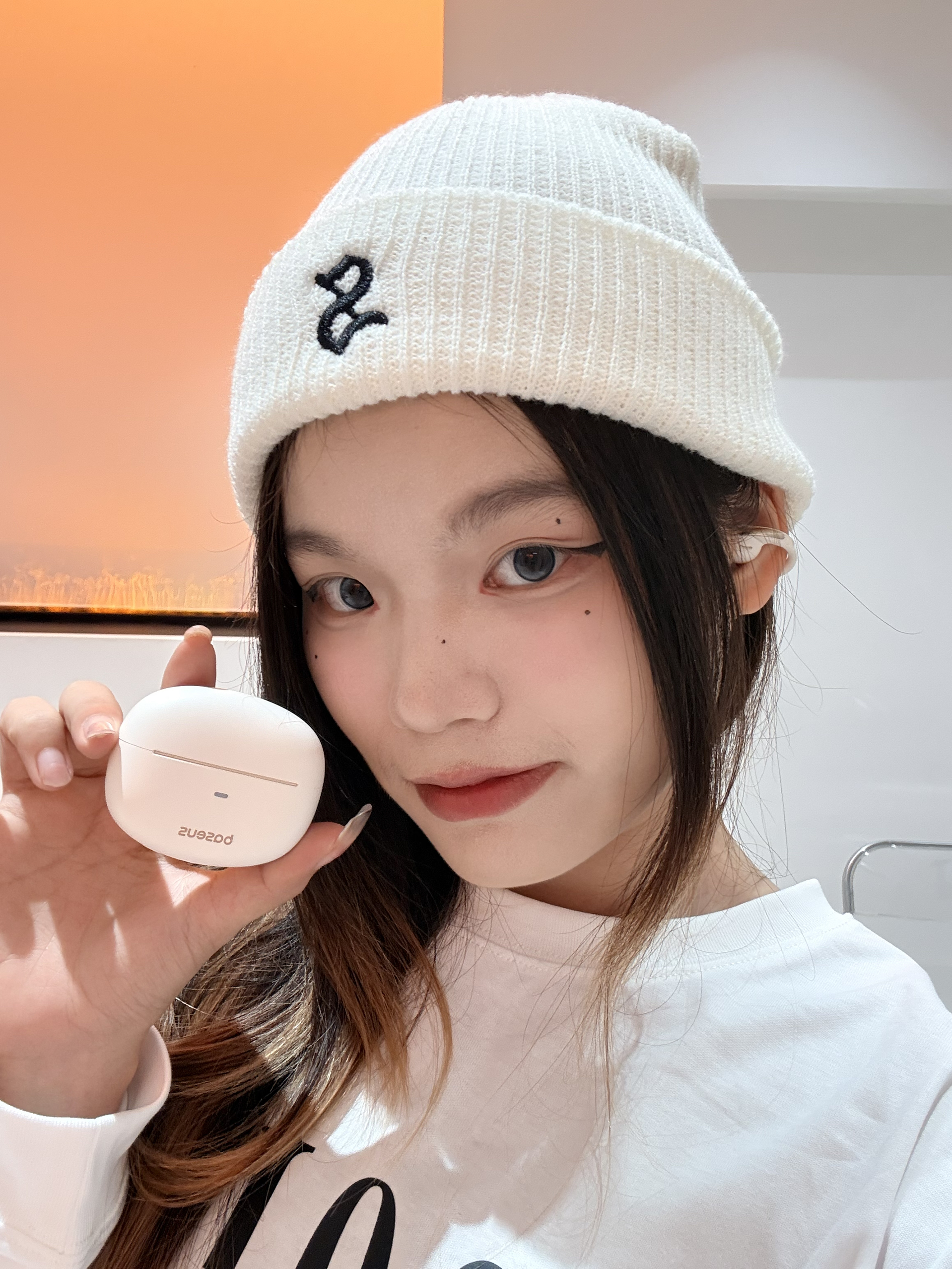 我的降温天的懒人公式:针织帽+宽松卫衣。 为了避免全白太单调,特意搭了蜡笔小新联名耳夹耳机🖍️ 奶fufu的配色和整体造型完美融合✨ 耳夹设计稳固又好看,听歌时自带萌感buff。 黑白基础款秒变韩系氛围感,出片率💯 我日常走路用都不会掉 稳稳的很安心💕
