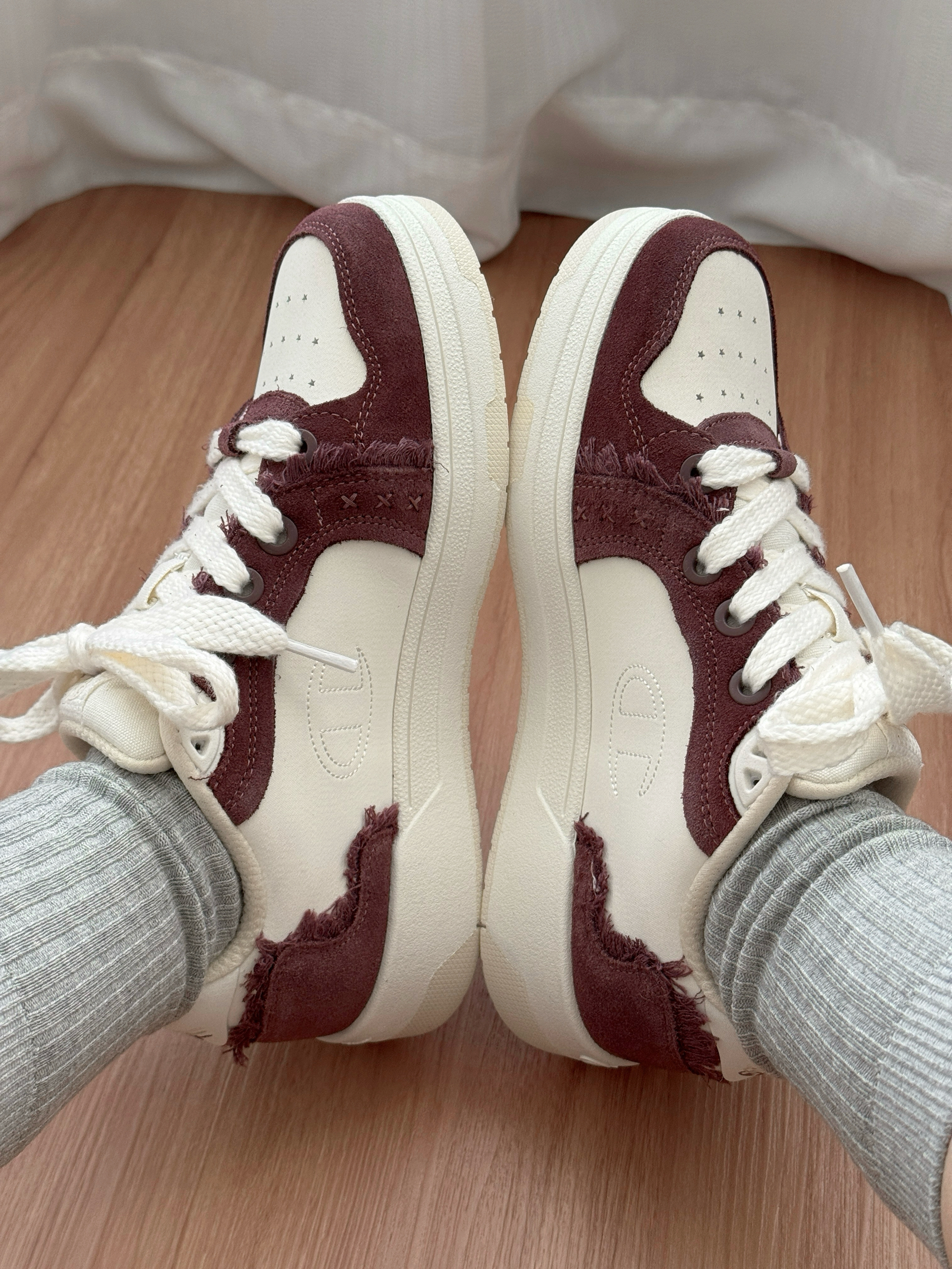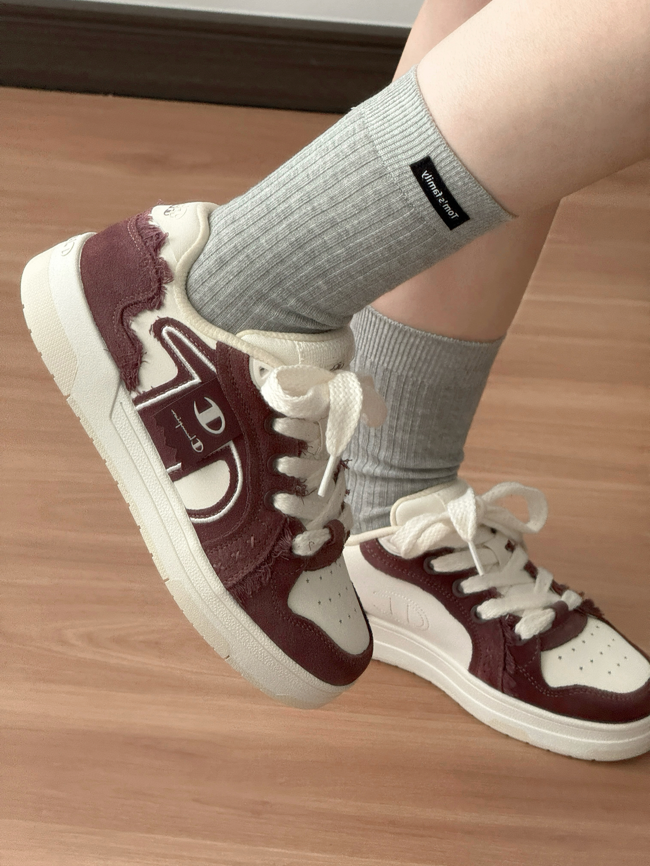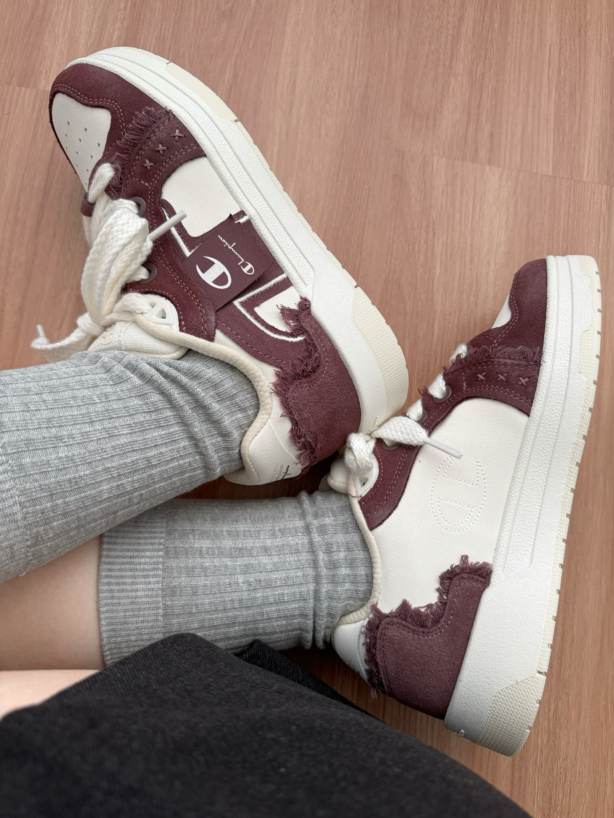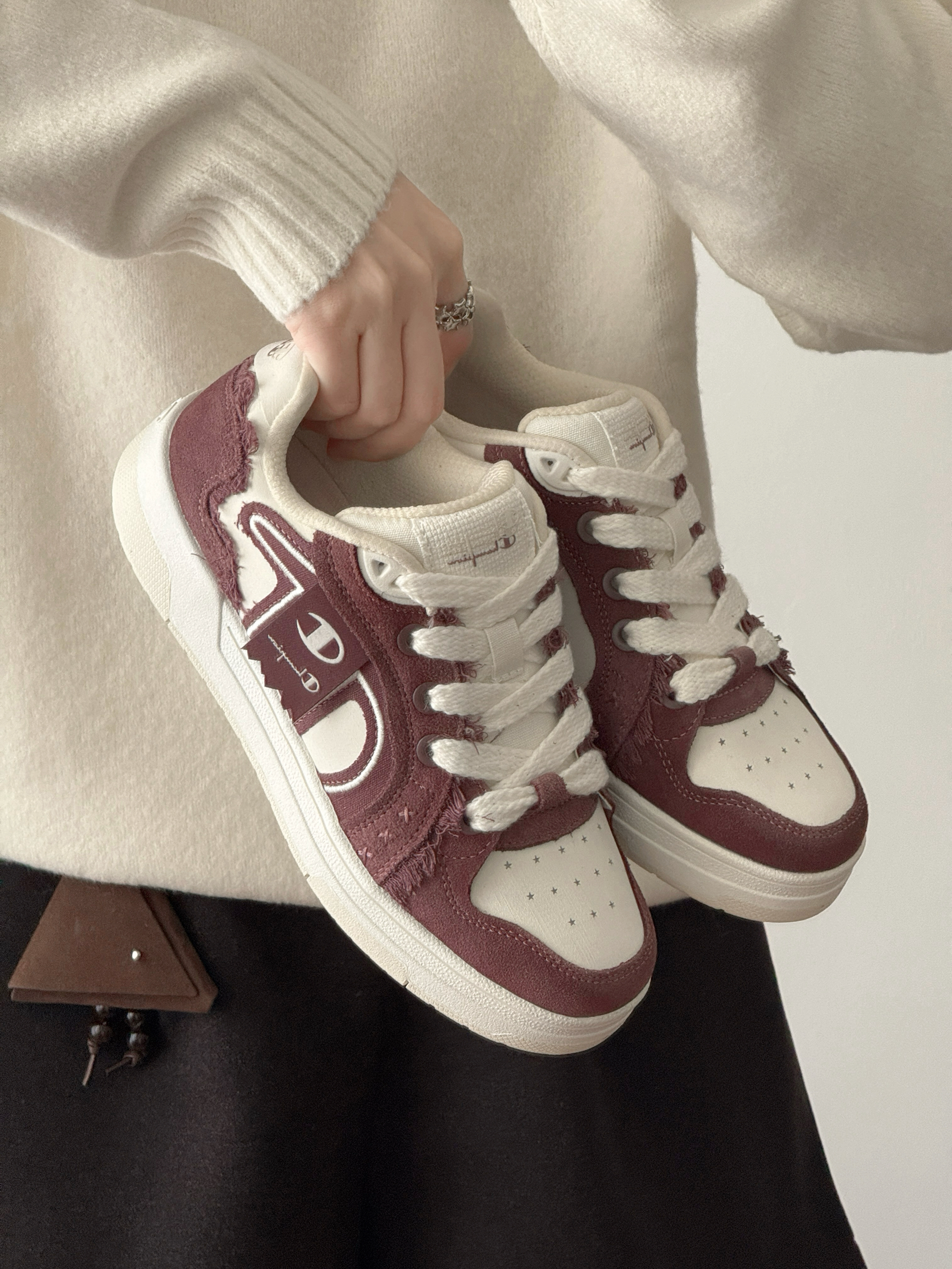 今日份OOTD~ 酒红+米白的配色自带复古滤镜 鞋面的毛边和logo细节超有质感 随便搭毛衣、卫衣都巨有氛围感! jio感贼舒服,不磨脚还显脚小~ 现在我秋冬穿搭基本靠它撑场面 属于“随便穿穿都好看”的懒人宝藏款!