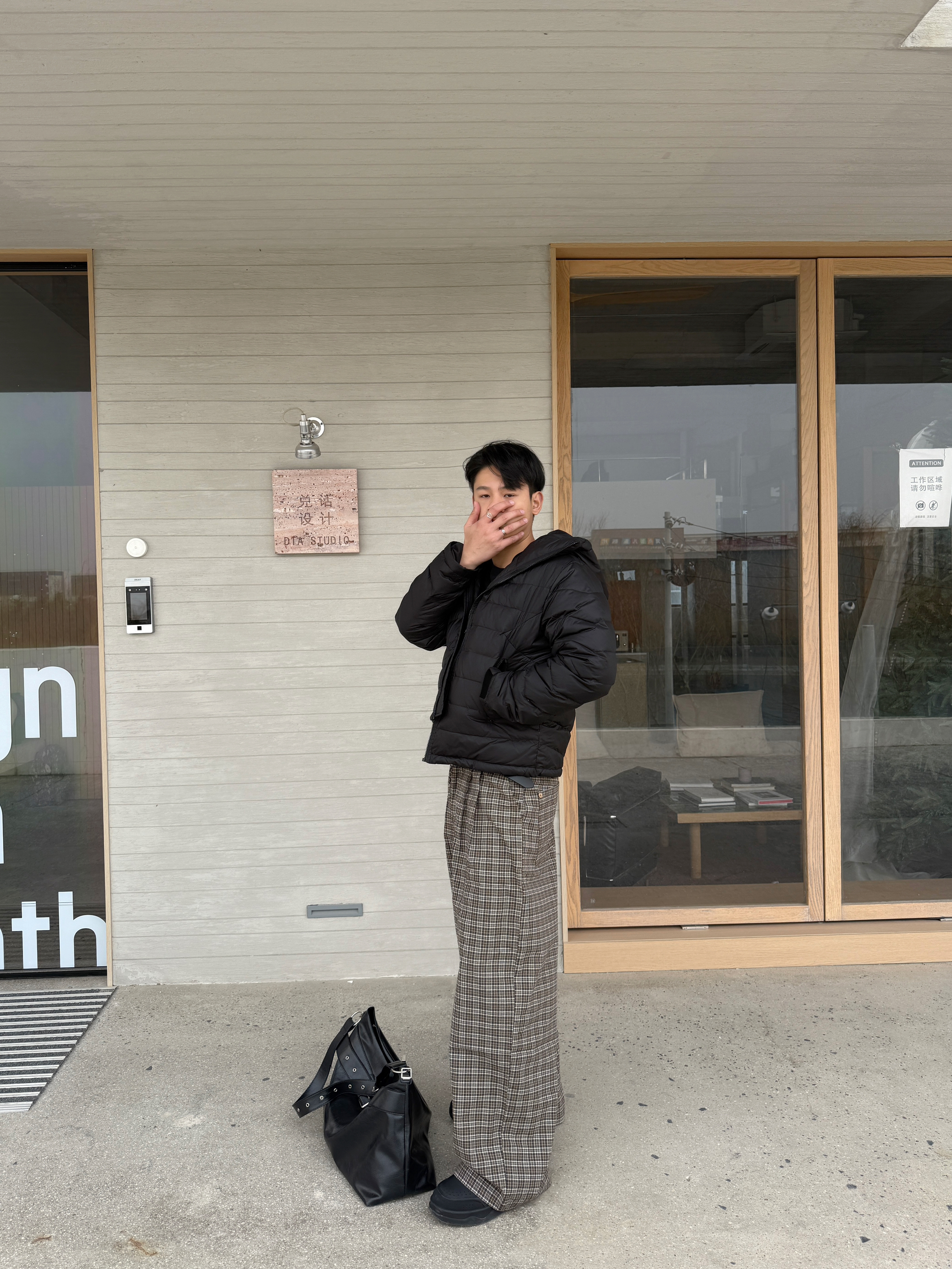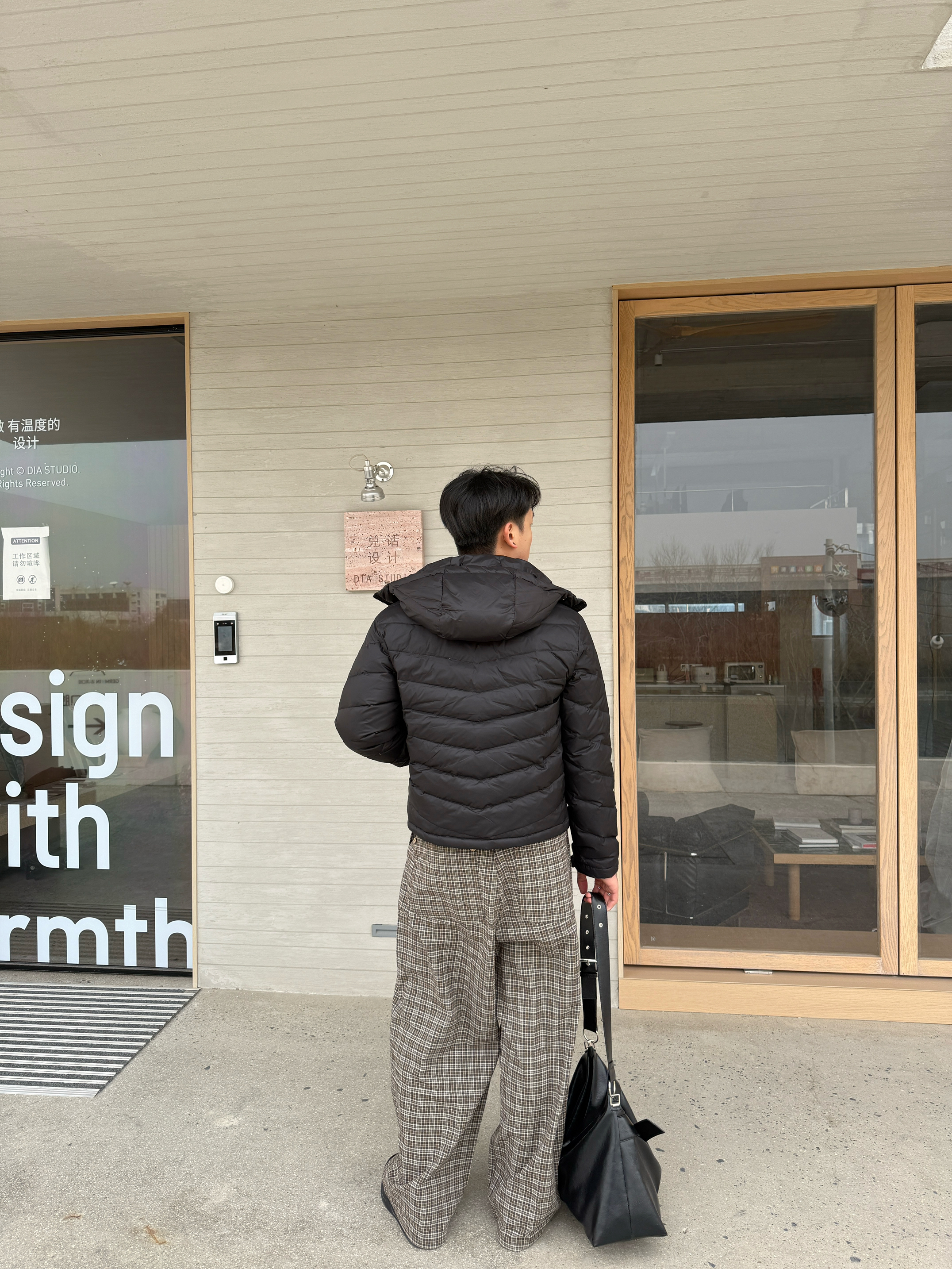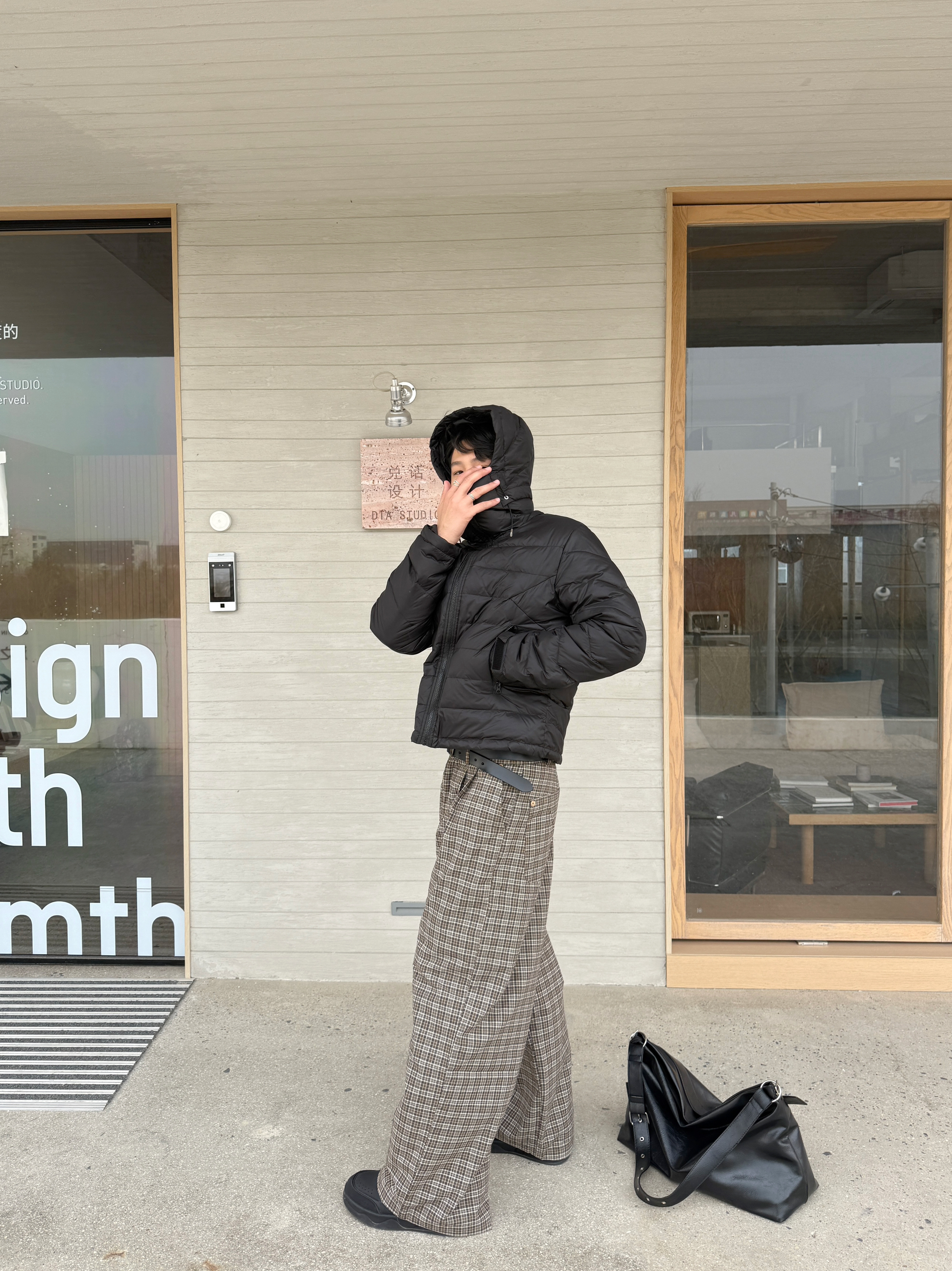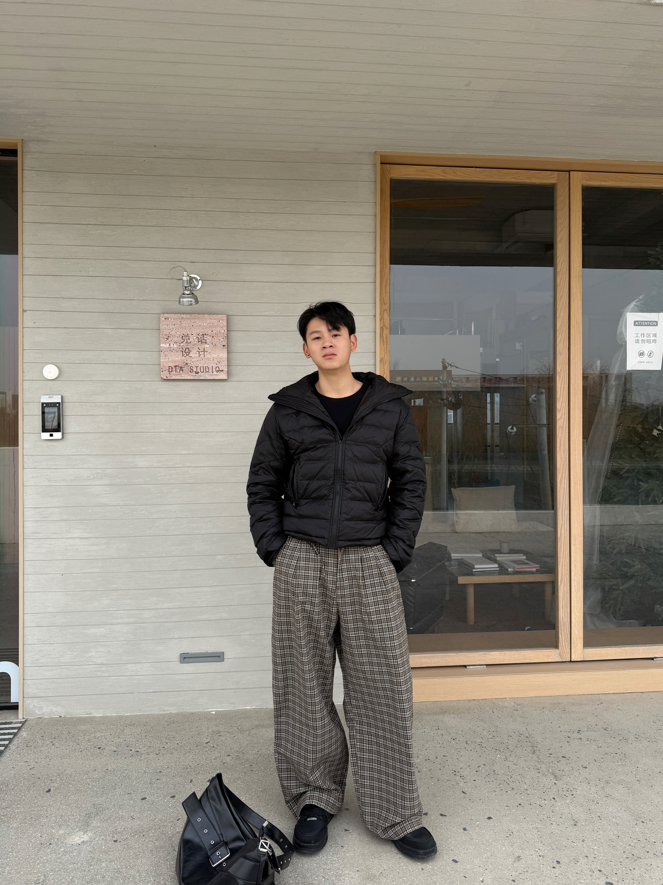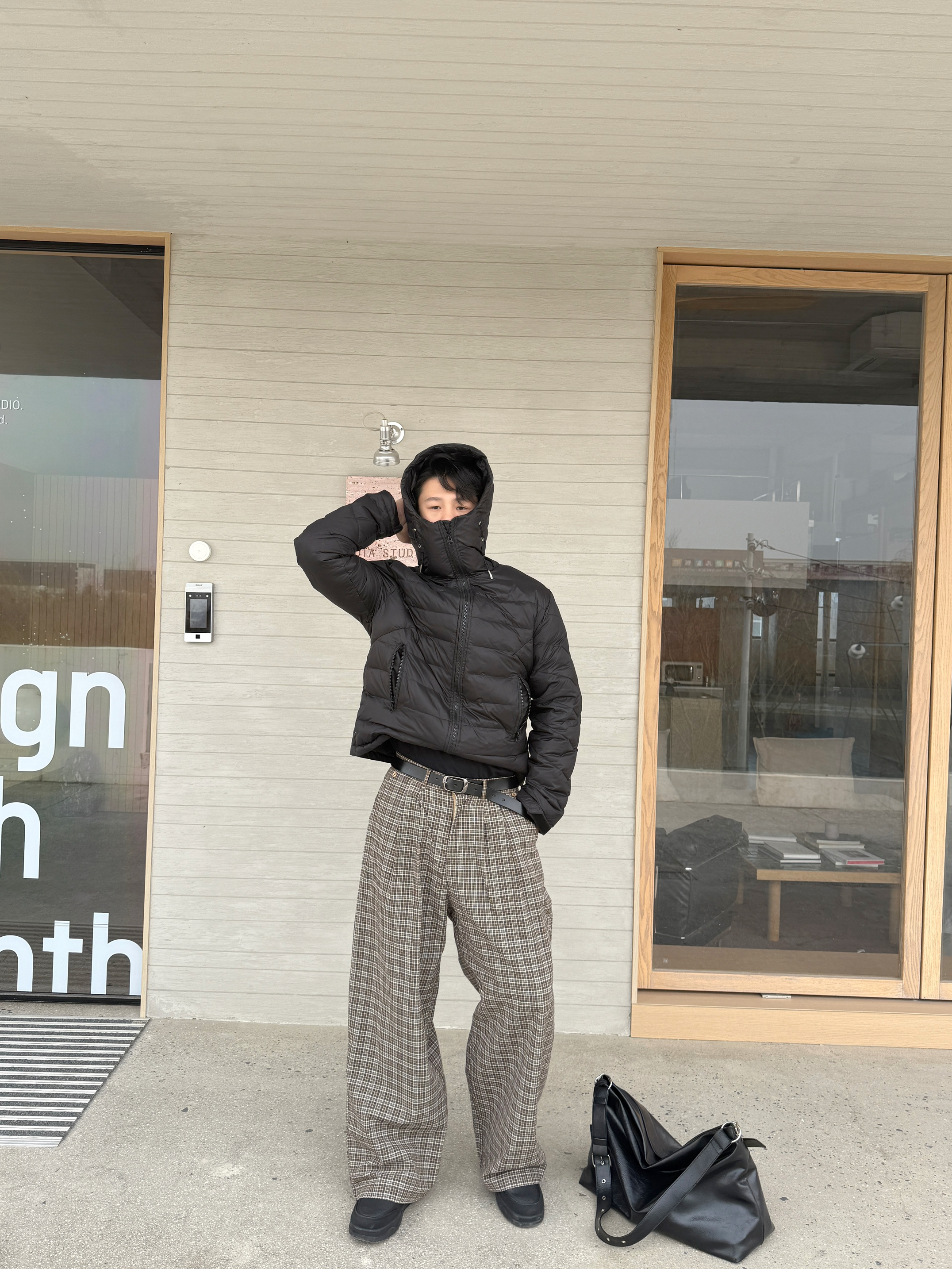 怎么到3月份又开始下雪了 不得不穿起来羽绒服了 上衣我选择一件短款连帽羽绒服 微修身短款长袖的设计我很喜欢 裤子我选择一件老钱风直筒格子裤 宽松直筒修身腿型,棕色上身确实好看 我180/140上身XL码~ 整体一身下来慵懒风多一点 今天的穿搭你get✅了吗?