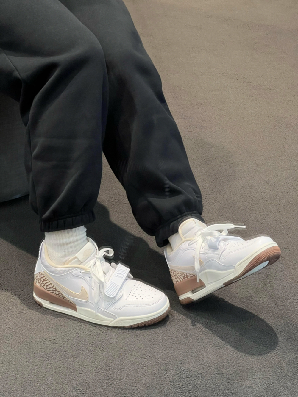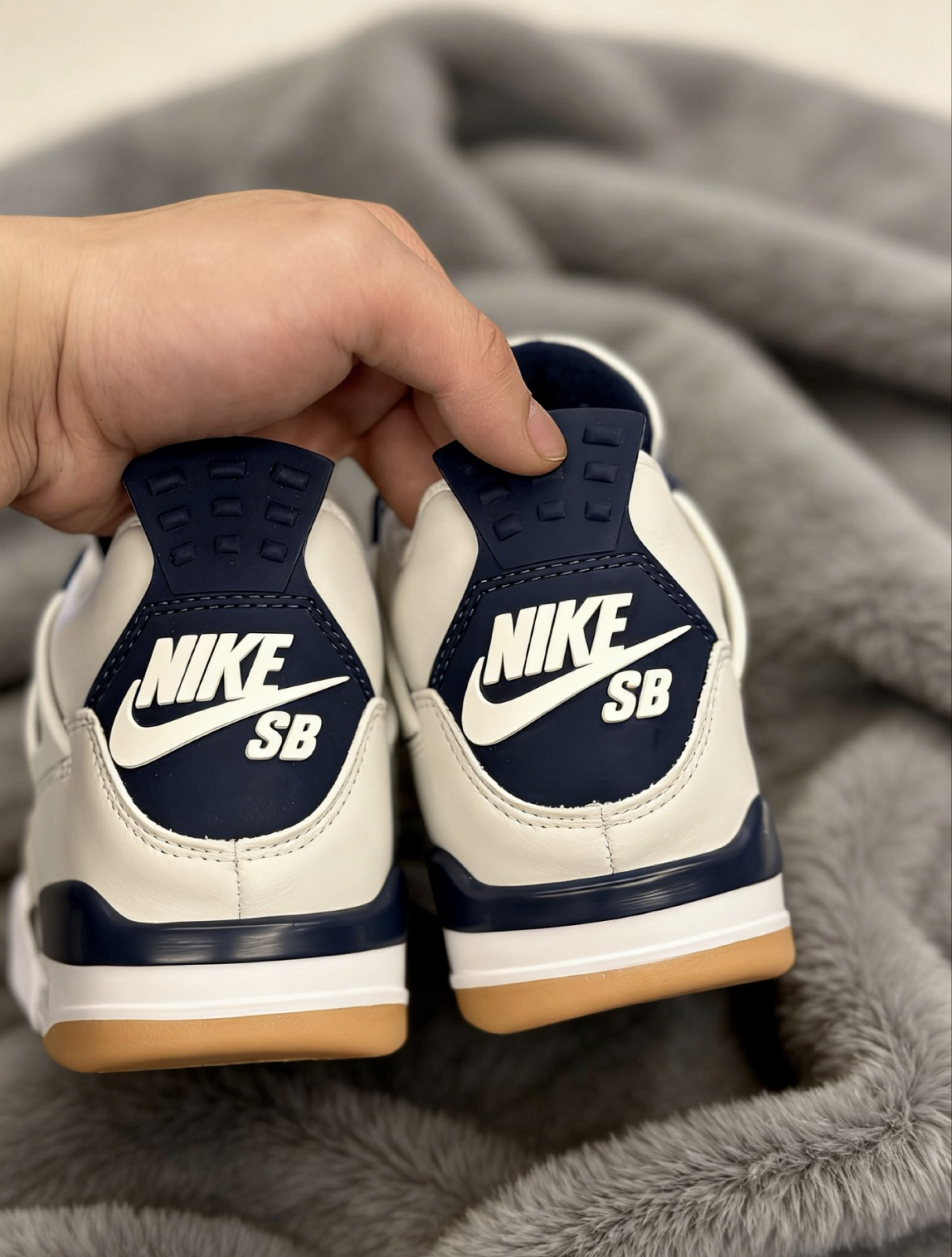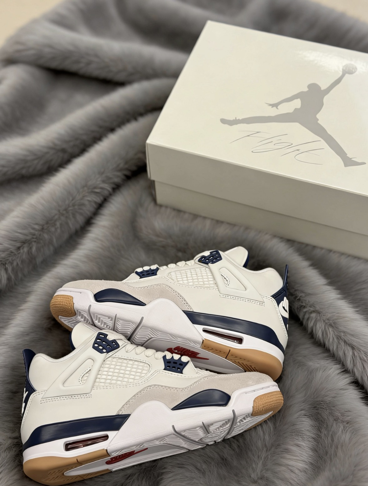 这双AJ4的配色是真的戳我,米白为主调搭配藏蓝色撞色,再加上生胶外底的点缀,复古感直接拉满,还不会显得浮夸。