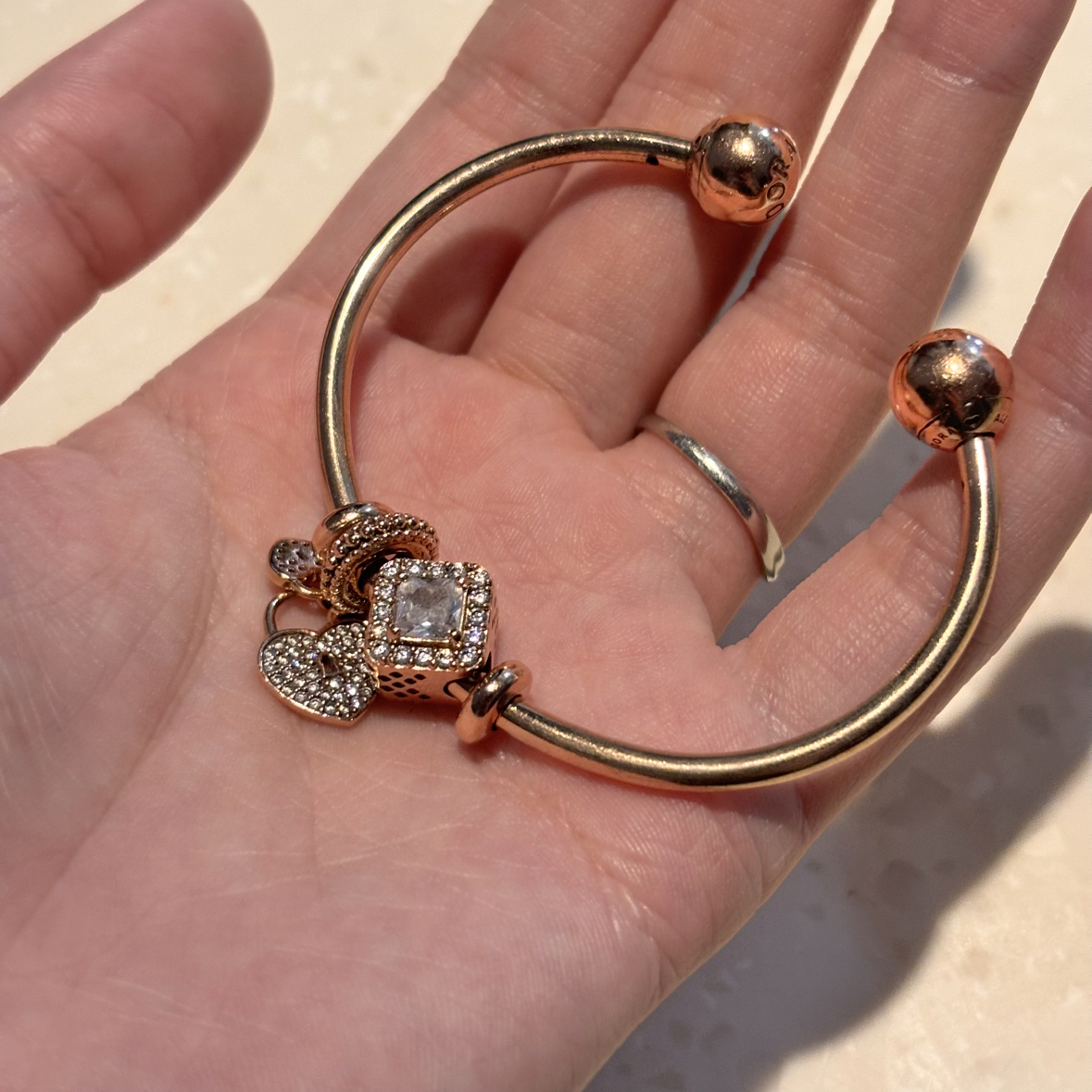 本篇笔记关联了PANDORA/潘多拉 密镶爱心硅胶固定夹 788684C01 玫瑰金色、PANDORA/潘多拉 几何光辉方形璀璨光环宝石串饰 796206CZ 玫瑰金786206CZ、PANDORA/潘多拉 开口式手镯 586477 玫瑰金等商品,为用户提供真实的使用体验和购买参考。