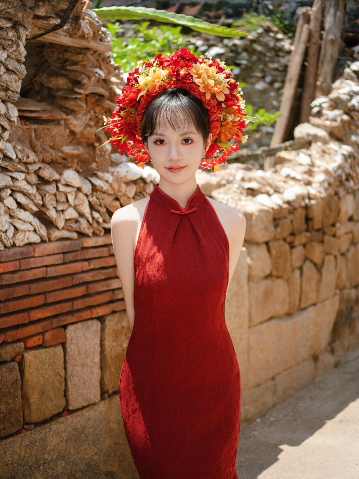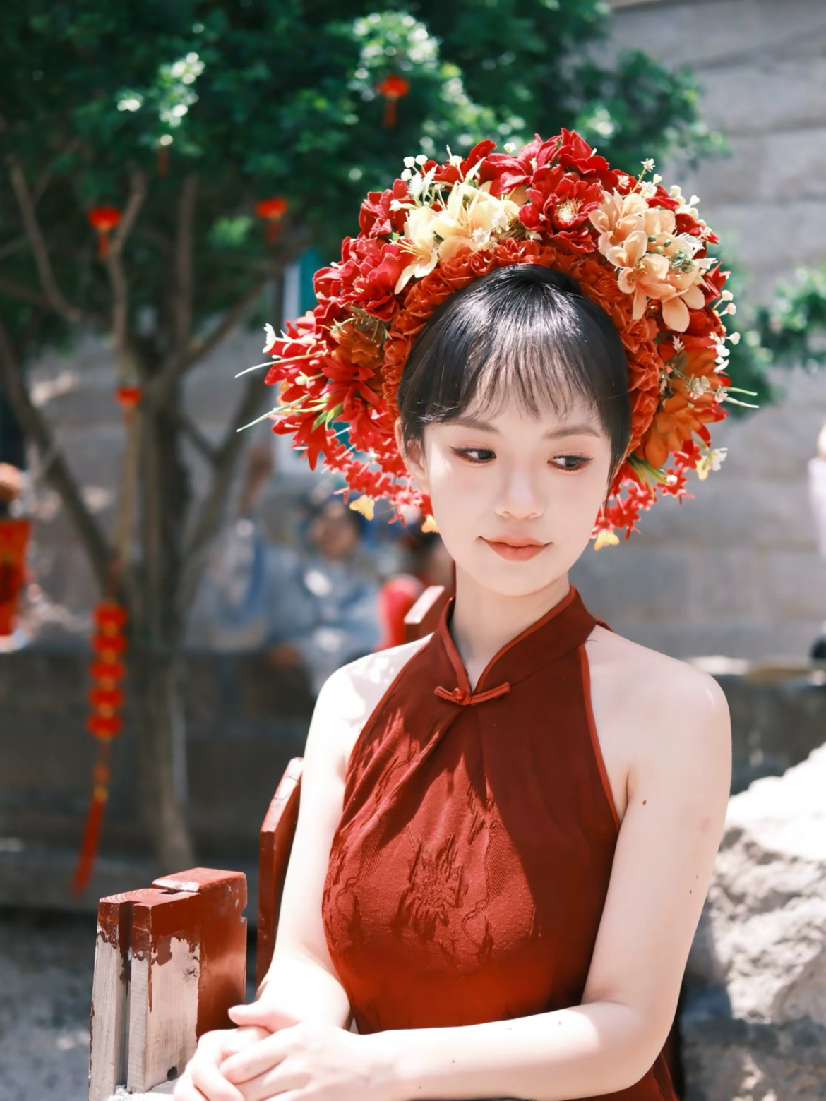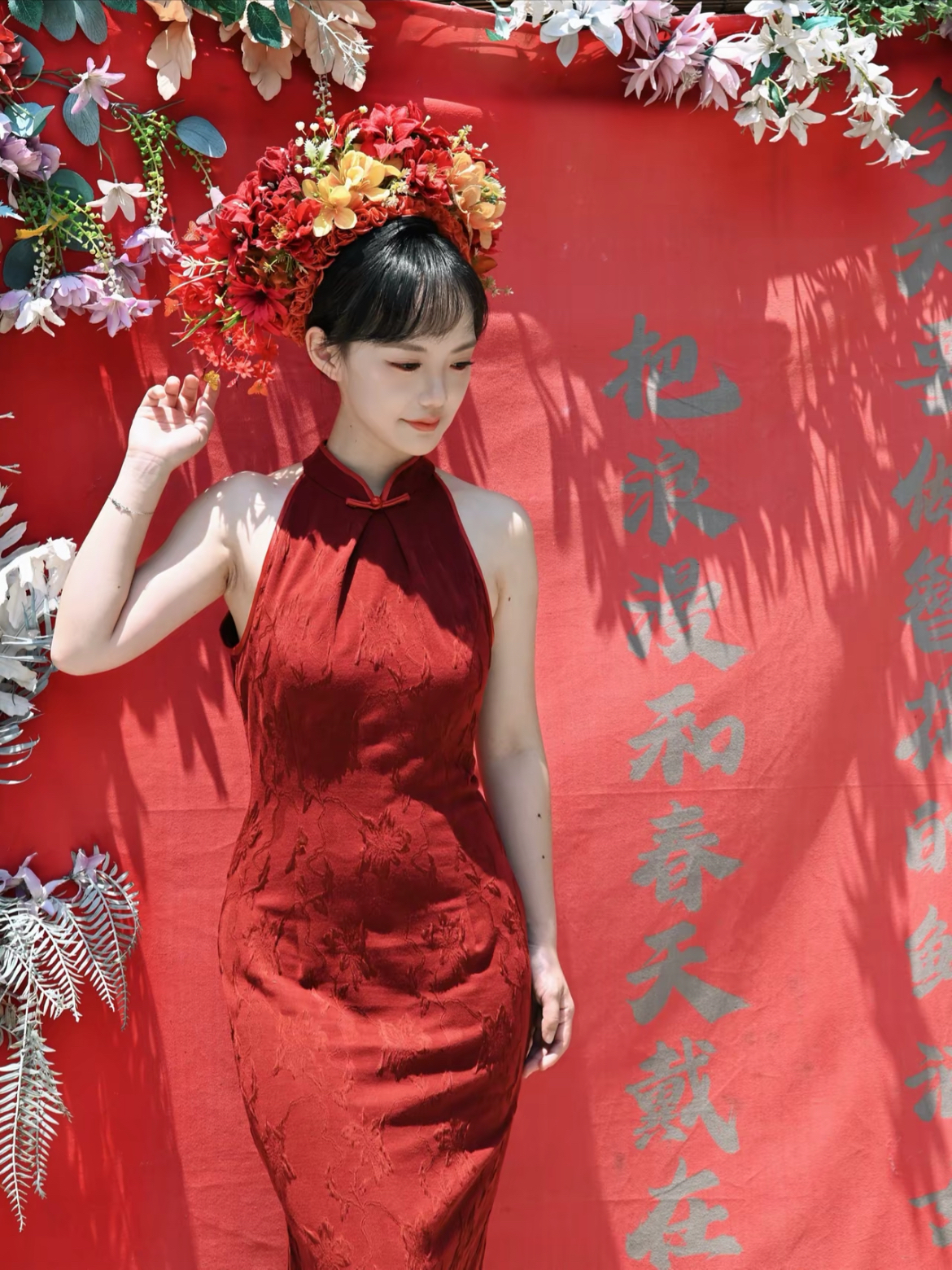 闺蜜相机按冒烟了#新年氛围感拍照 刚好遇到天气晴朗☀️美美拍出新年红 都来给我体验簪花!红红火火的开始新的一年 #新年红有我定格 富士和尼康直出 多得不说就这样凹一二三四五张照片