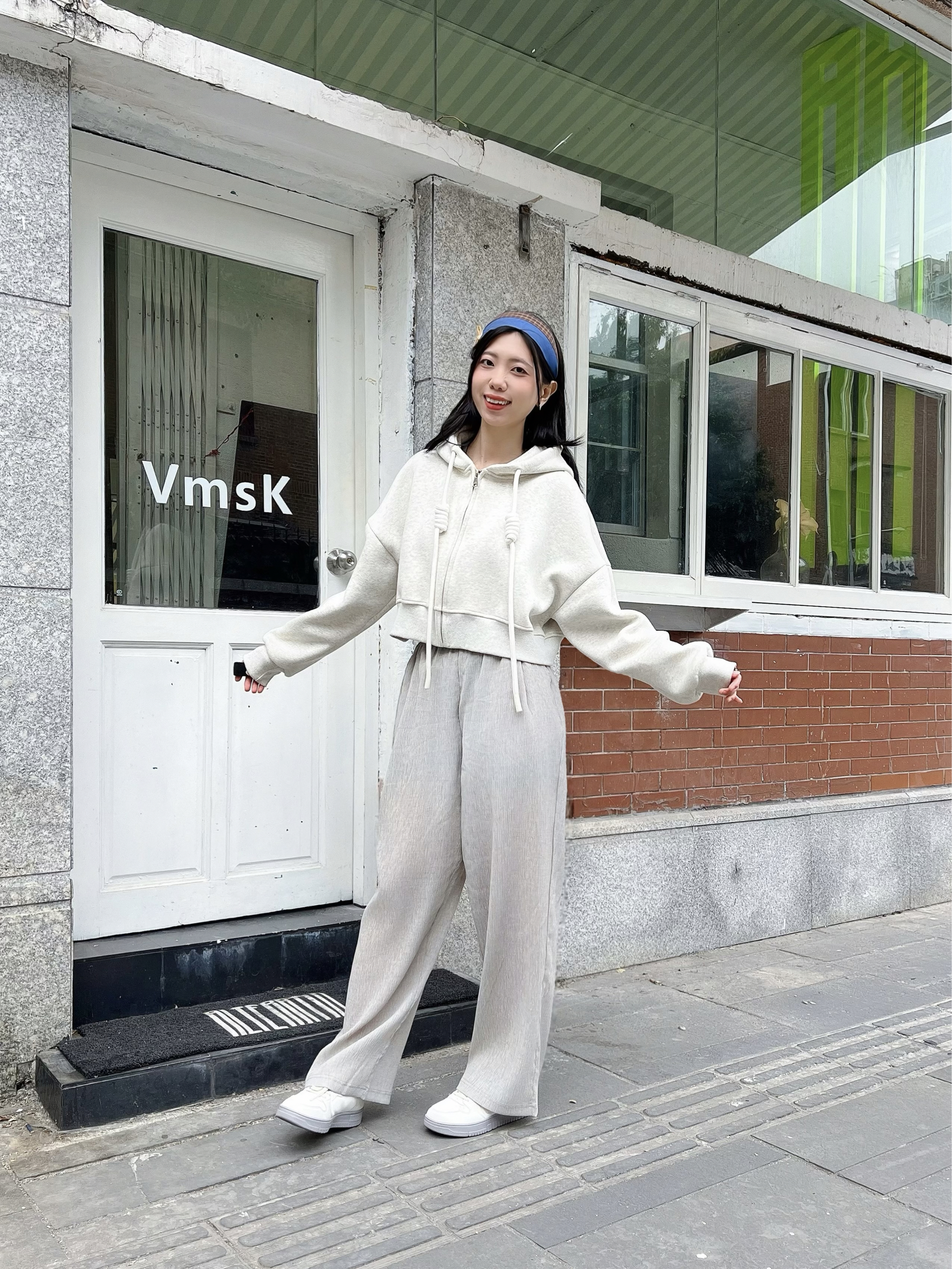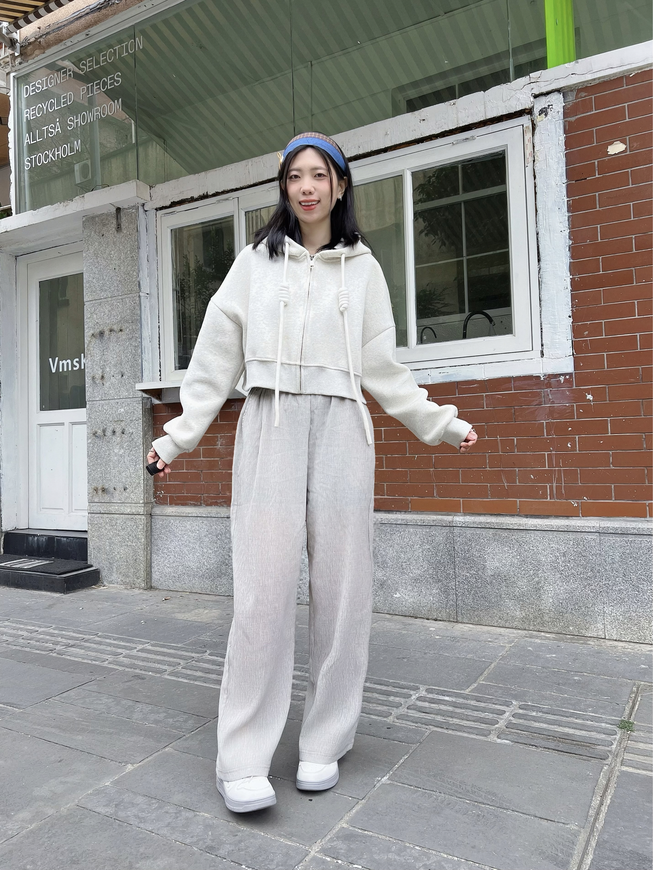 早八通勤省事穿搭🖊️卫衣*卫裤*板鞋,一身舒服自在 裤子选的还是宽松款,自带树皮纹理,都不用熨烫,很省事👍 不过灰色有点微透,但看在它面料舒服☁️版型不错的份上,可以原谅它💓