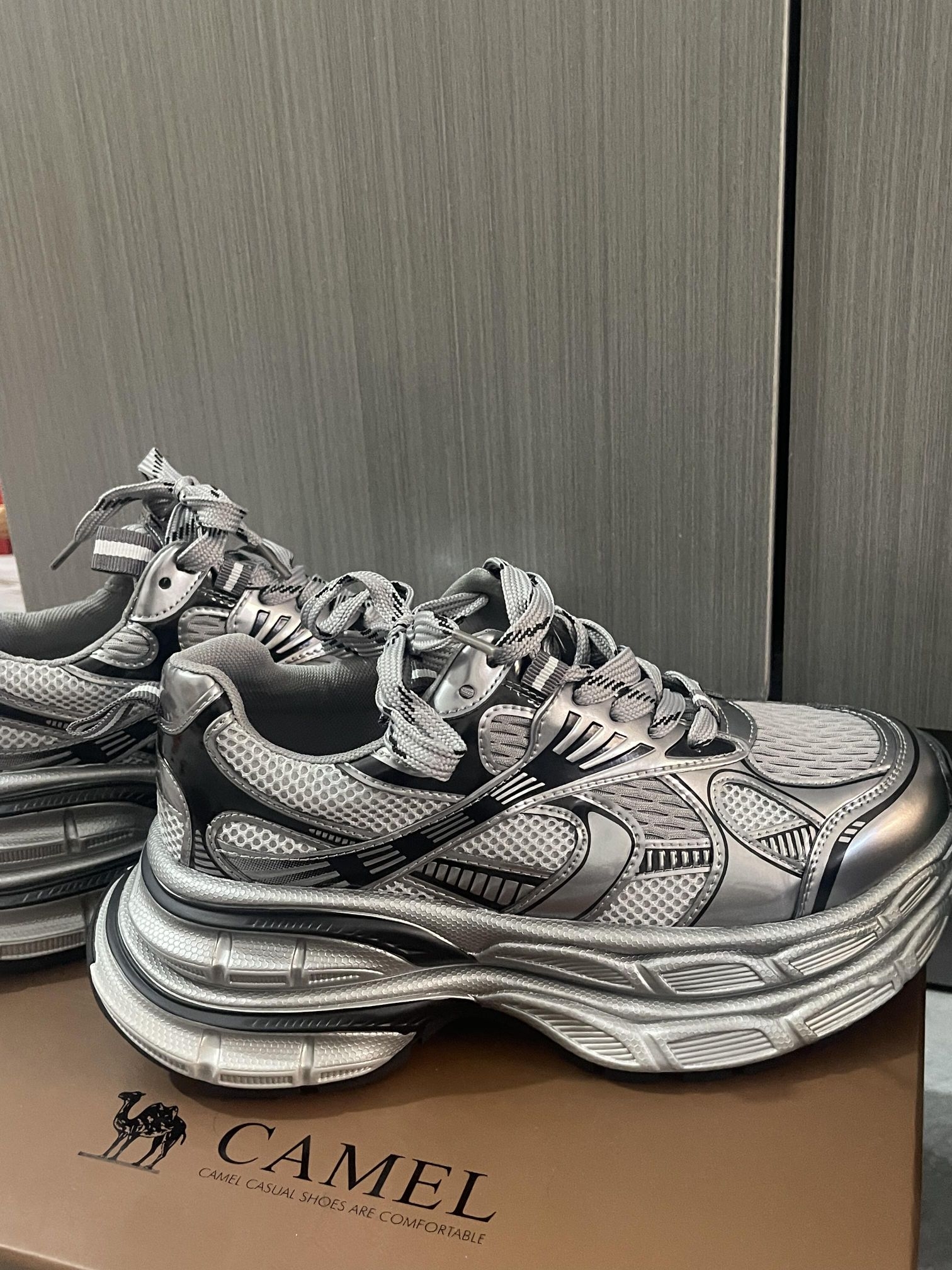 金属银+玫瑰金的撞色,像把未来感和复古感焊在脚上, 网眼+亮面材质的拼接,在光下blingbling的, 厚底设计自带增高效果,上脚秒变长腿, 不管是搭配辣妹裙、工装裤还是牛仔裤,都能轻松拿捏Y2K千禧风, 春天出街穿它,回头率直接爆表!
