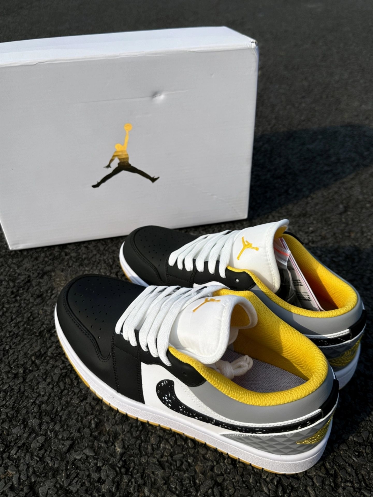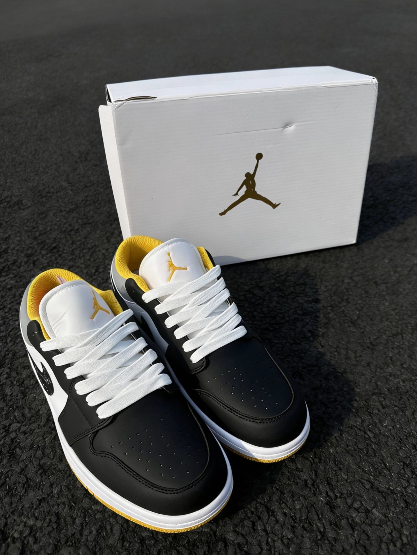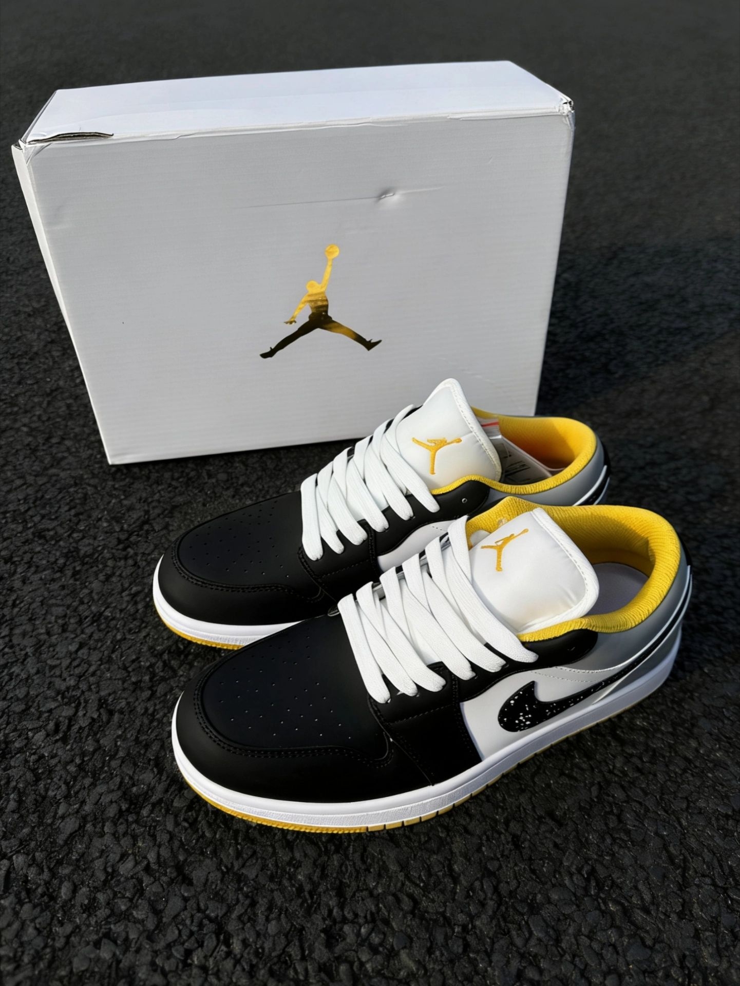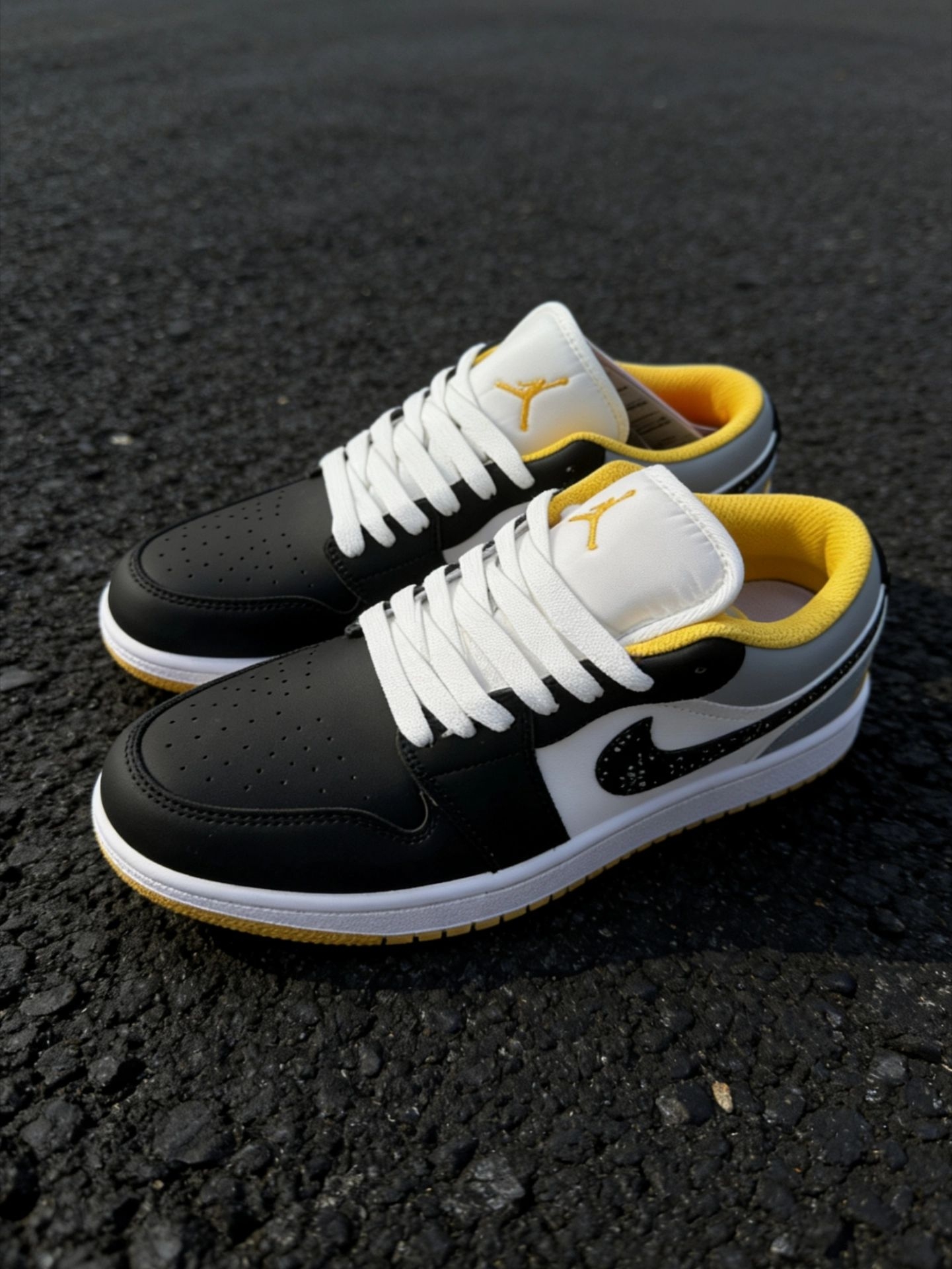 终于蹲到一双颜值和脚感双在线的。 黑灰底色搭配黄色点缀,比纯白耐脏,比全黑更有层次感,属于那种随手抓一件衣服就能出门的万能款。 Low帮版型对矮个子很友好,夏天穿也不会闷脚。鞋侧的泼墨Swoosh是点睛之笔,低调中带点小设计。 日常上学、通勤压马路完全够用,已经列入我今年的“出勤率之王”候选。
