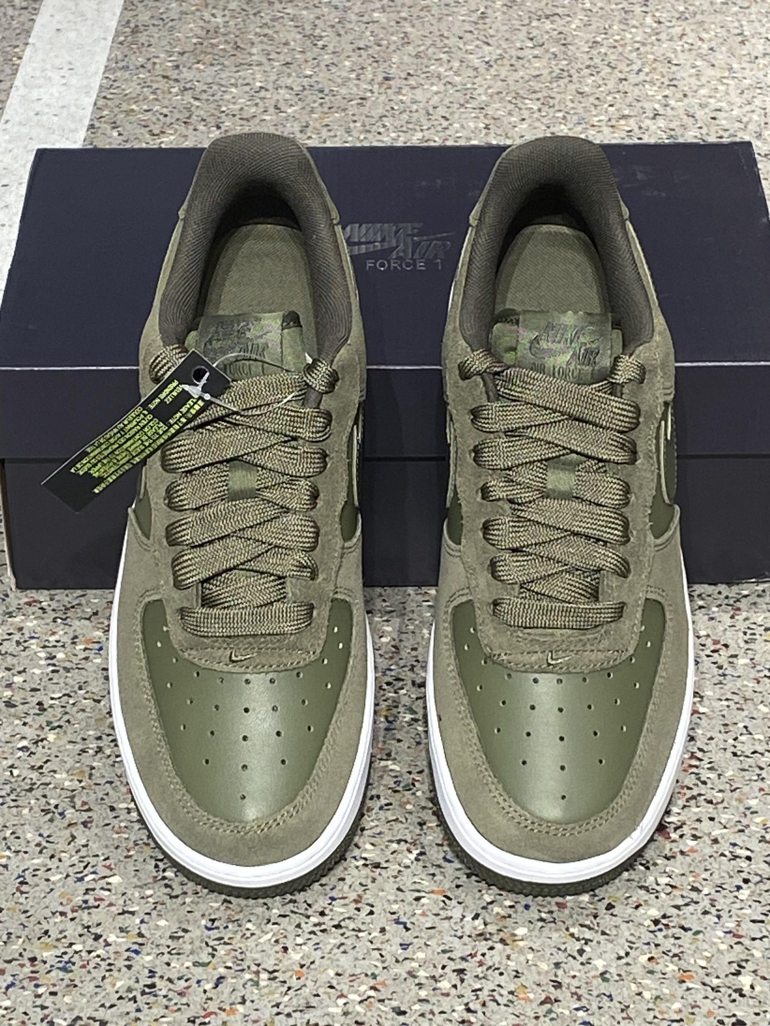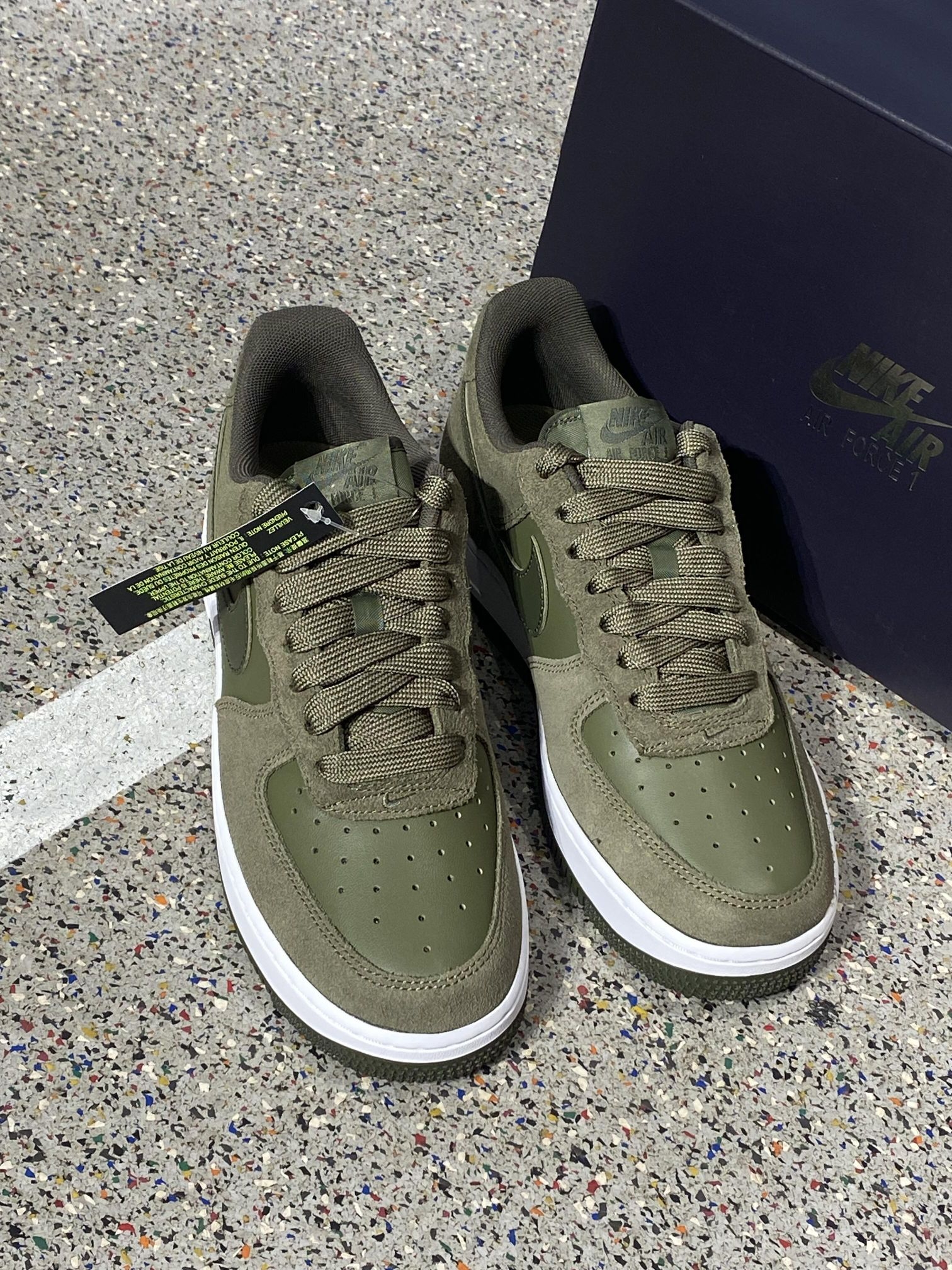 这款空军绿真的好耐穿啊! Nike Air Force 1 '07 LV8 通体橄榄绿,采用头层牛皮+麂皮拼接材质,质感高级且耐磨 鞋侧Swoosh标识、鞋跟“AF-1”字样,延续经典空军一号轮廓;鞋舌附带信息标签,增加潮流属性 升级为全掌二代Air气垫,相比普通AF-1更轻软(单只鞋减重约60-80克),兼顾缓震与日常舒适 适配秋冬季节穿搭,可搭配工装、休闲装,是街头潮流风格的热...