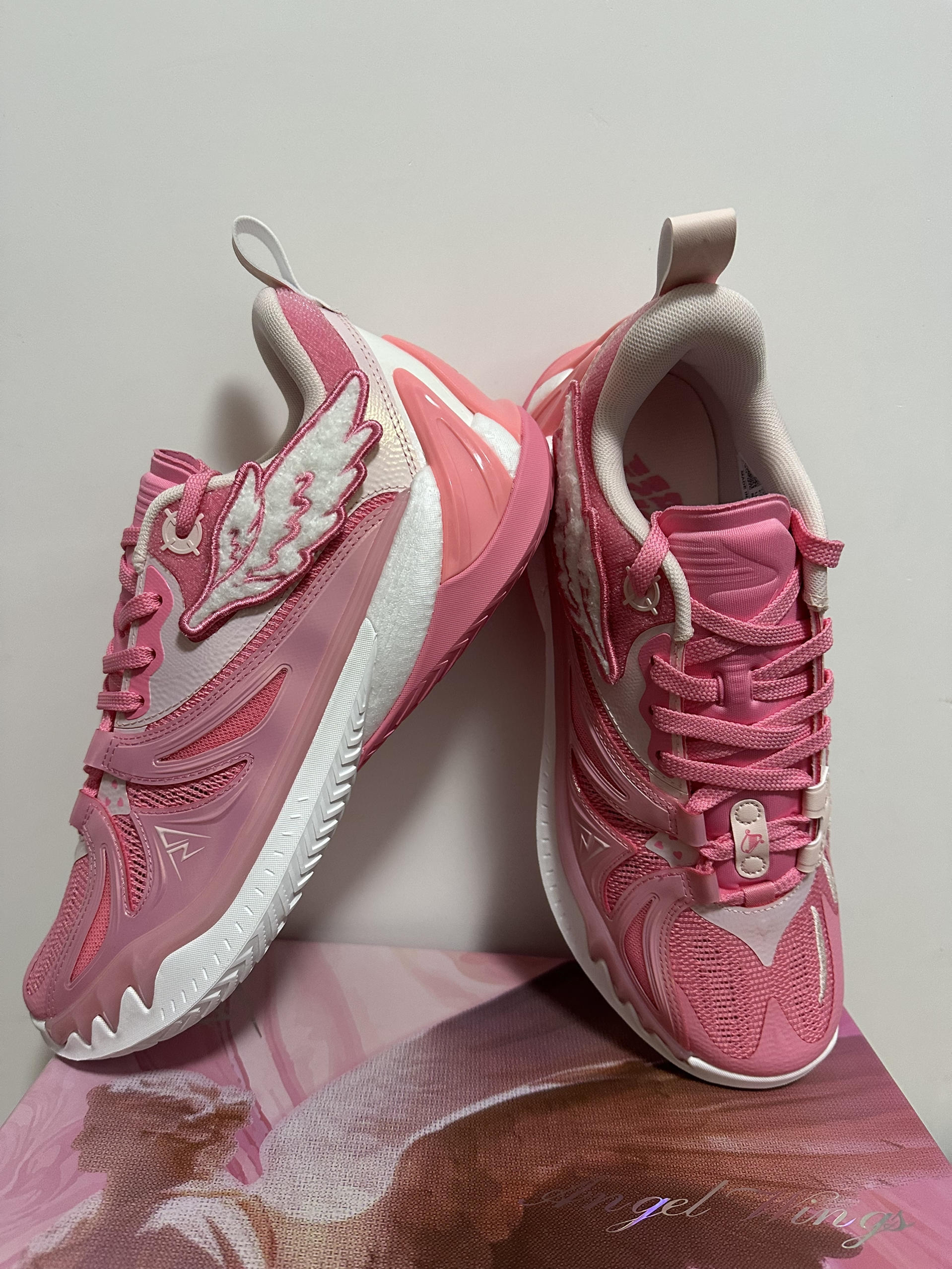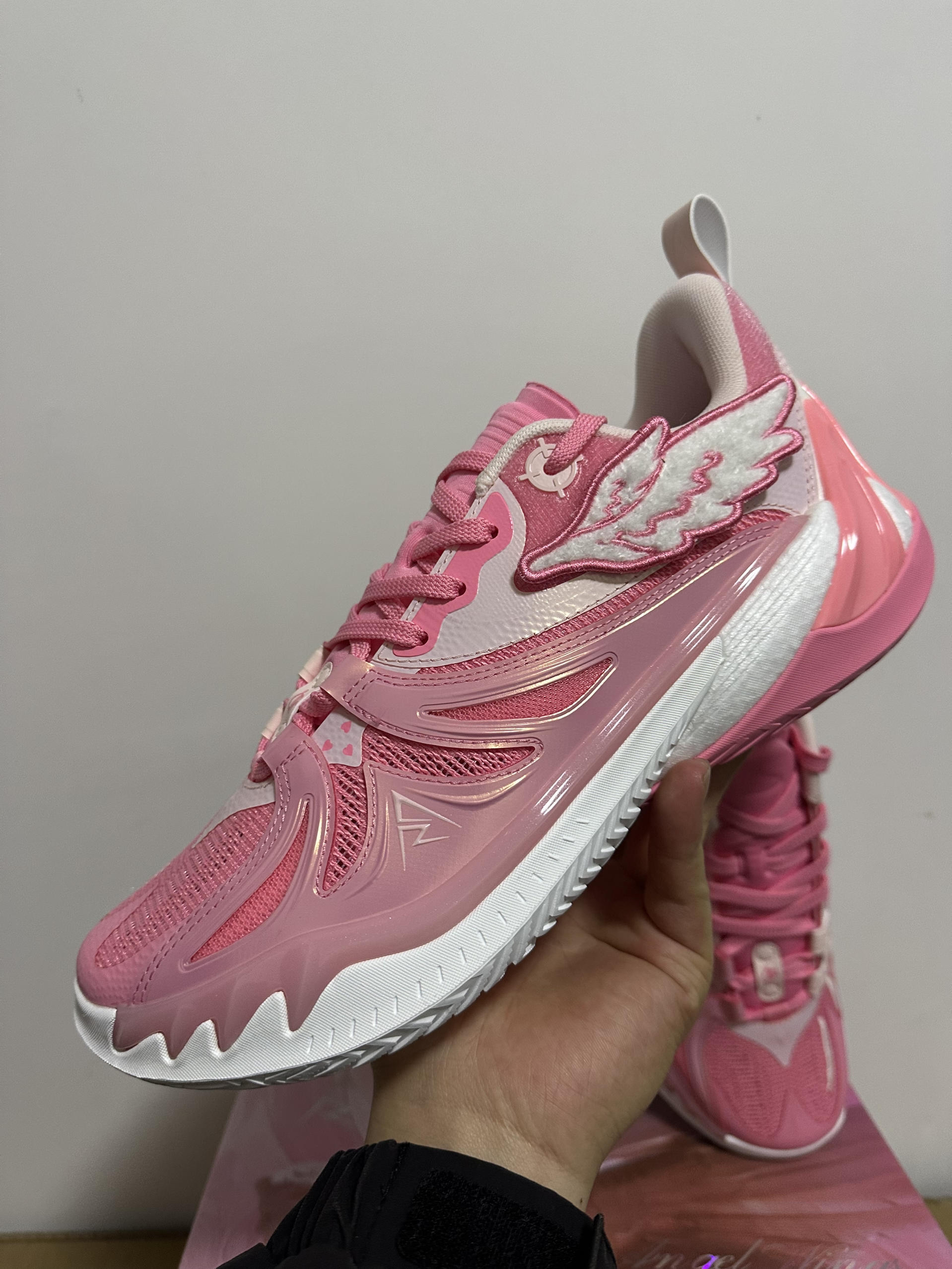 作为每天往返教室和球场的学生党,我总在找一双既能搭校服又能炸场的球鞋。准者里弗斯3代球鞋这双粉白配色,直接把我的“球场心动信号”拉满了。 上脚的瞬间,鞋舌上的爱心刺绣就戳中了我。浅粉的鞋带穿过鞋孔,像系了一串樱花糖,而鞋侧的翅膀魔术贴更是点睛之笔——白绒绒的羽毛在跑动时轻轻晃动,连运球变向都变得温柔起来。最绝的是鞋身的半透明TPU,在阳光下折射出粉紫的光晕,和校服的白衬衫搭在一起,连路过的学妹都忍...