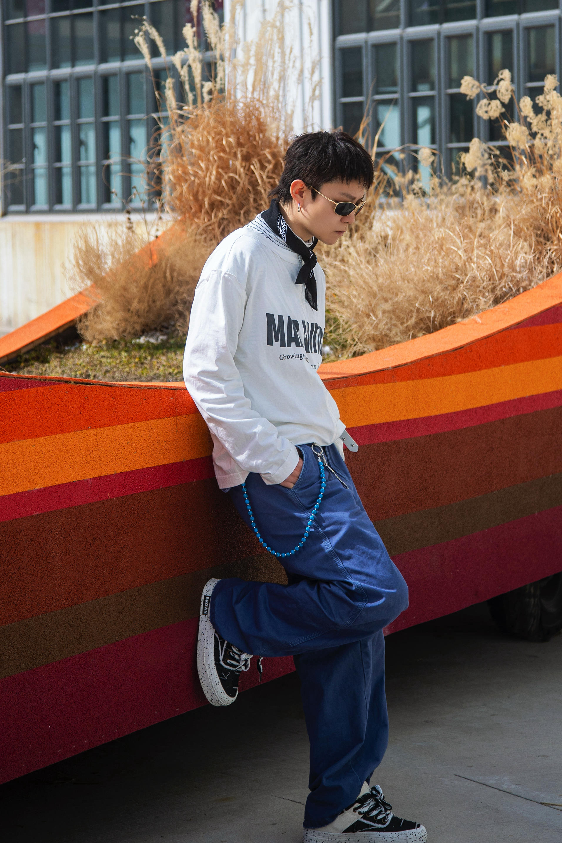 美式复古经典怎么可以没有伐木裤 分享一套春日美式街头穿搭 穿搭指南: 上身一件条纹t打个底 外搭一件白色开衫T恤 字母印花有美式复古味儿 穿一条法工蓝伐木裤 搭配白色腰带美式街头感十足 上脚line friends休闲板鞋 黑白拼接 基础色怎样都白搭 双鞋袋设计更显个性 系个腰果花方巾增加复古感 蓝色裤链点缀细节 早春这样穿 不要太时髦