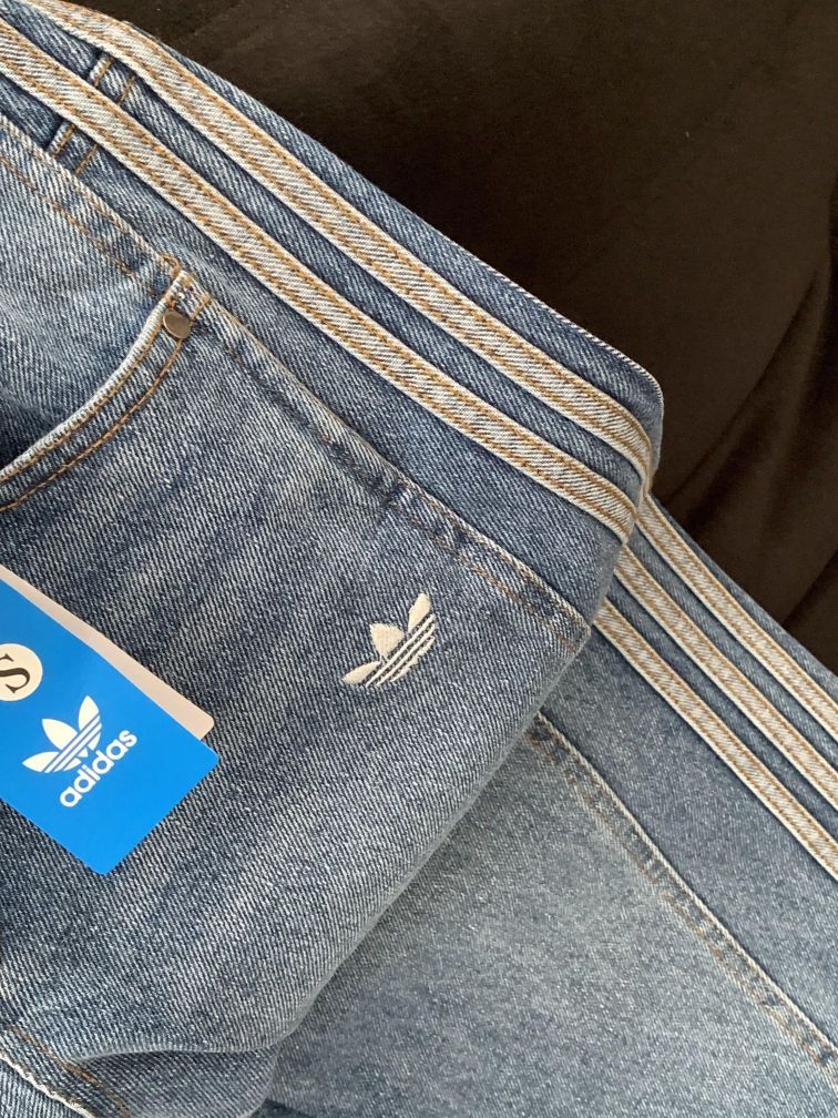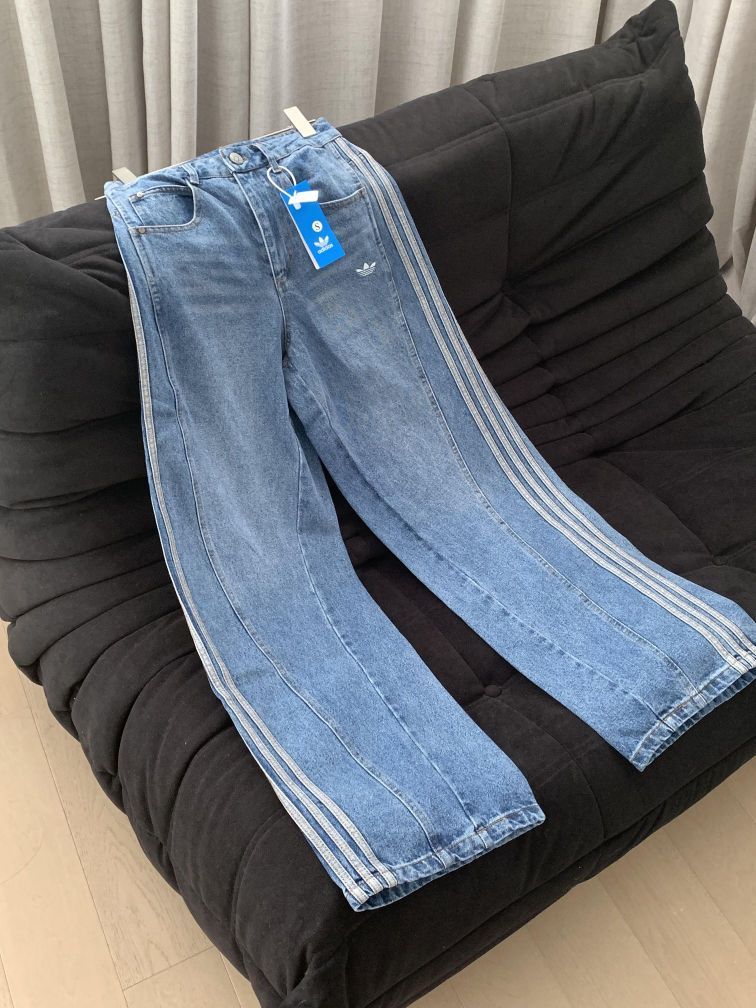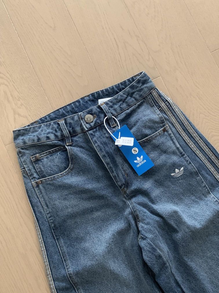 ✨ 版型绝了 - 高腰阔腿弯刀设计,完美修饰腿型,胯宽、腿粗、腿不直都能藏住,秒变“筷子腿” - 软牛仔面料,垂坠感超棒,穿久了也不会发硬,套秋裤也完全没问题 - 万针刺绣logo和三条杠,细节满满,完全没有廉价感 💡 穿搭思路 - 美式辣妹:短款卫衣/吊带+这条牛仔裤+厚底鞋,露出腰线,比例直接二八分 - 复古街头:同色系三叶草外套+牛仔裤+德训鞋,整套look协调又高级...