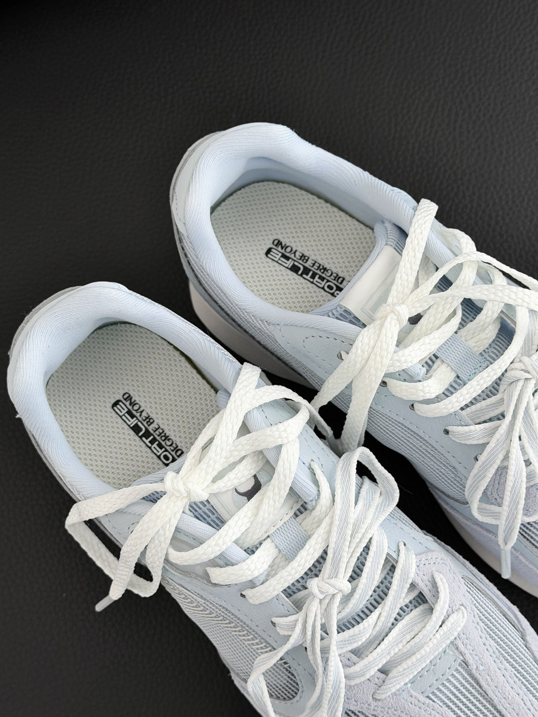 这双361°酥饼3.0 SE 清晖蓝配色 一眼就知道这个春天必须拥有它! 同色系搭配,温柔又有层次感 双鞋带的设计,一鞋多穿时尚百搭 鞋面透气不闷脚,春夏穿超舒服~ 轻盈舒适的jiao感,久穿不累脚 日常通勤、周末逛街都很合适!