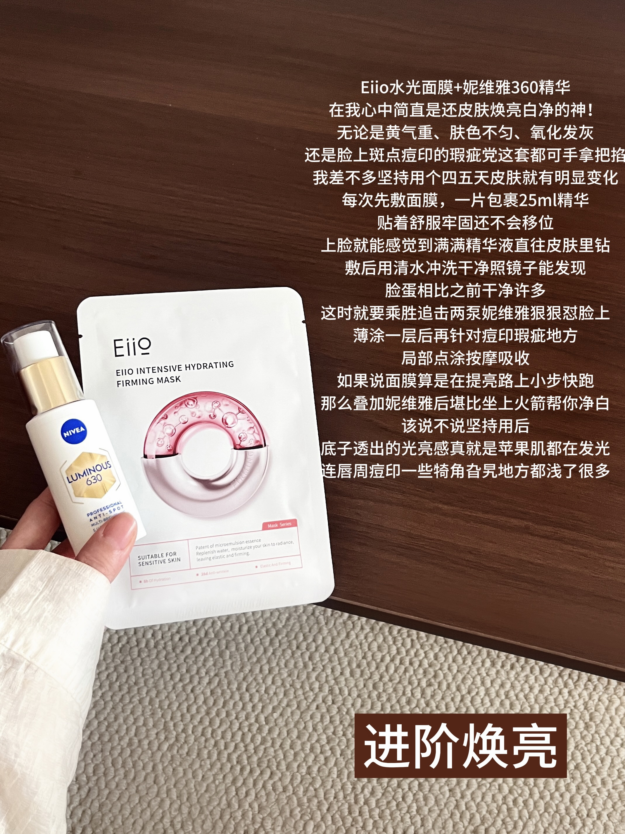 先自报家门本人算是资深熬夜党,长期的皮肤蜡黄嘴角暗沉早已习以为常,更别提过年那段时间几乎快把夜熬穿,脸蛋那叫一个惨不忍睹,但隔三岔五我就来上eiio水光面膜那么一贴,小脸就能重回光彩照人 可以说甭管是熬夜暗沉还是皮肤松垮,敷完包还我脸蛋白白净净水水亮亮的状态!其实本人之前一直觉得面膜智商税,直到用到这个才和那些爱用面膜的姐妹共情,小东西真的巨巨巨好用,一片裹满的精华液跟不要钱一样满满当当,敷在...