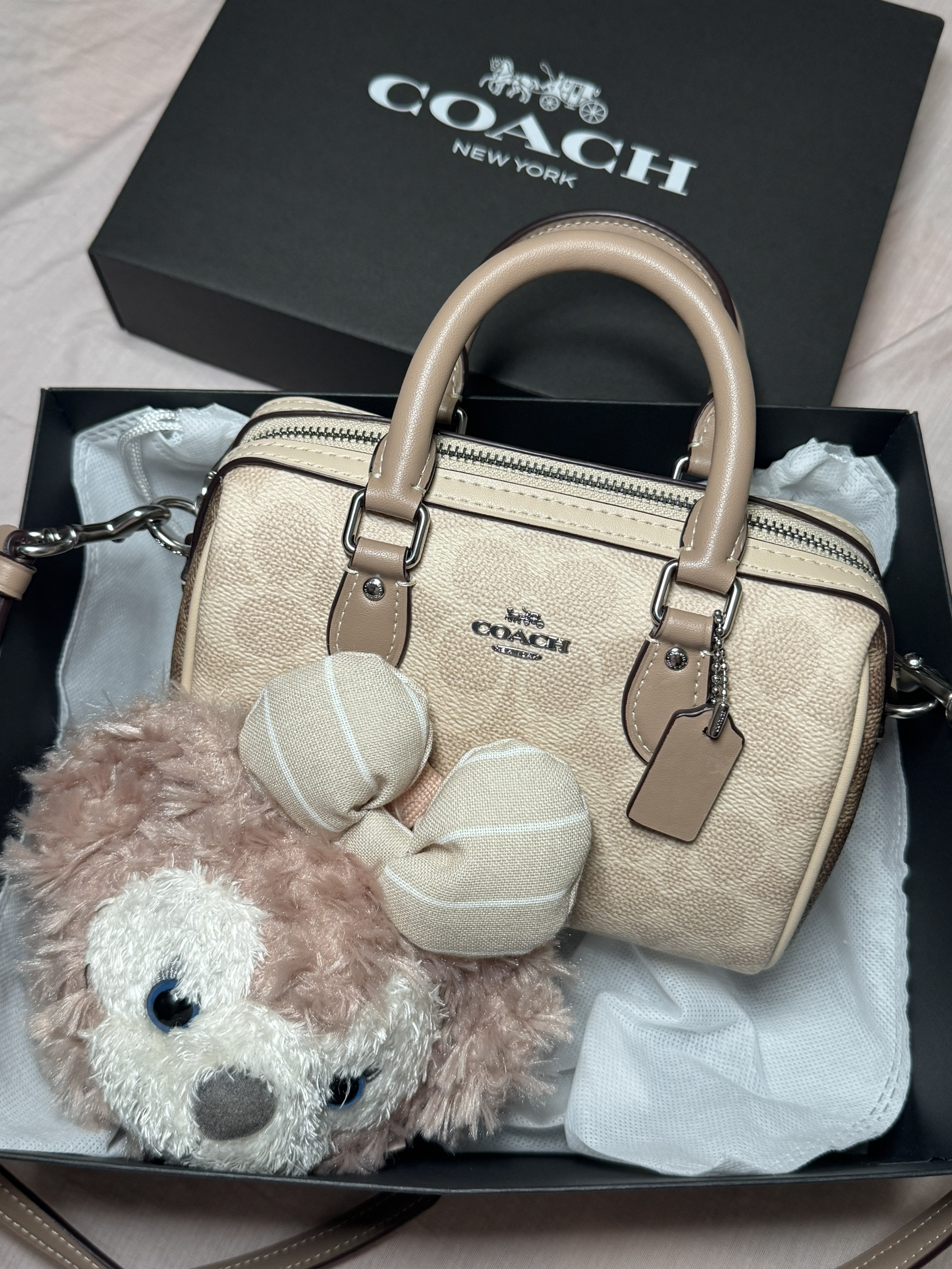 本篇笔记关联了Coach Rowan 大号 品牌徽标拉链开合皮革单肩斜挎波士顿包手提包 豆沙色等商品,为用户提供真实的使用体验和购买参考。