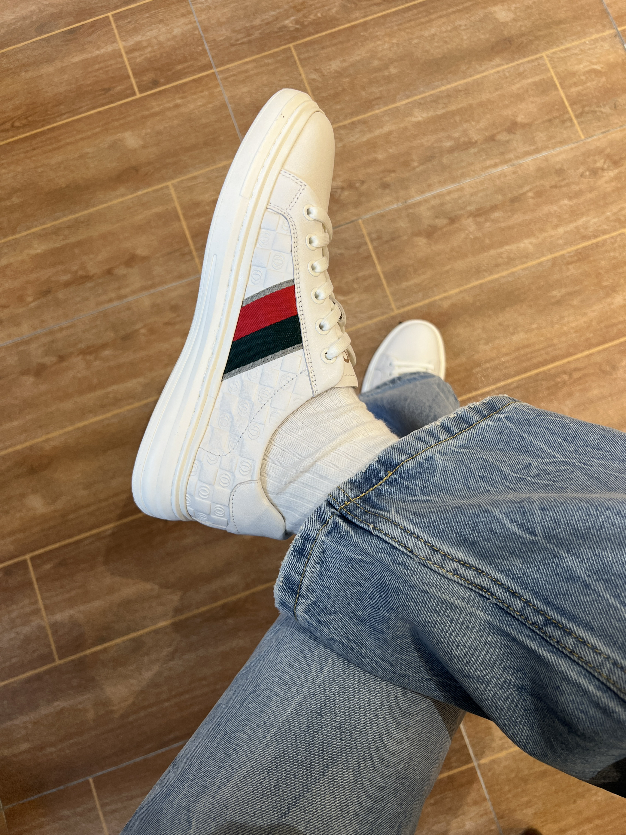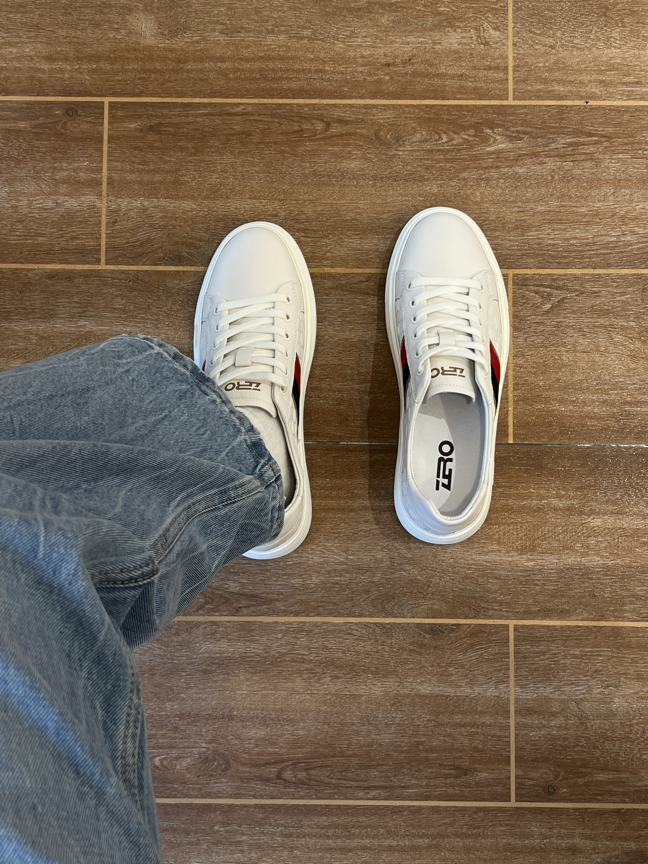 最近入了双合心意的板鞋!就是 ZRO 零度 鞋子整体是以白色为主,鞋身处点缀红绿帆布装饰,鞋面是头层牛皮材质,而且还有浮雕压纹,是充满那种老钱风的细节~ 真皮质感感觉就是不一样! 穿上脚感好舒服哦~ 鞋自重好轻,走路一点也不会累🦶 就是有点不耐脏,哈哈哈哈 但小白鞋都这样,好在它比较好打理 脏的地方用湿巾擦一下就干净了 日常也挺好搭的 牛仔裤 休闲裤随便配!