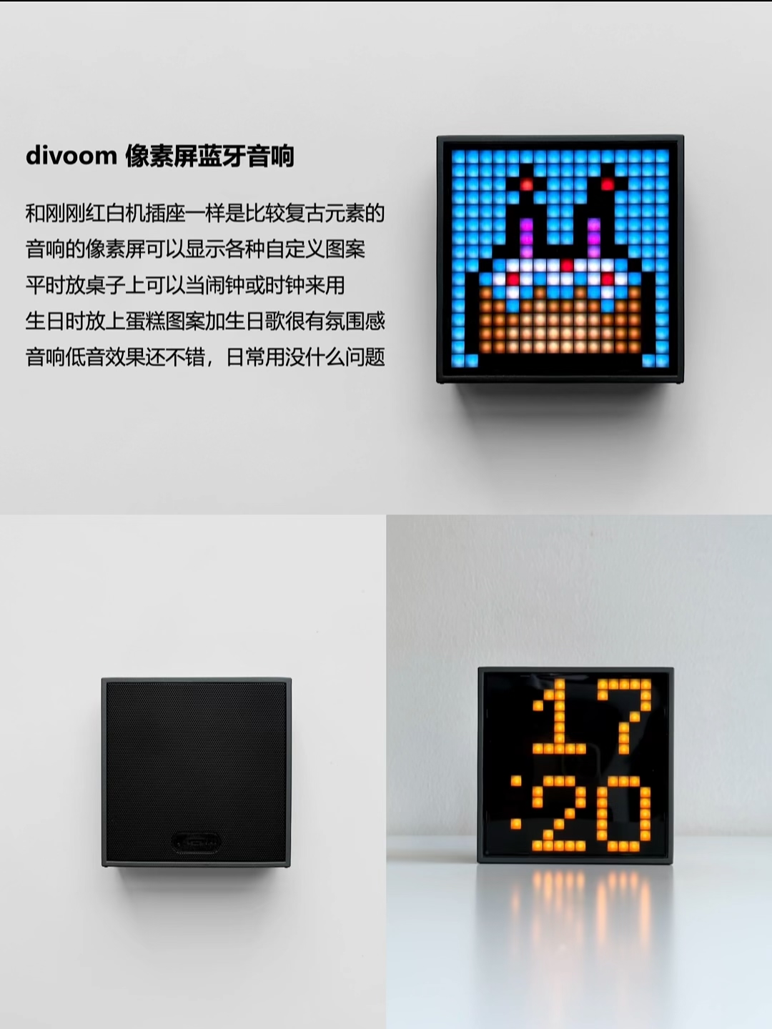 本篇笔记关联了Divoom/点音 PIXOO 室内 蓝牙 音箱 装饰摆件 pixoo 16x16、Fansdreams/脑洞范 10000mAh 22.5W 自带线 移动电源 智能控温 小巧便携 灰色眼睛、syitren/赛塔林 R400 CD播放器 三档调节 蓝牙连接 白色等商品,为用户提供真实的使用体验和购买参考。