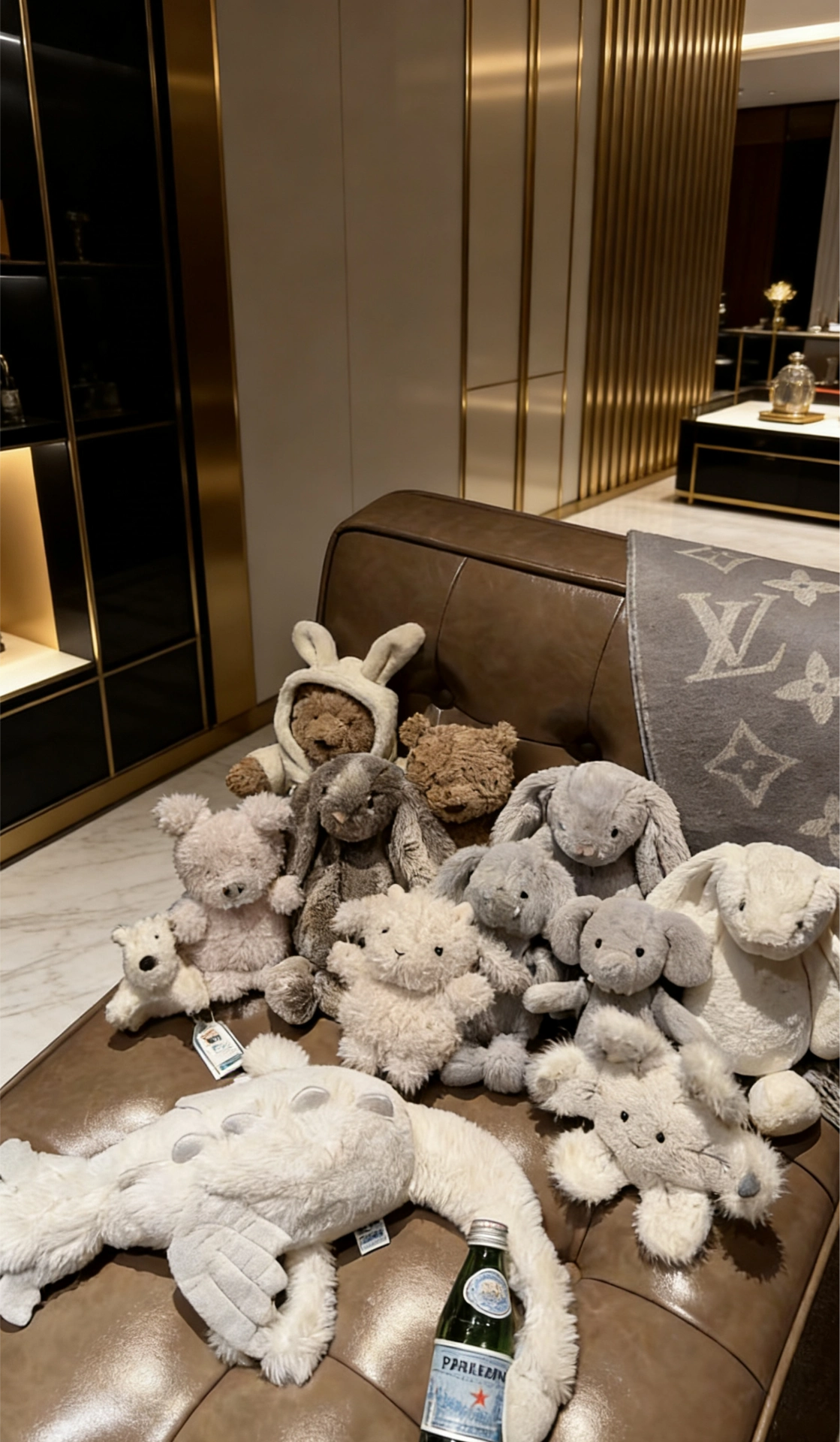 谁懂啊!2026马年的第一份顶级治愈,被这两波Jellycat狠狠拿捏了!作为常年混迹潮玩圈的资深玩家,这两组开箱直接刷新了我对“可爱天花板”的认知,不管是自留摆拍,还是当作显贵又不撞款的新年礼物,都堪称满分答案,得物家人们速码! 先夸爆第一组「轻奢家居款」!暖棕色皮质沙发搭配鎏金线条背景,高级感直接拉满,而散落的一众Jellycat就像闯进奢华城堡的小精灵,反差萌瞬间戳中少女心。浅灰、奶白、焦...
