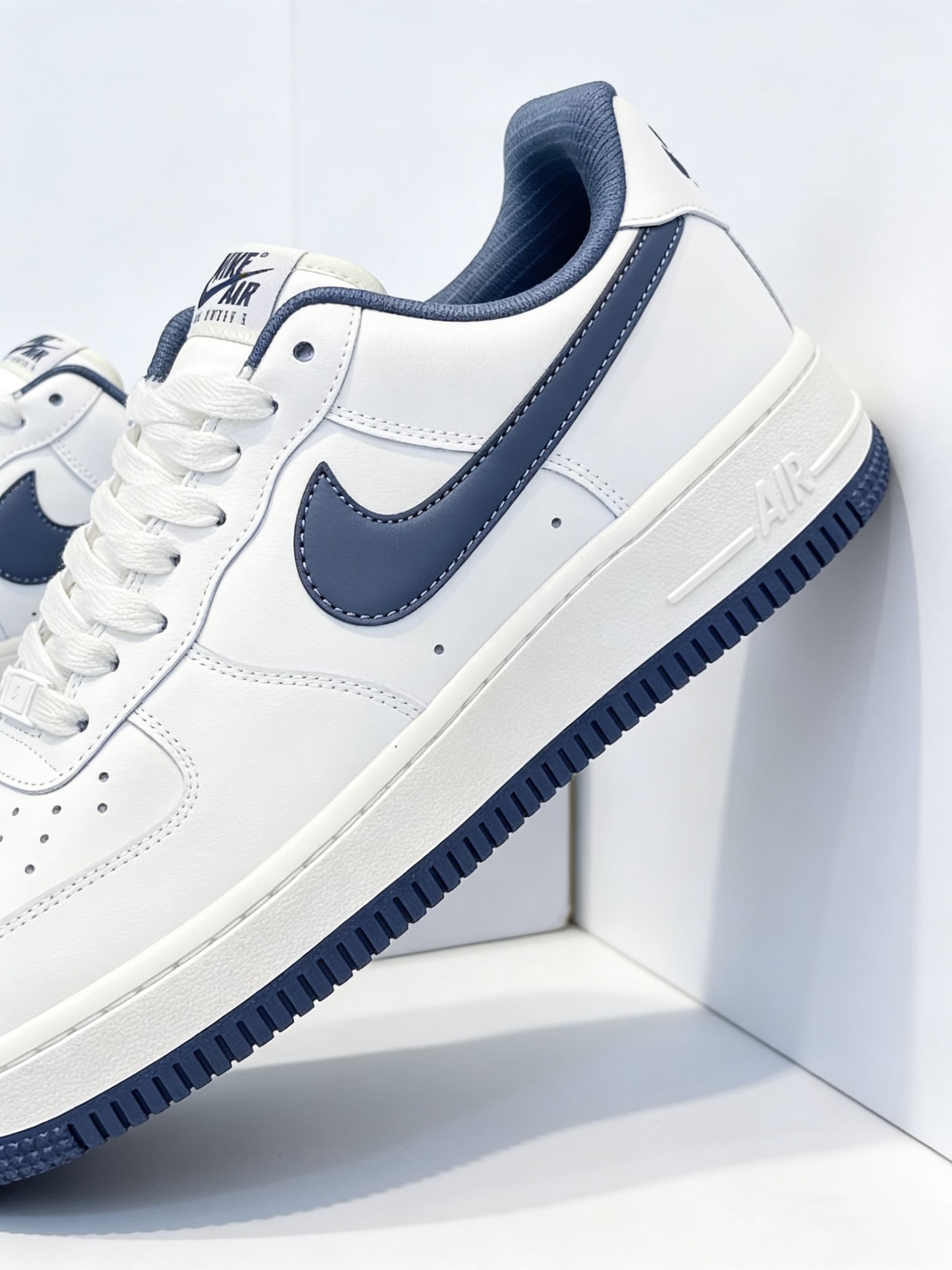 这双Nike Air Force 1 Low 'Nai Ke' 蓝白配色,第一眼就让人想起夏日冰蓝汽水,干净得像刚洗过的天空。大面积白色皮革打底,深蓝色 Swoosh 和内衬做点缀,简约却不单调,上脚瞬间气质就“稳”了。 优点:鞋面软化处理后手感细腻,不磨脚;3 厘米中底悄悄拉长腿型,显高显瘦;日常通勤、逛街、约会都能搭,牛仔裤、卫裤、短裙全兼容,是那种“闭眼穿不踩雷”的百搭款。 缺点:脚感偏...