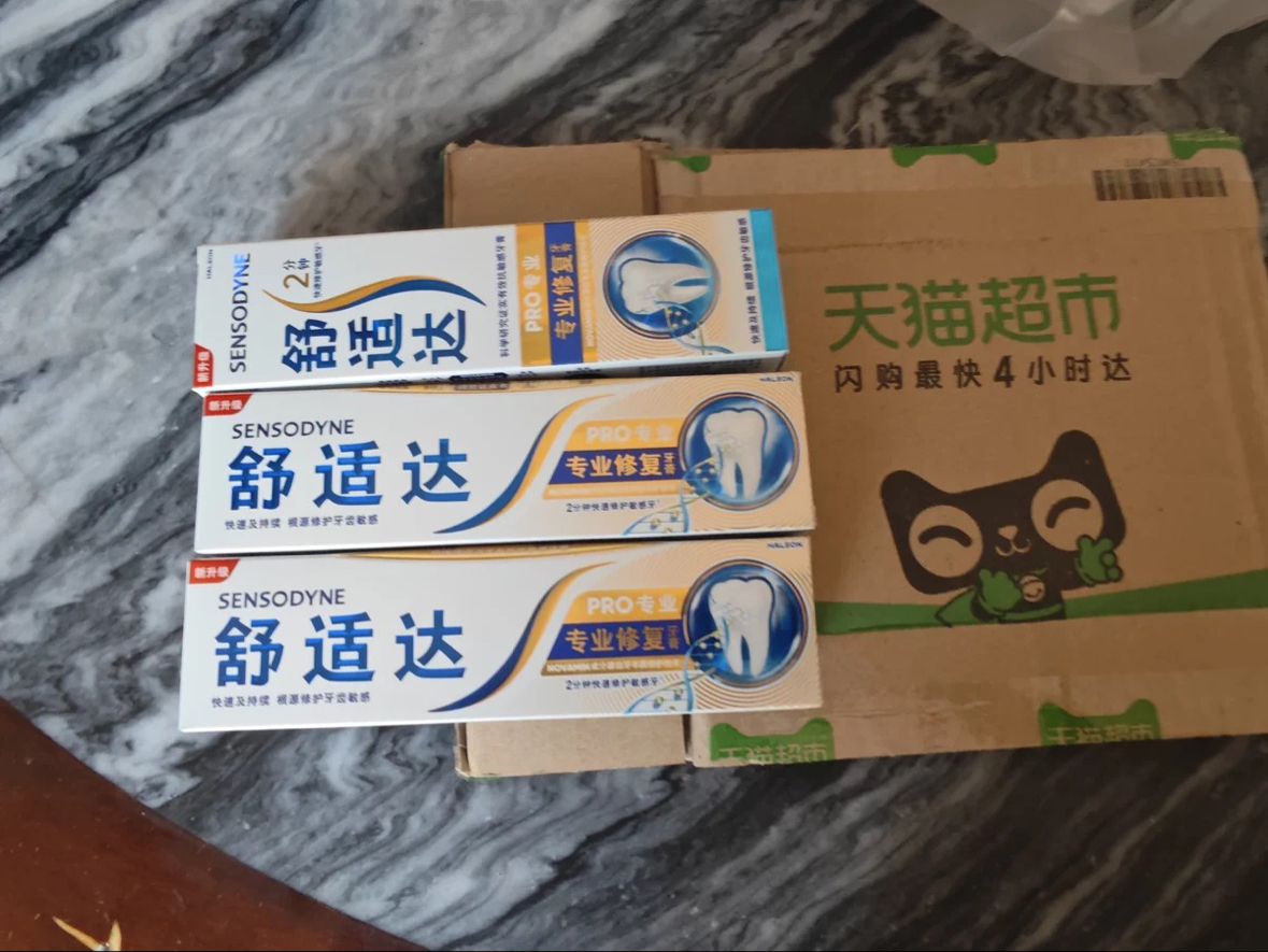 因为牙齿敏感,一直在用舒适达的牙膏。虽然不能根治,但是有明显的缓解。最近买牙膏的时候看到评论,说圆尾管的版本,是修复Pro版。仔细看了一下包装和产品名,看来确实版本是有区别的。这次特意又买了几支圆尾的Pro版,用一段时间再感受下差别。