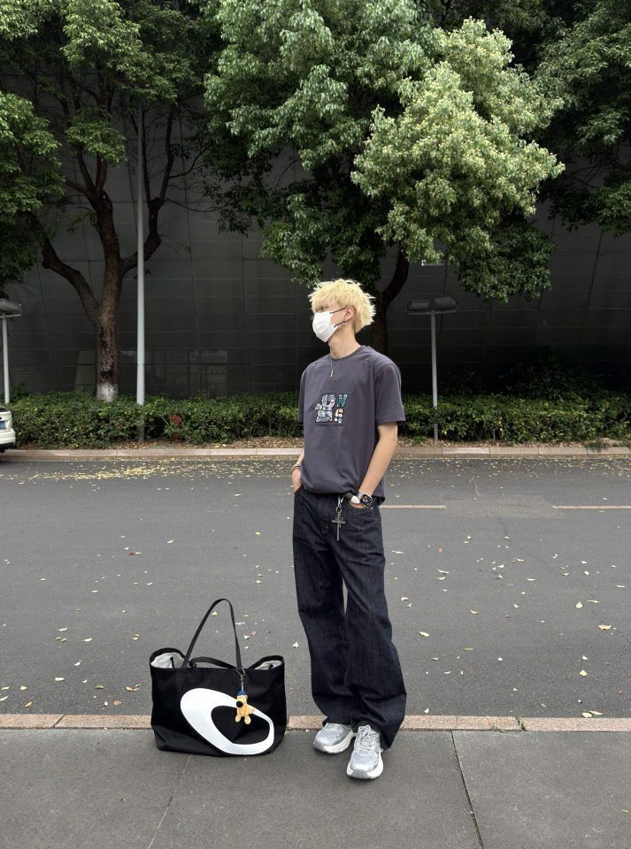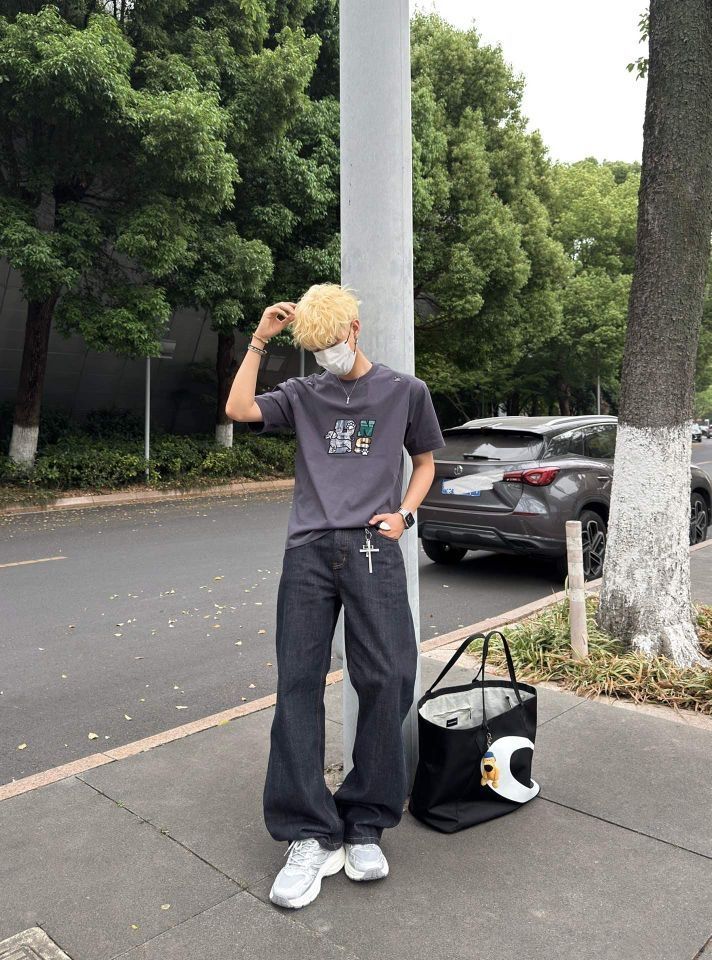 谁说基础款不能穿出彩?这件做旧灰T直接封神!胸前的彩色小印花是点睛之笔,复古又俏皮,自带少年感滤镜~宽松版型不挑人,单穿或叠穿都好看,早秋街头感拉满! 深色原牛阔腿裤yyds!垂坠感绝了,上身秒变“腿精”,拖地长度慵懒随性,搭配老爹鞋增高又显瘦,走路带风的松弛感这不就来了? 配饰细节感拉满:银色十字架项链+手表叠戴,小众不撞款;黑色托特包实用又百搭,挂个卡通挂件瞬间减龄,通勤上学都能背~ 早...