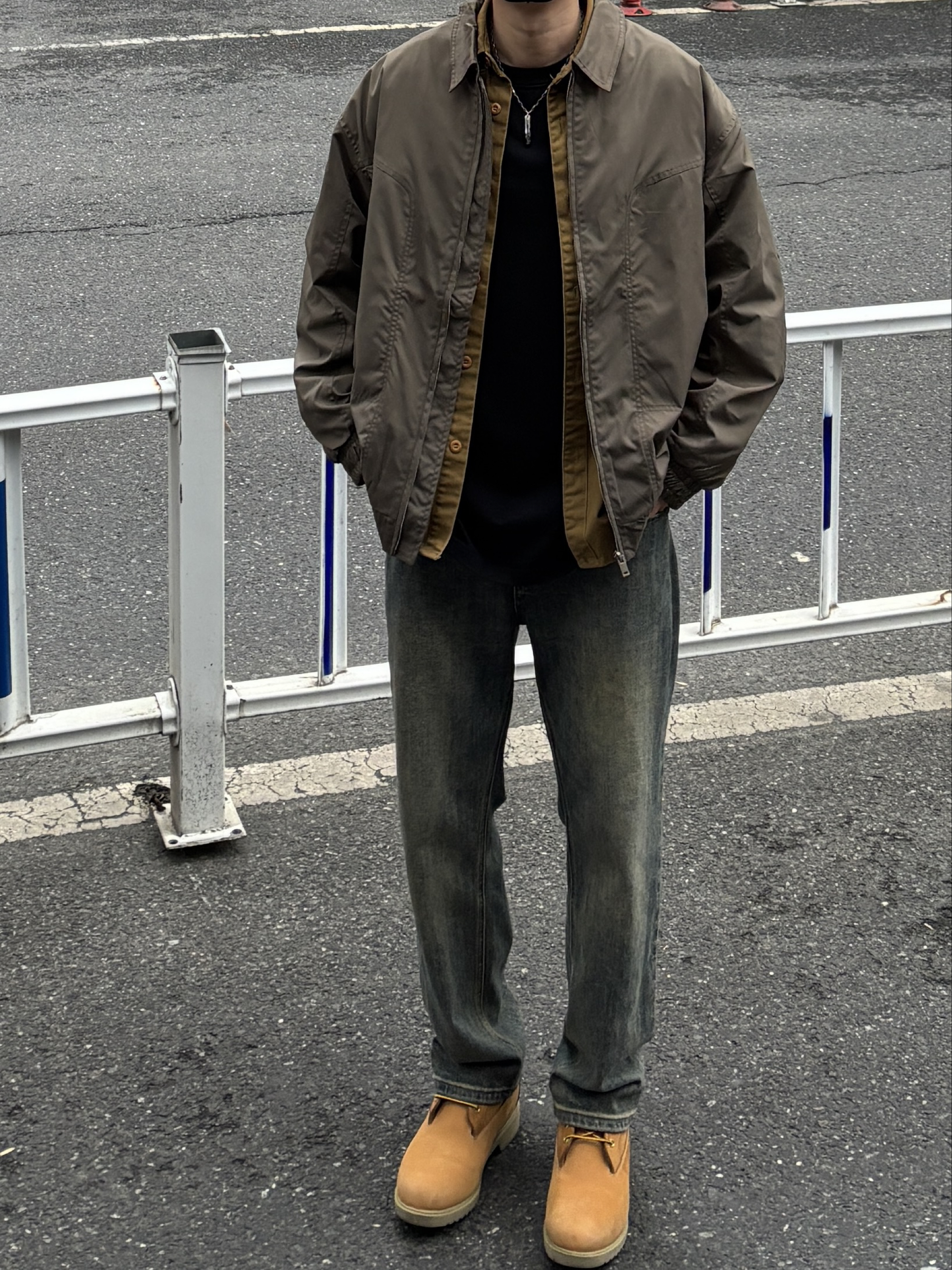 喜欢穿的宽松又要有型的看看这套🤩 外套绿色廓形底特律工装夹克 随性又有范儿😎 内搭卡其色翻领猎装衬衫 叠穿不臃肿,反而更有细节 下身蓝色直筒水洗牛仔裤 修饰腿型效果很好 脚踩一双沙漠黄复古中帮工装靴 提升整体造型感👍 整套风格松弛有度,不刻意扮酷 日常穿舒服又帅气~ - 今日搭配 衣服裤子:NICE LILI 鞋子:timberland